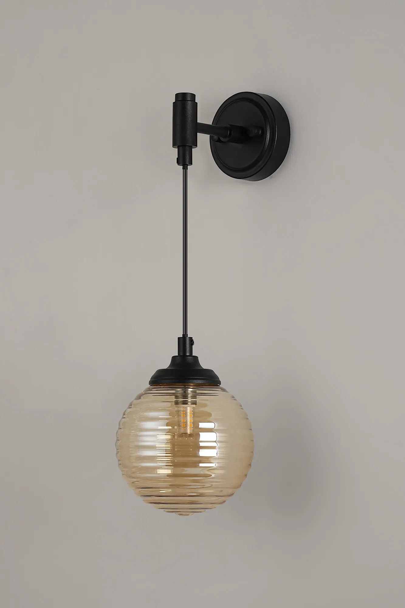 OTHER Orillia Adjustable Wall Light 1 Light IP44 Satin Black/Amber Ribbed Round Glass