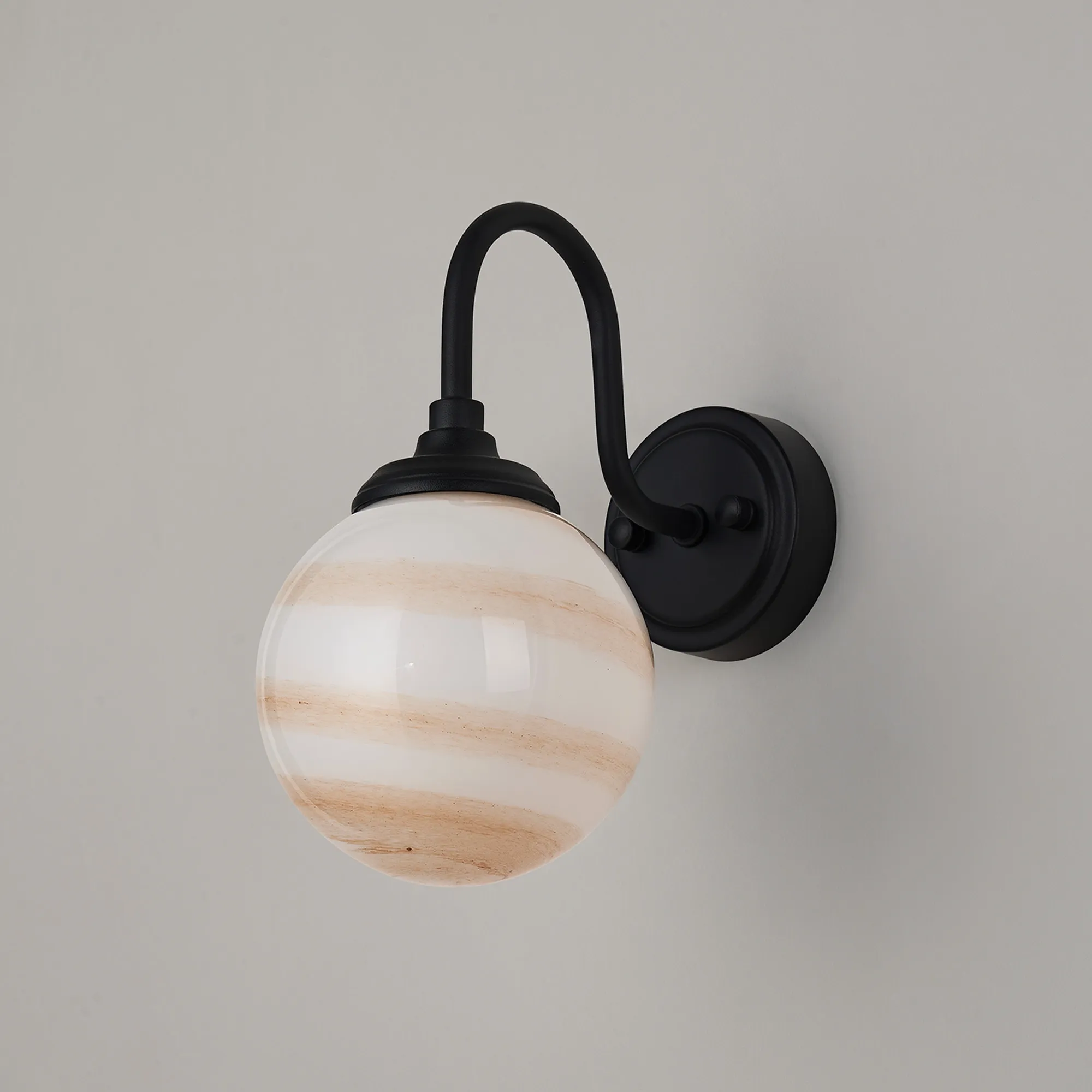 Nova 12cm Round Marble Effect Glass Shade (C), White / Brown