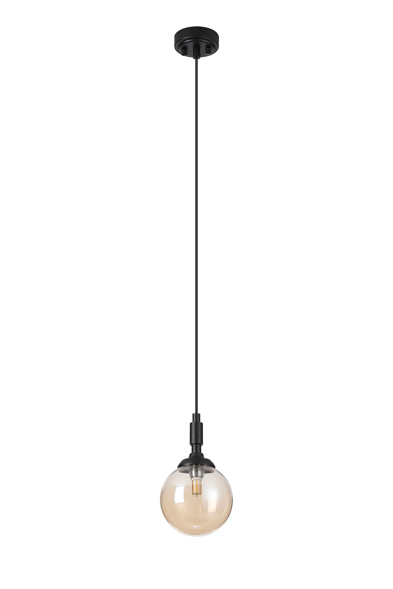 OTHER Orillia Pendant 1 Light IP44 Satin Black/Amber Smooth Round Glass