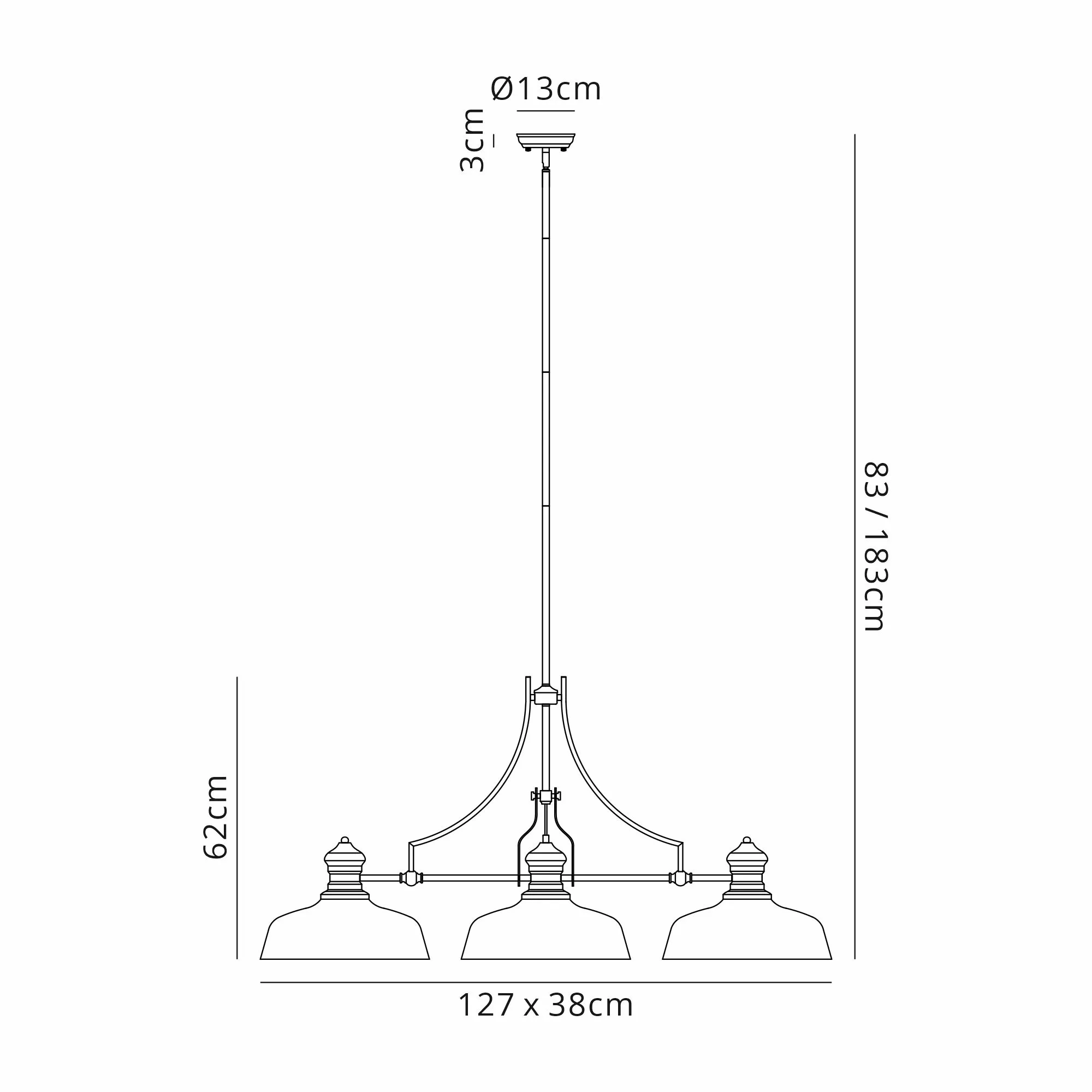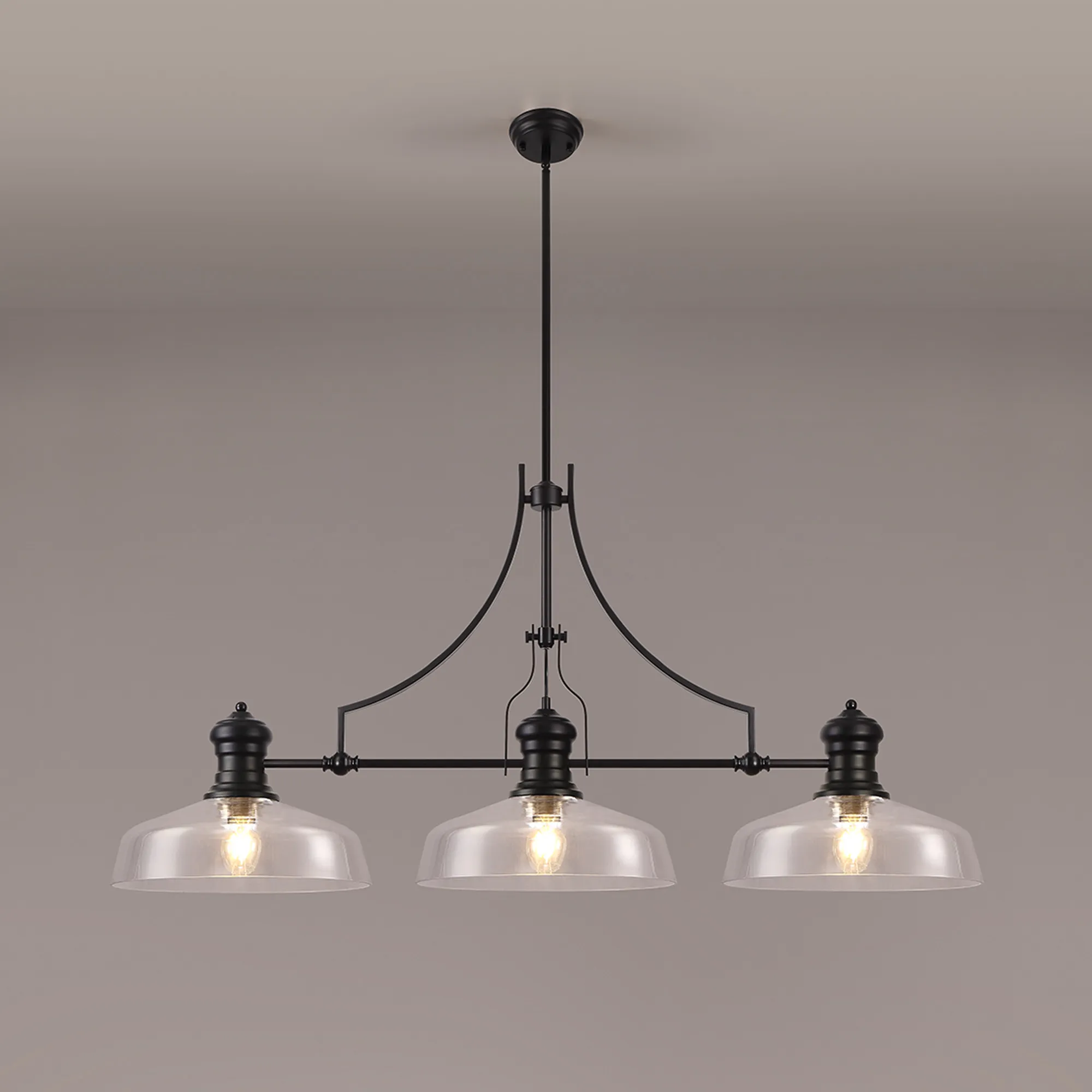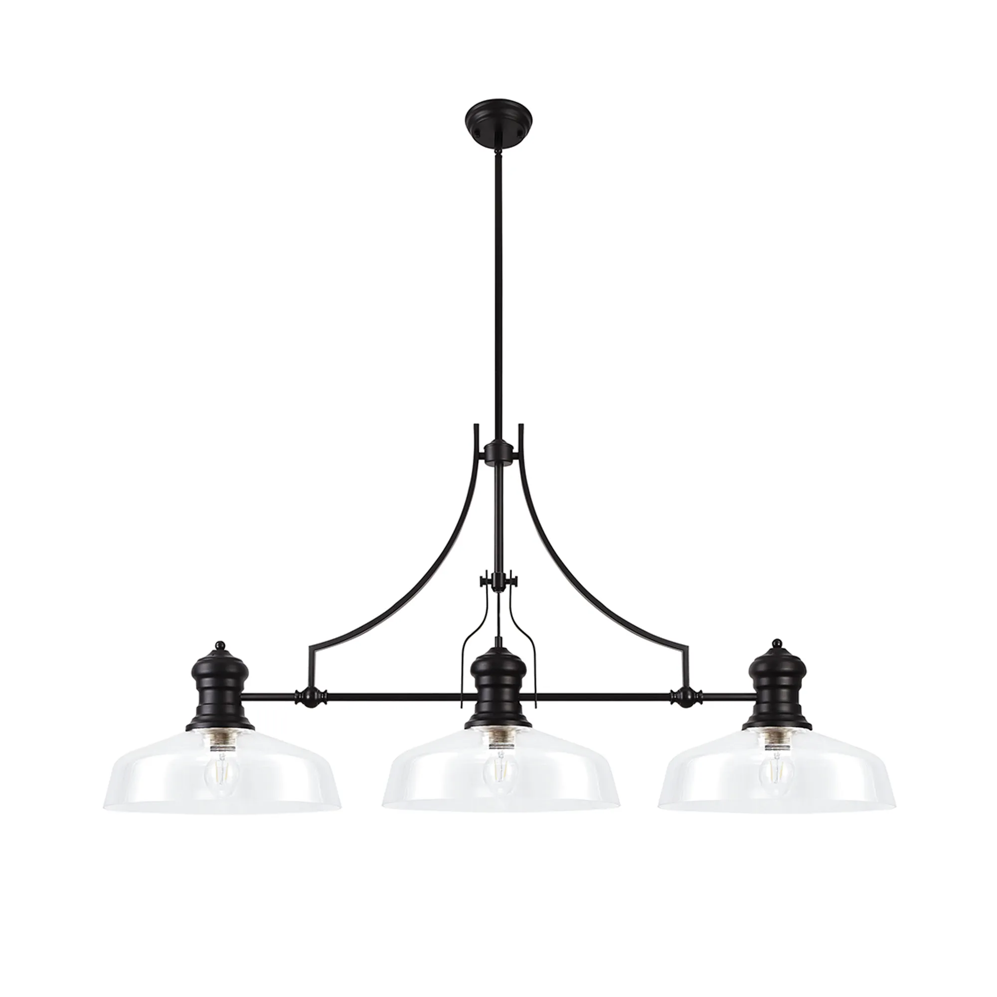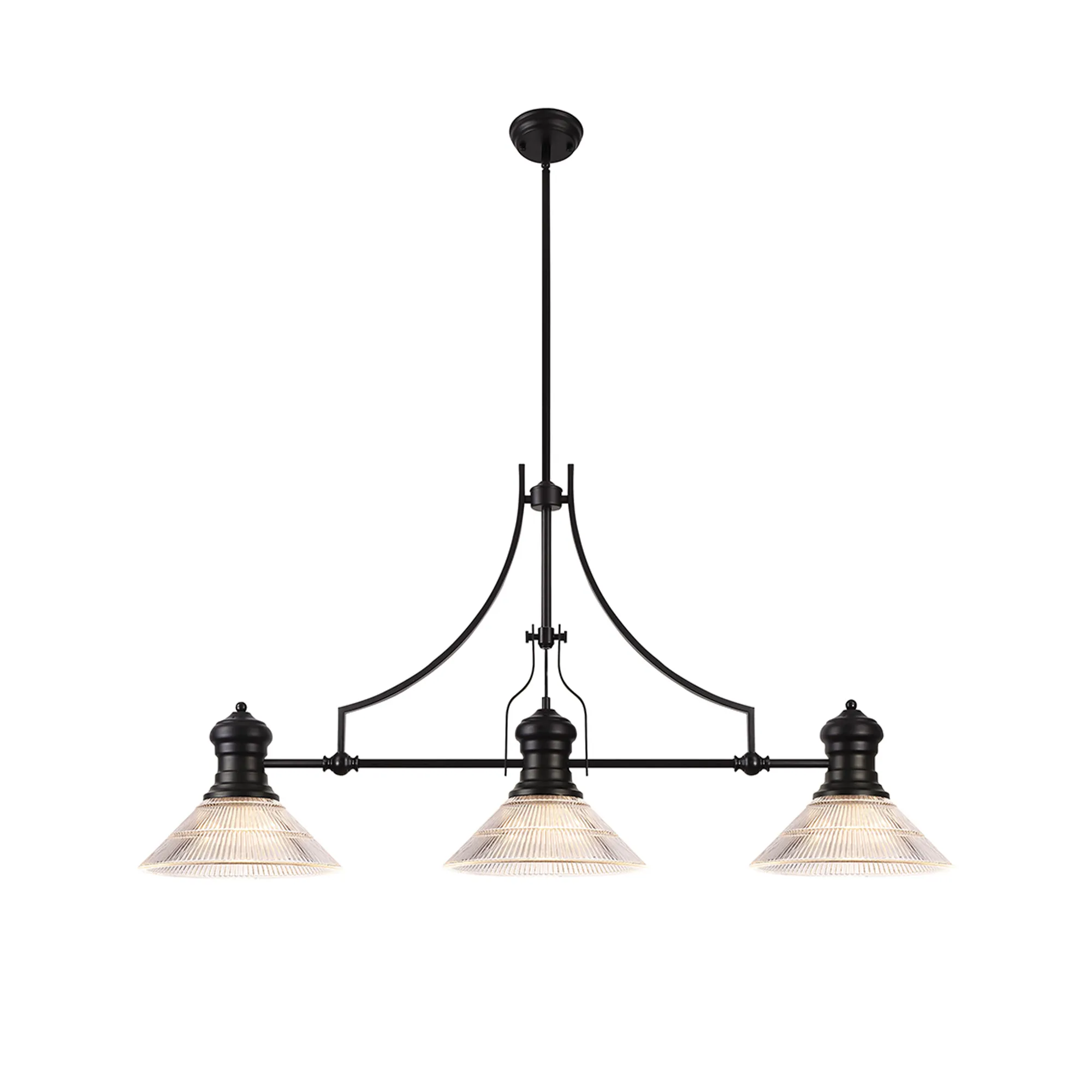 Snowdon Linear Multi Height Pendant With 30cm Flat Round Patterned Shade, 3 x E27, Matt Black/Clear Glass