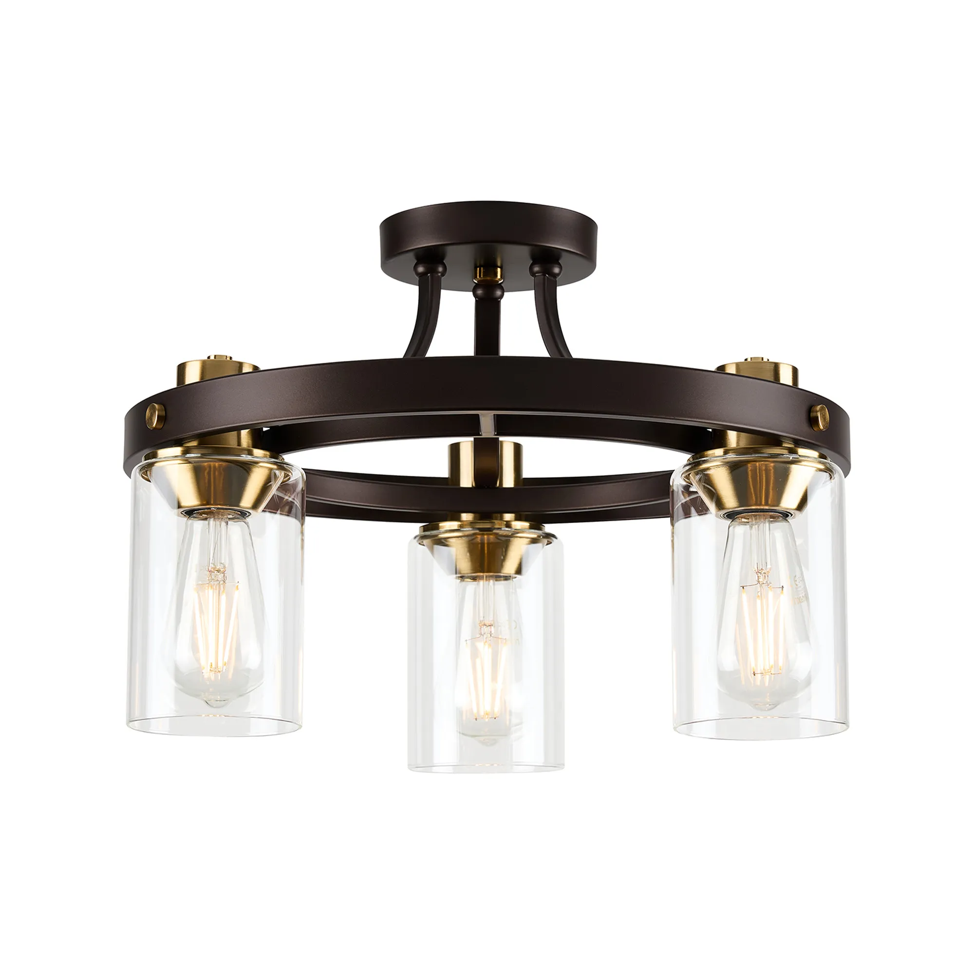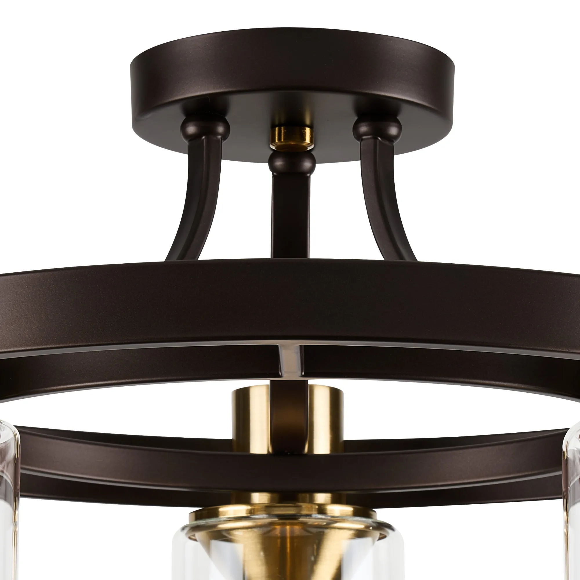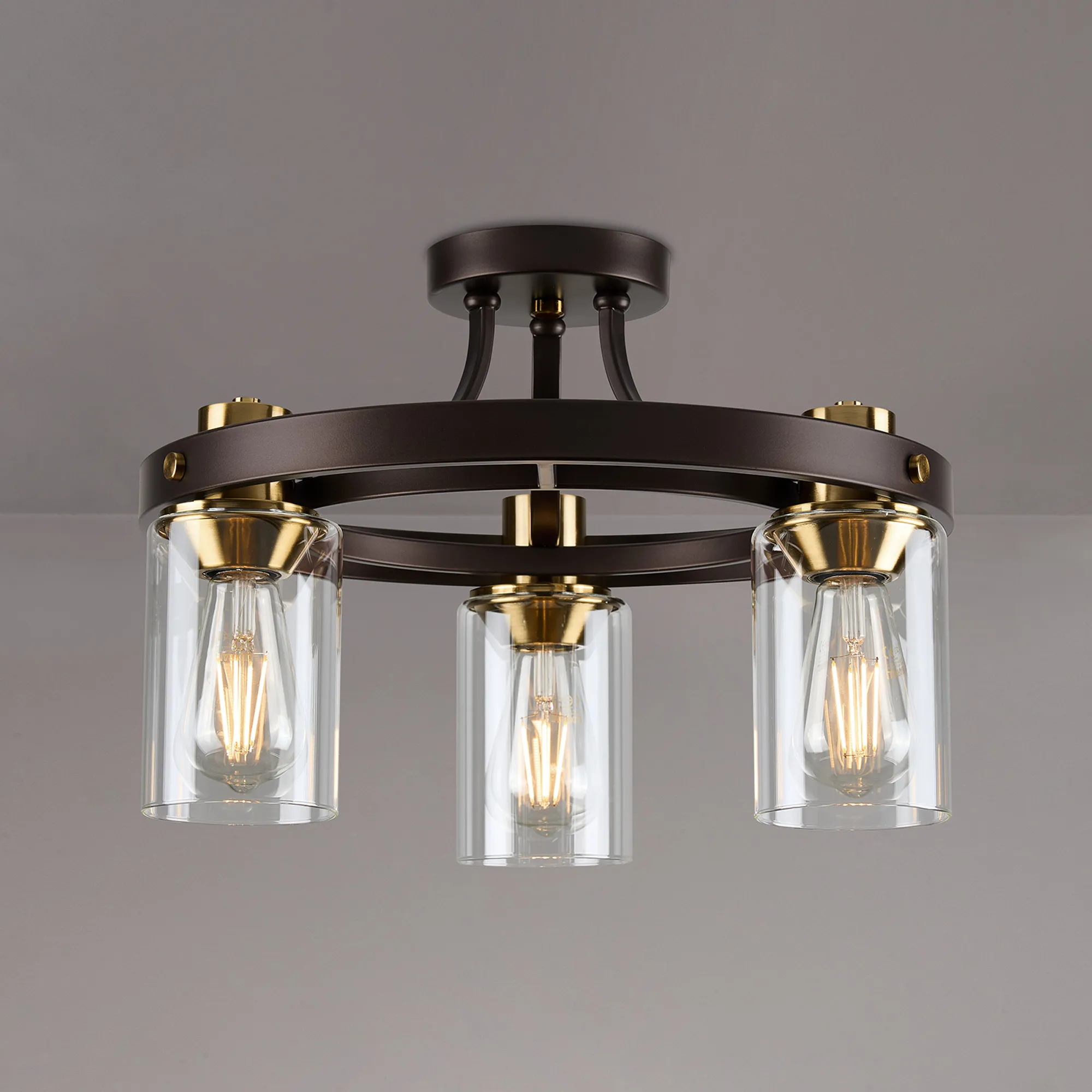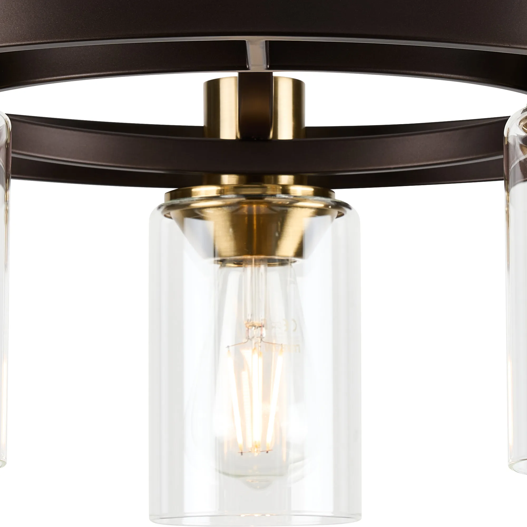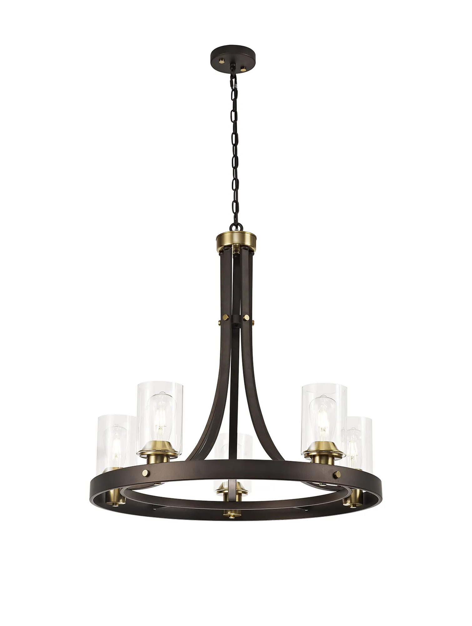 Somers Round Semi Flush Ceiling 5 x E27, Brown Oxide/Gold Bronze With Clear Glass Shades