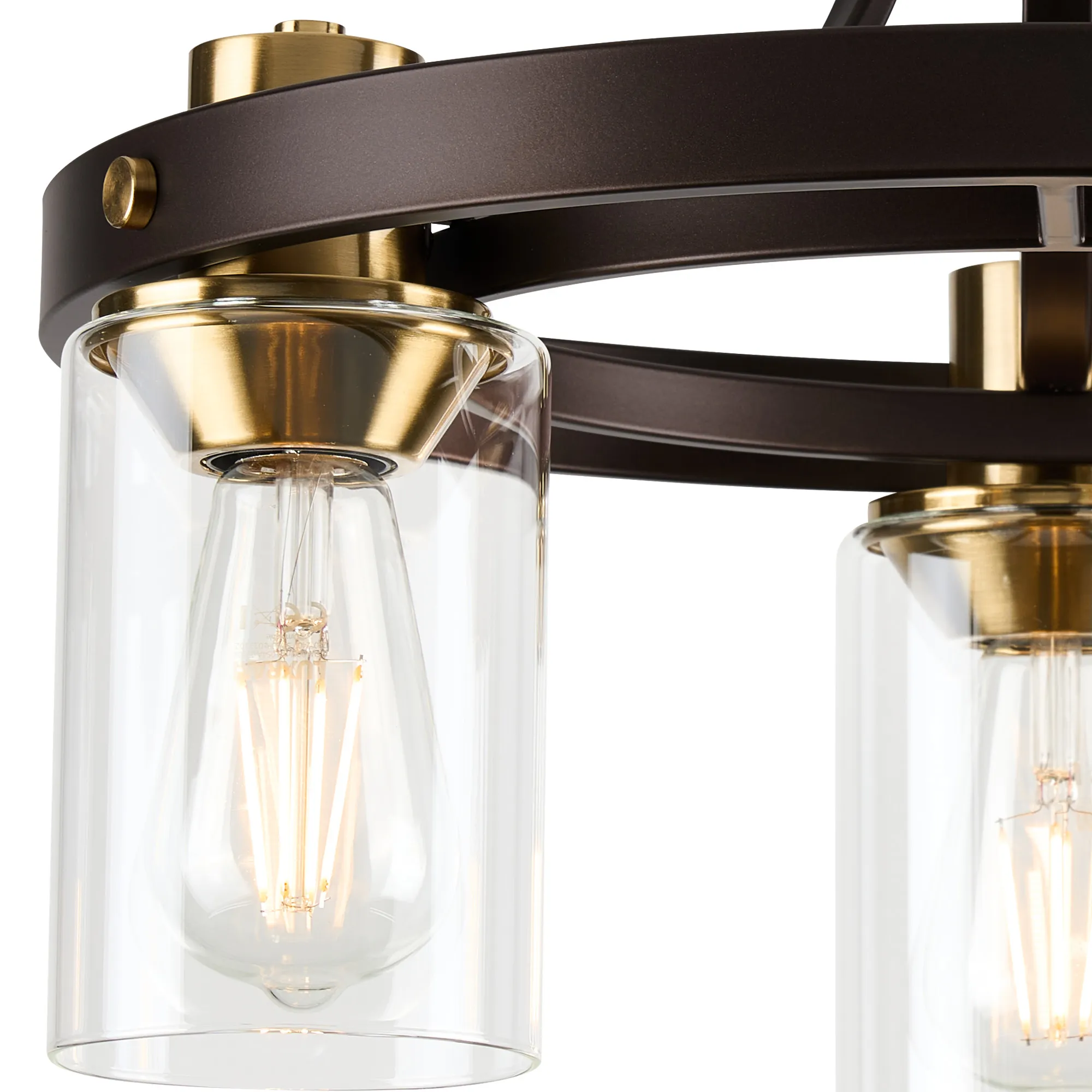 Somers 55cm Round Semi Flush Ceiling 5 Light E27, Brown Oxide/Gold Bronze With Clear Glass Shades