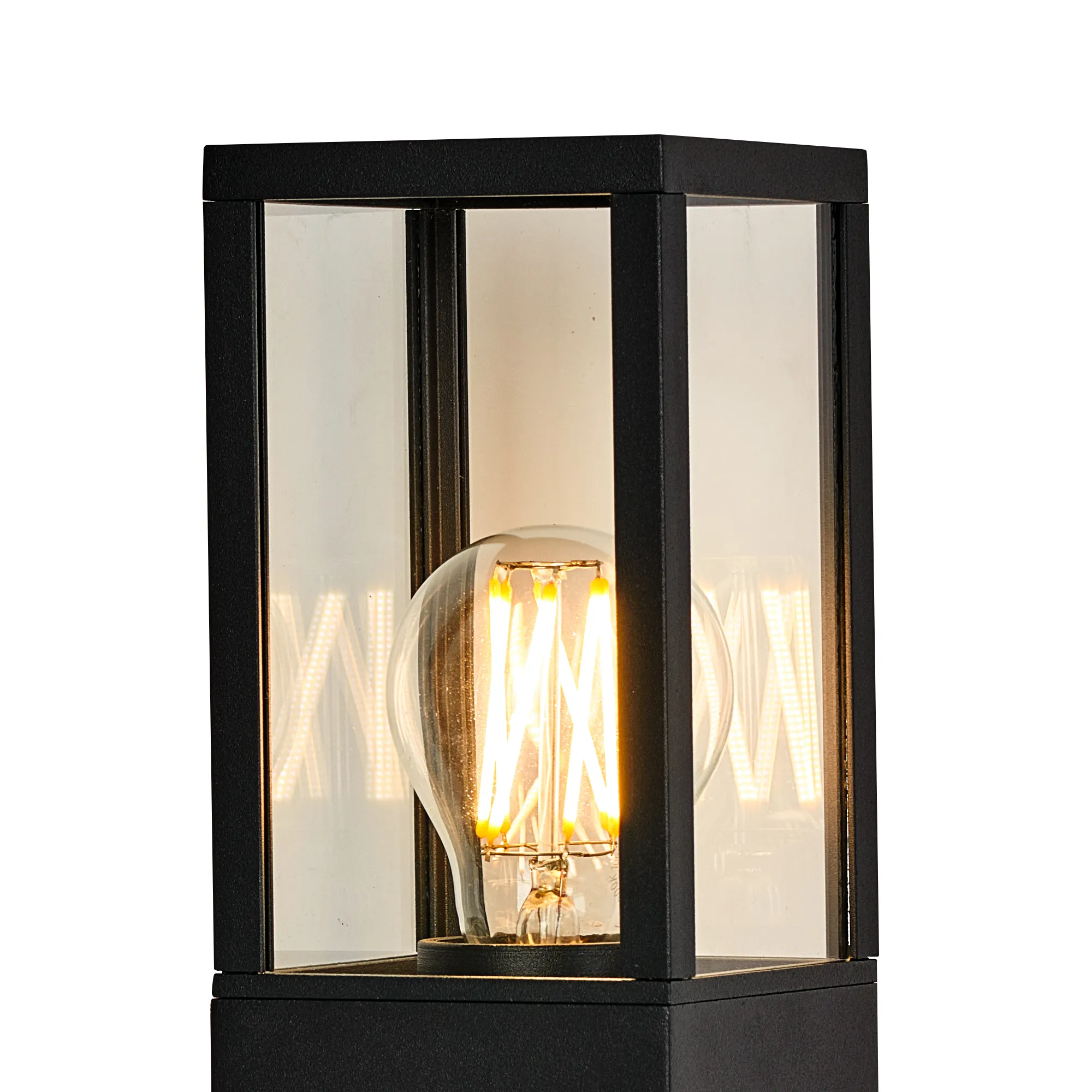 Fairlie provides a classic collection of outdoor lighting solutions. The three dimensional rectangular frames with glass panels on each side reflect an old-fashioned oil lantern which is most prominently featured on the downward wall lamp with its curved hanging arm. A graphite black colour finish was selected during the design process to ensure the collection offers extended durability and longevity against outdoor elements and harsh weather. With a wide selection of lighting fixtures, the Fairlie range is sure to include an option to suit your needs.