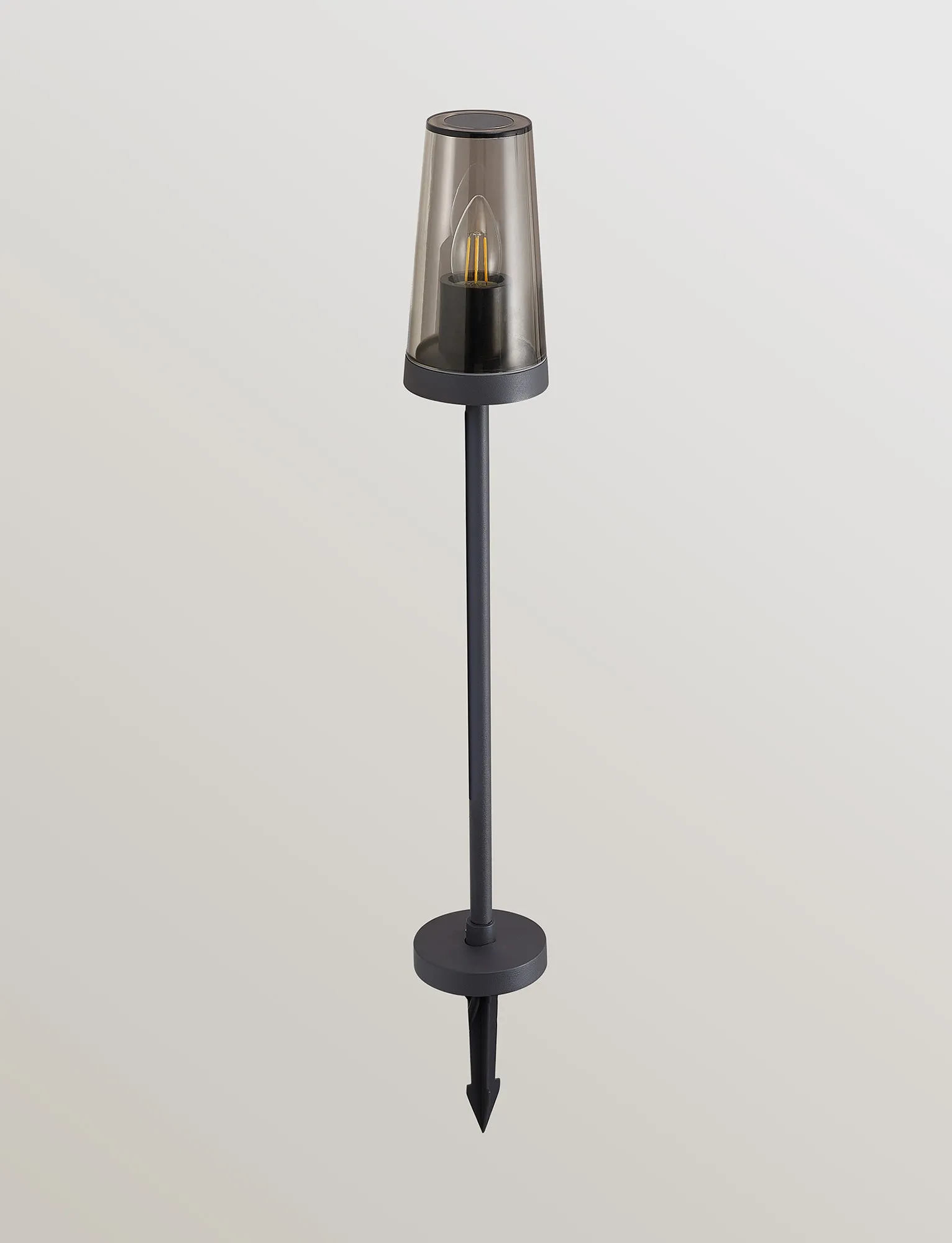 An IP54 rated collection, Quinty offers both a wall lamp and post lamp suitable for outdoor settings. The smoked, conical shade is an unusual choice for outdoor lighting making it a more unique and modern design concept. An anthracite colour finish applied to the framework perfectly complements the smoke tone of the shades protecting the E27 lamp holder.