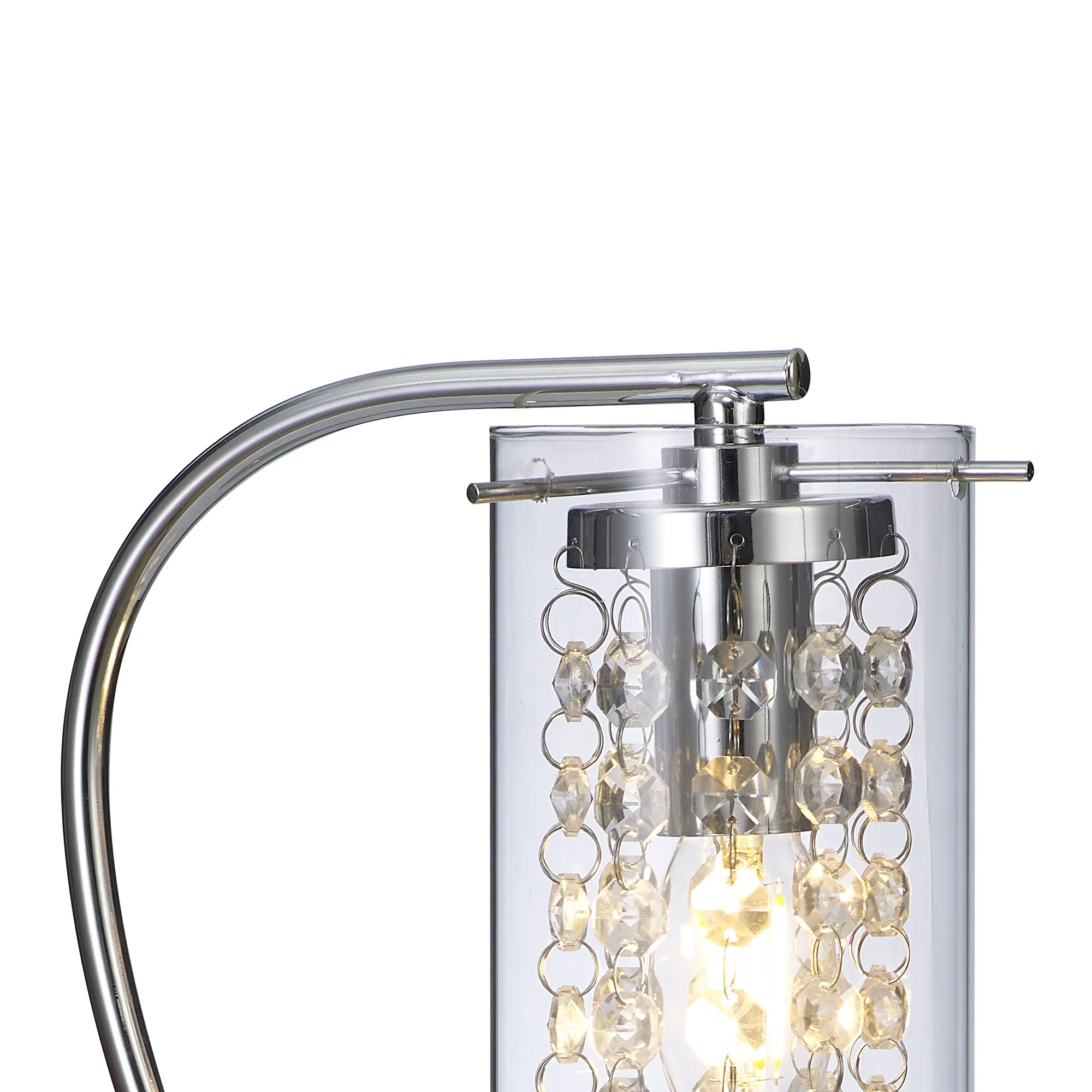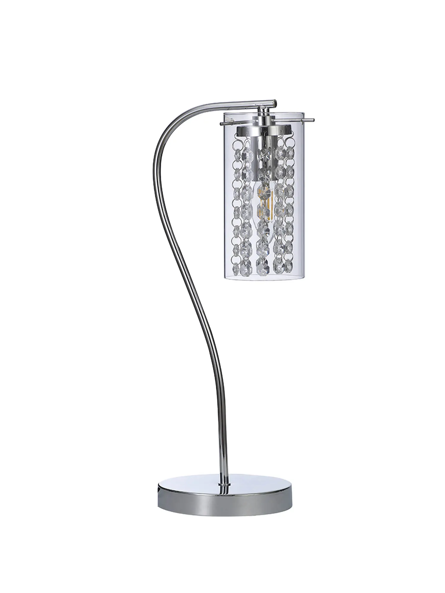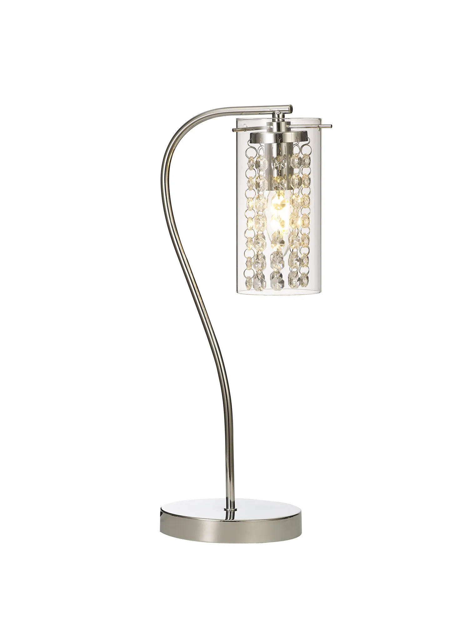 Available in either a 3, 5 or 8 light, the Twizel semi ceiling lights use stylish slim waved arms in polished chrome to hold the E14 lamp holders. Each lamp holder is encircled by a transparent cylindrical glass allowing a clear view of the crystal button strands that hang from the metal lamp holder cup within the glass. The crystal components add an attractive quality to a seemingly simple design which looks even more striking when the fitting is illuminated delivering an exquisite sparkle. Twizel also includes a complementing switched wall and table lamp.
