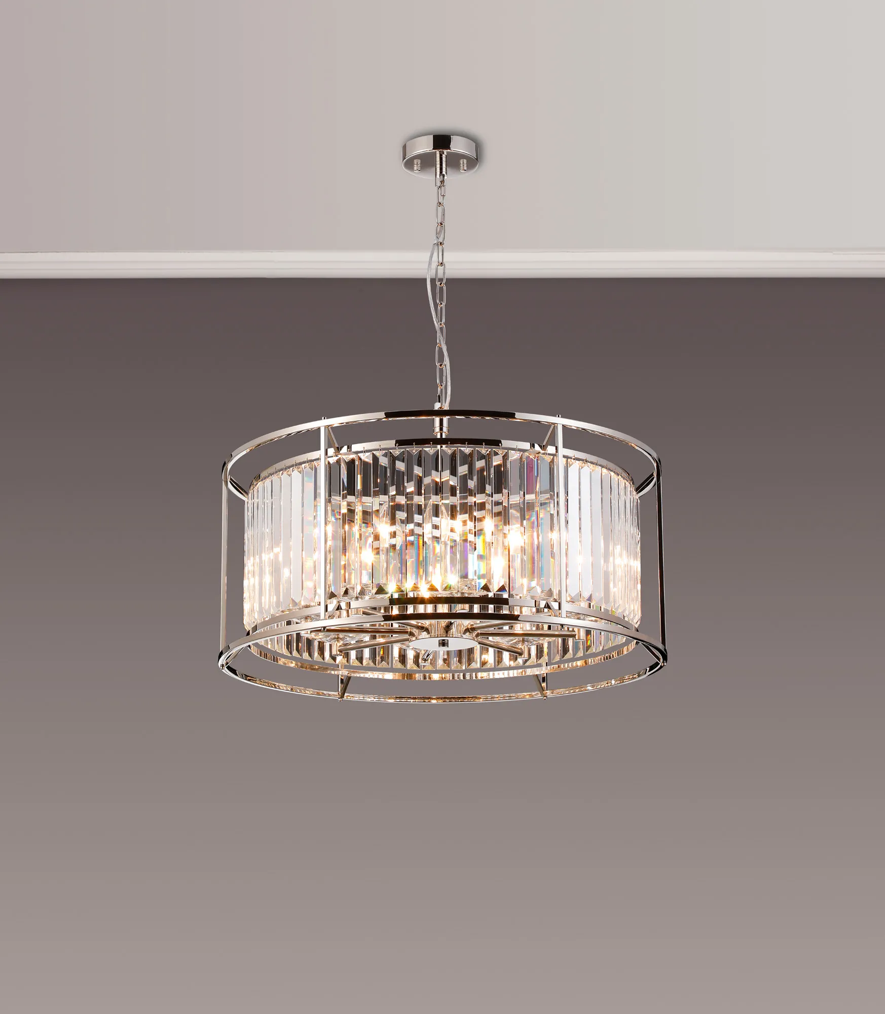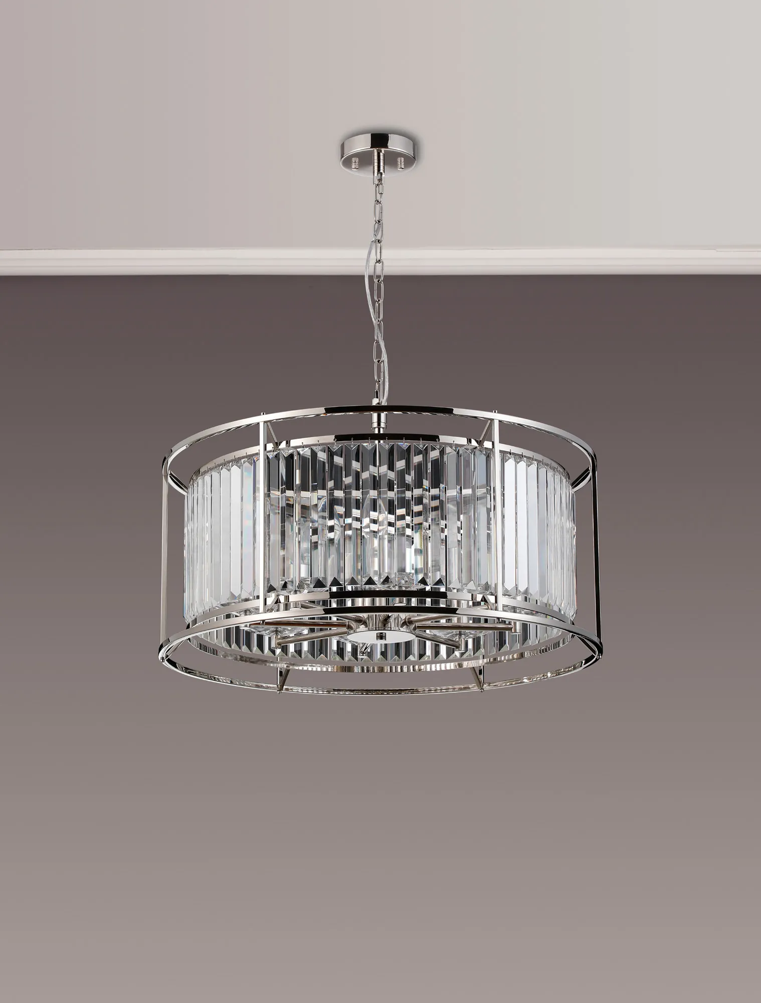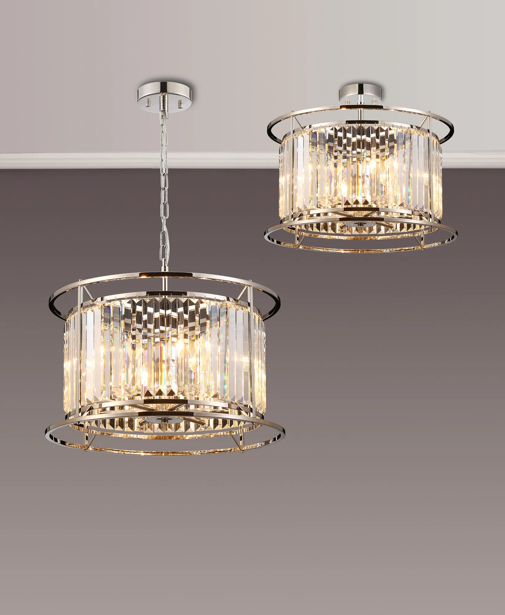 Stratford Pendant/Semi Ceiling Convertible, 3 x E14, Polished Nickel/Clear