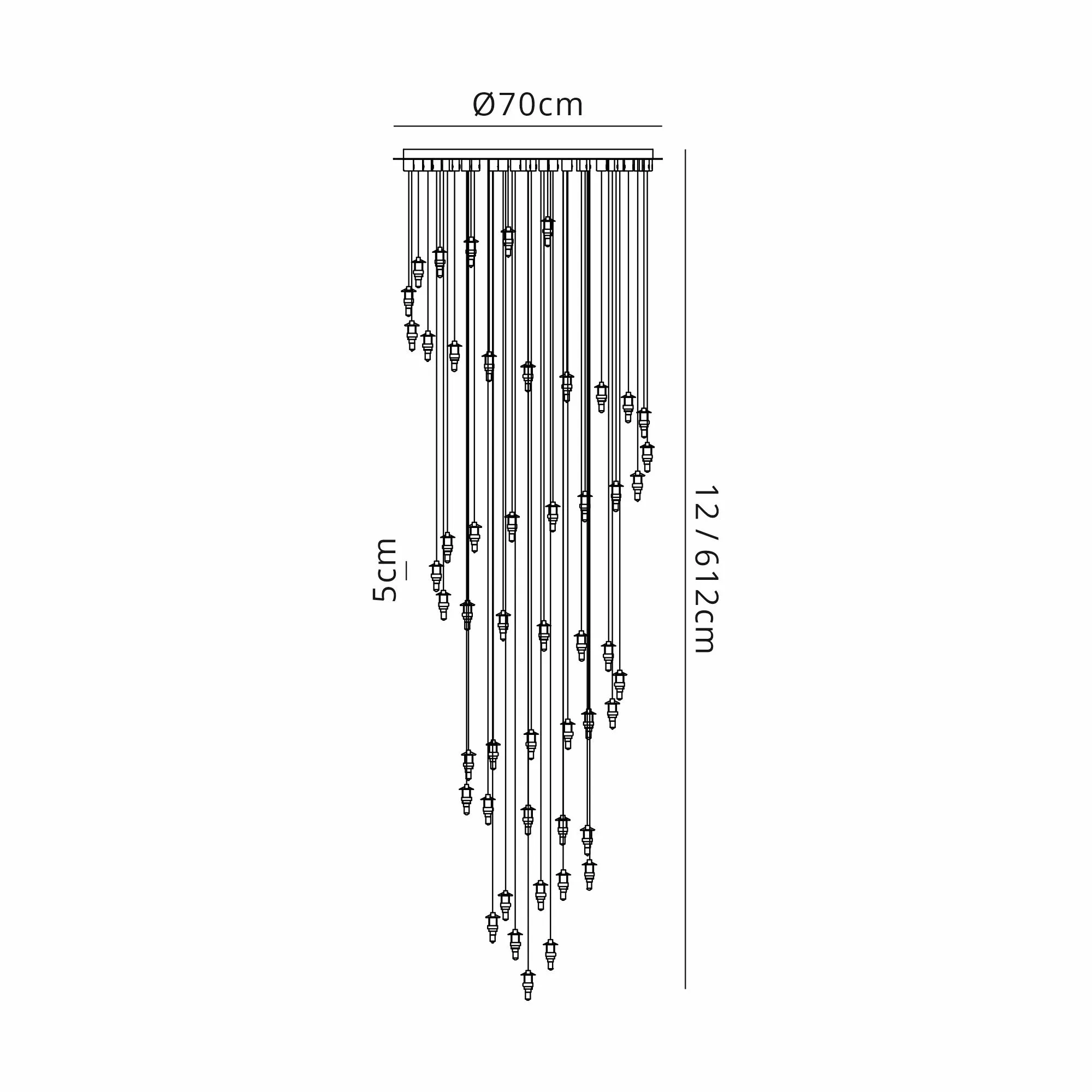 Timmins 70cm Polished Chrome 50 Light G9 10 x 3m/6m 15 x 4m/5m Round Multiple Pendant (FRAME ONLY), For A Selection Of Shades Item Weight:20kg