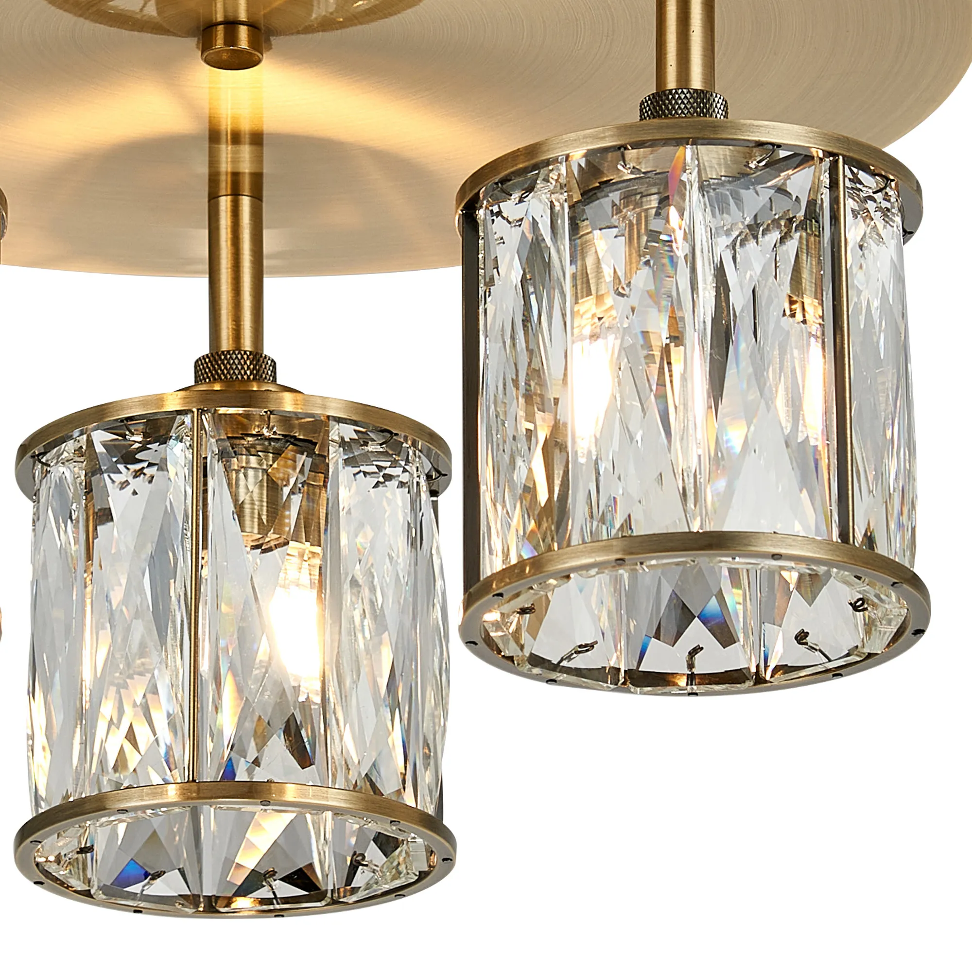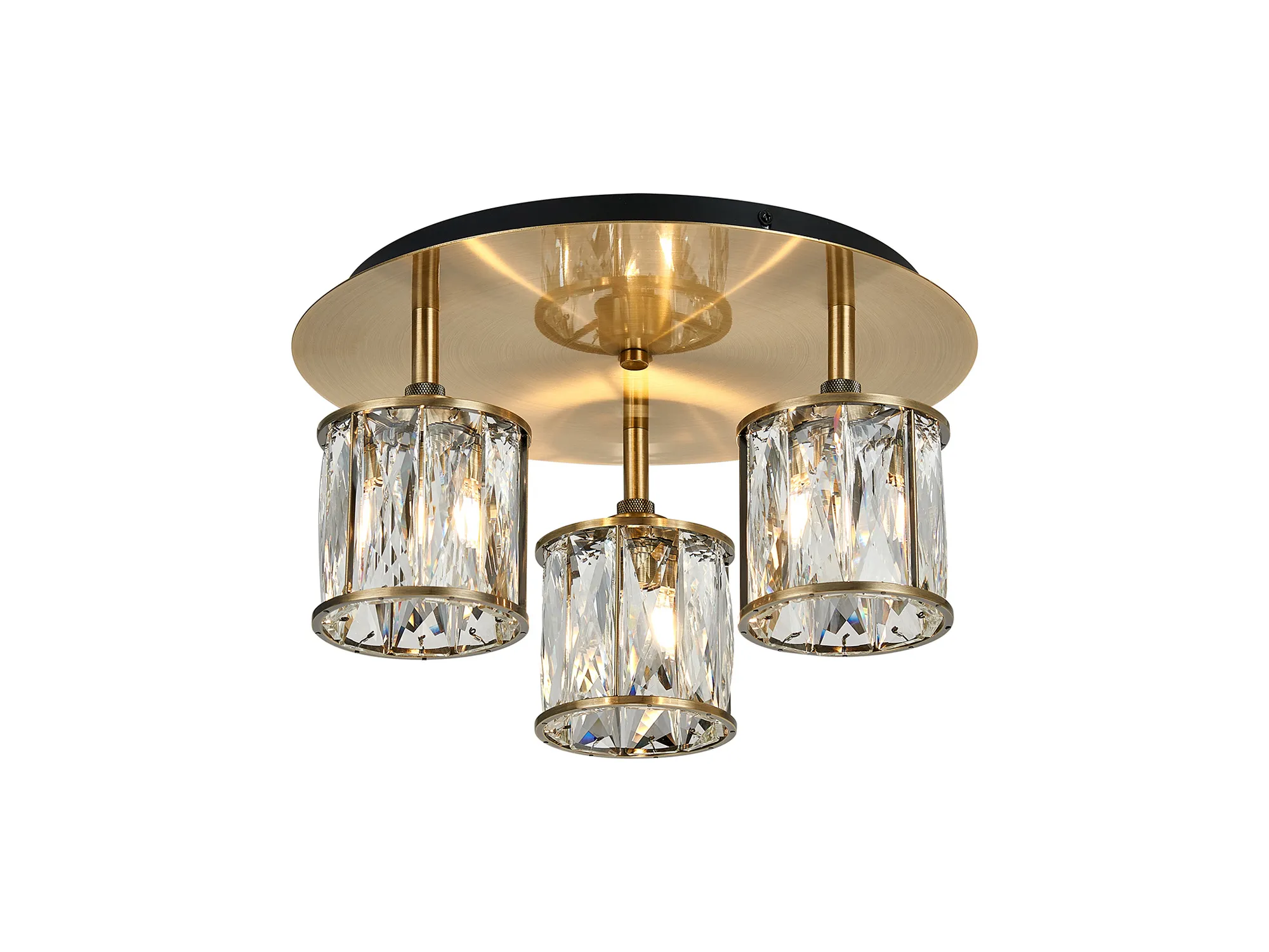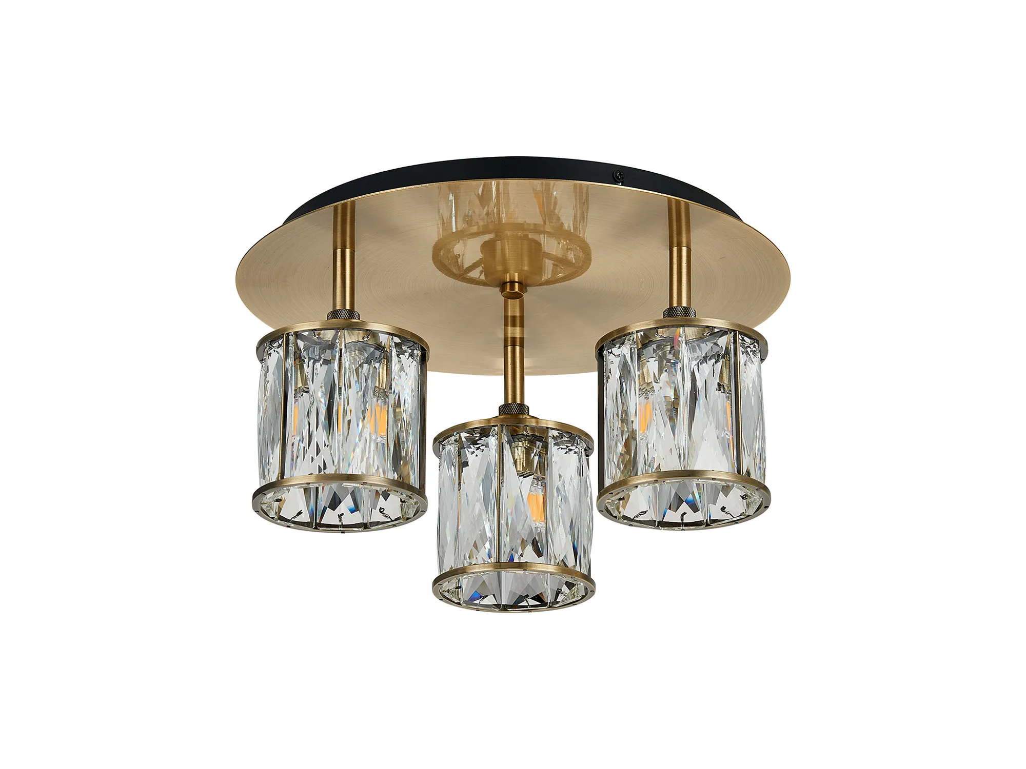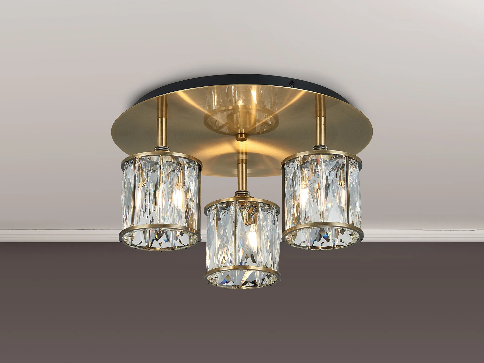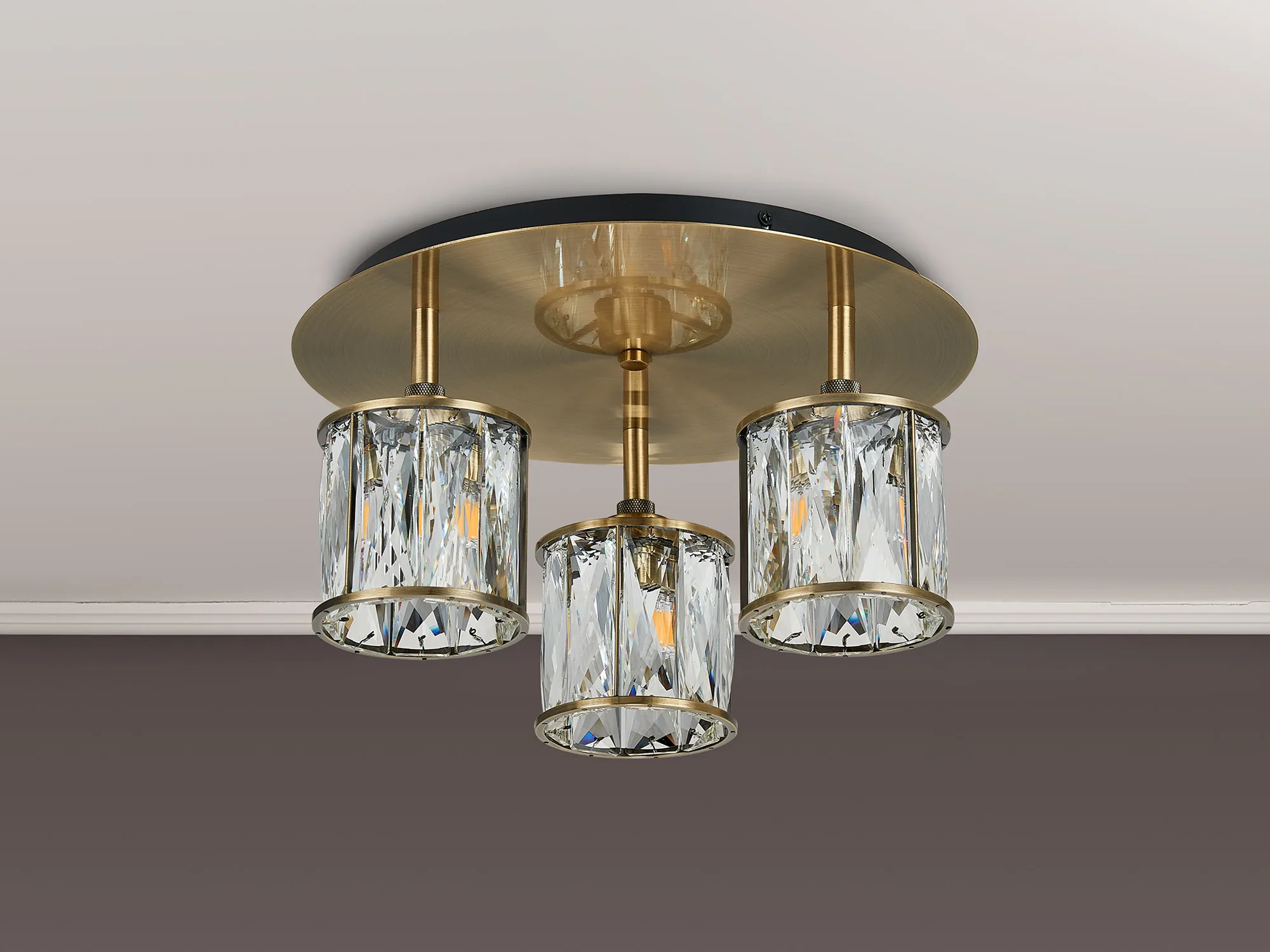 Kiwitea Antique Brass Round 3 Light G9 Universal 35cm Flush Light (FRAME ONLY), For A Vast Range Of Glass Shades