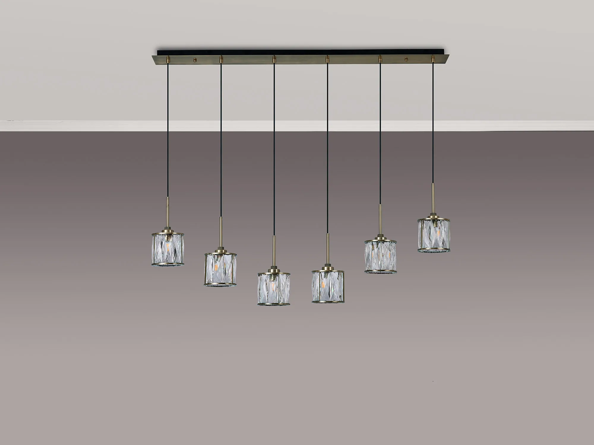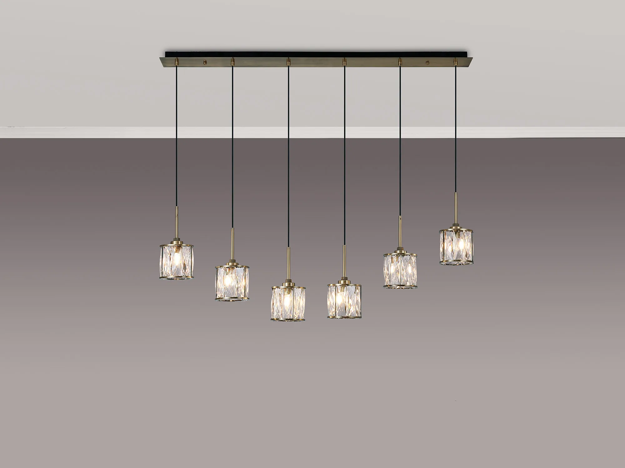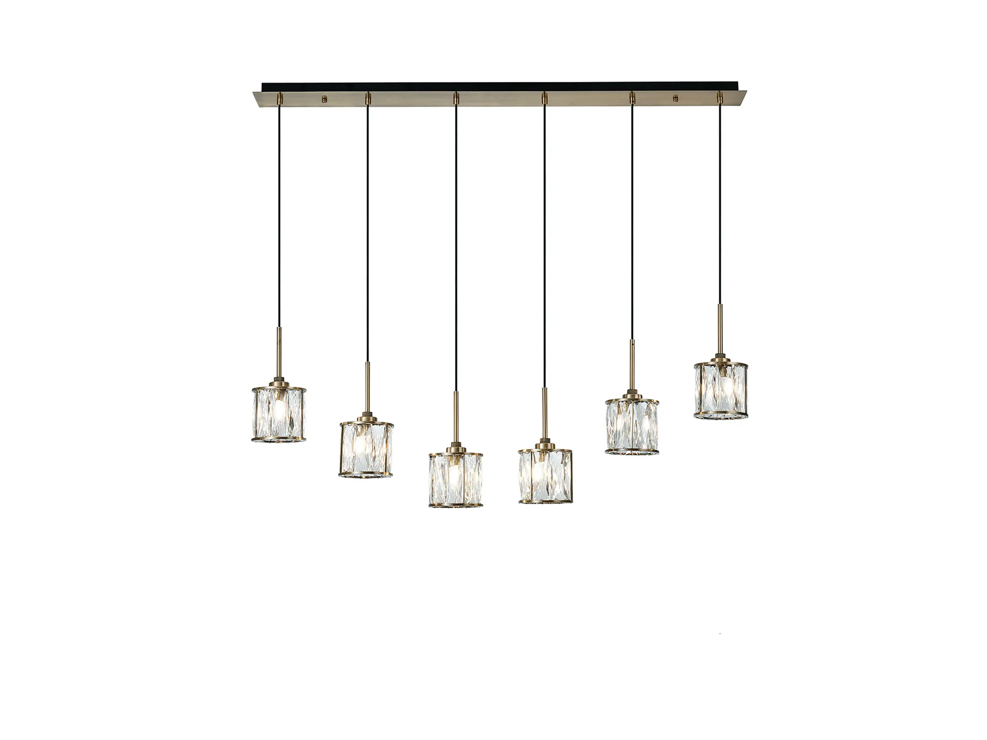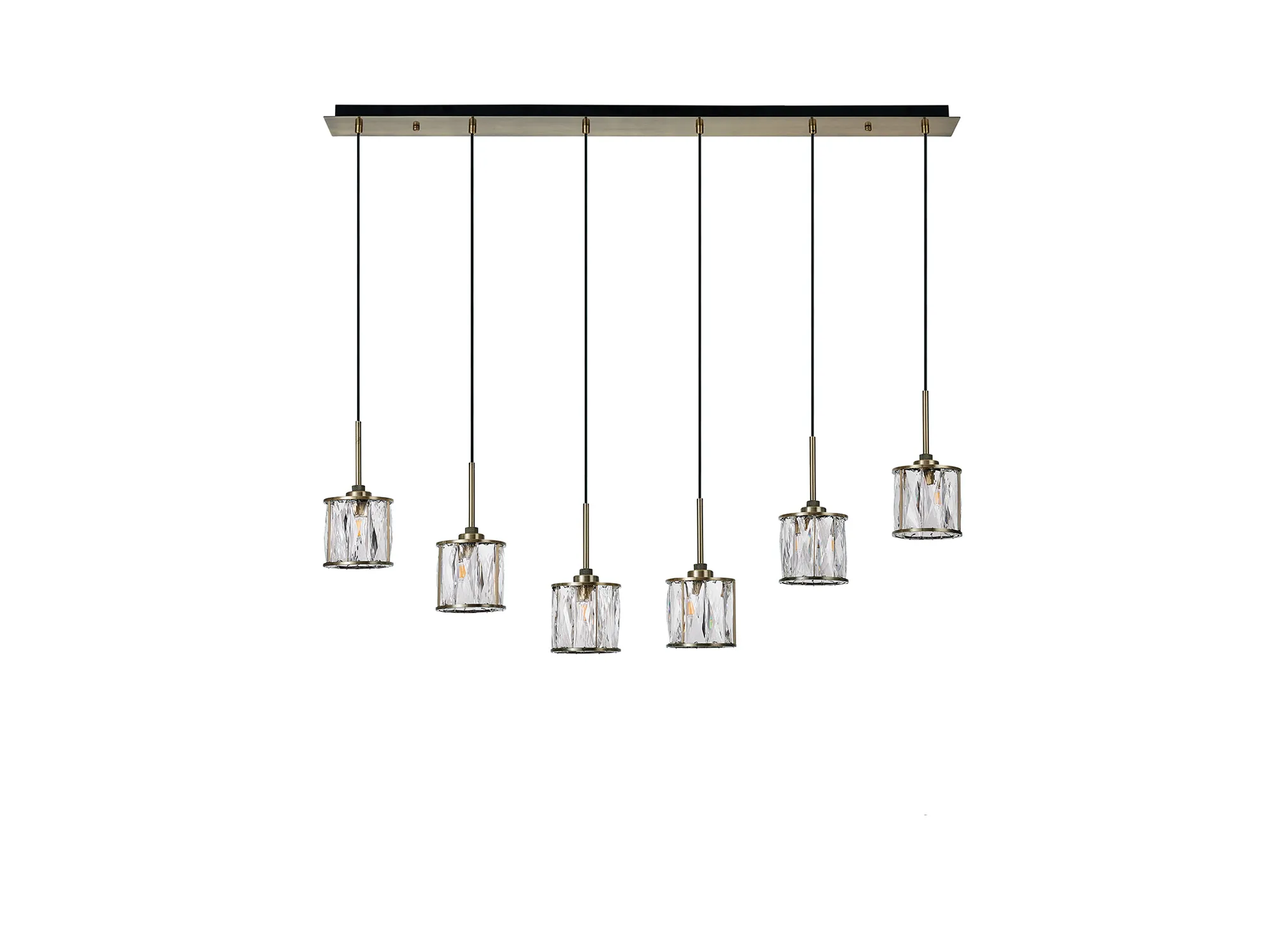Kiwitea Antique Brass 6 Light G9 Universal 2m Drop Linear Pendant (FRAME ONLY), For A Vast Range Of Glass Shades