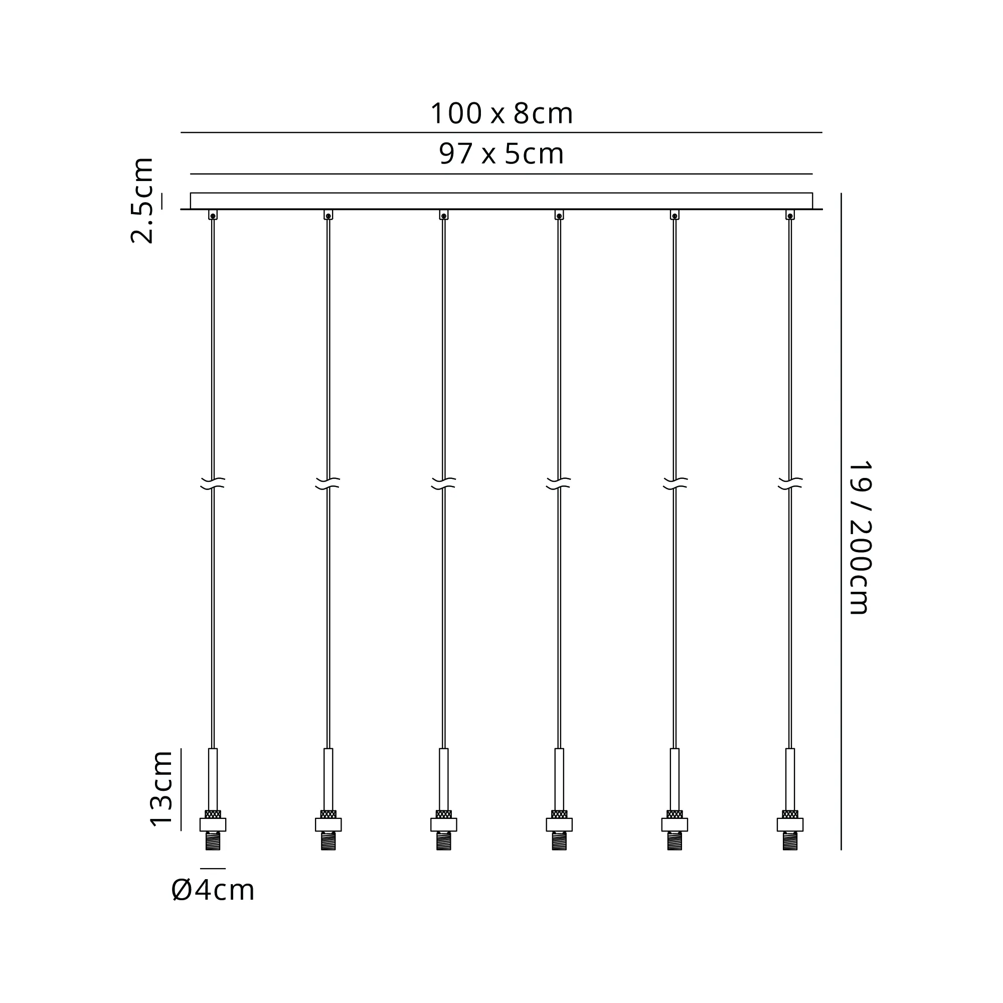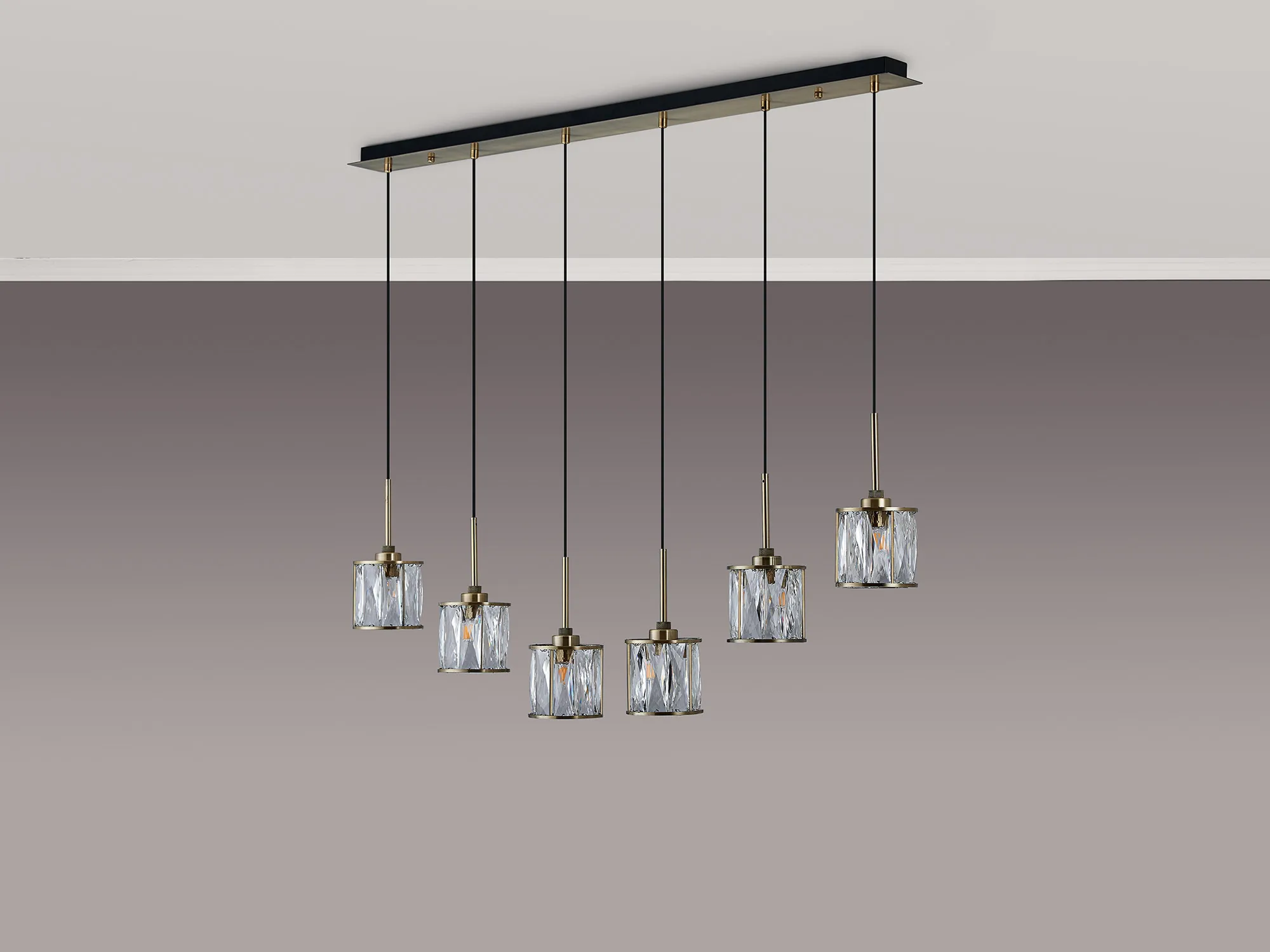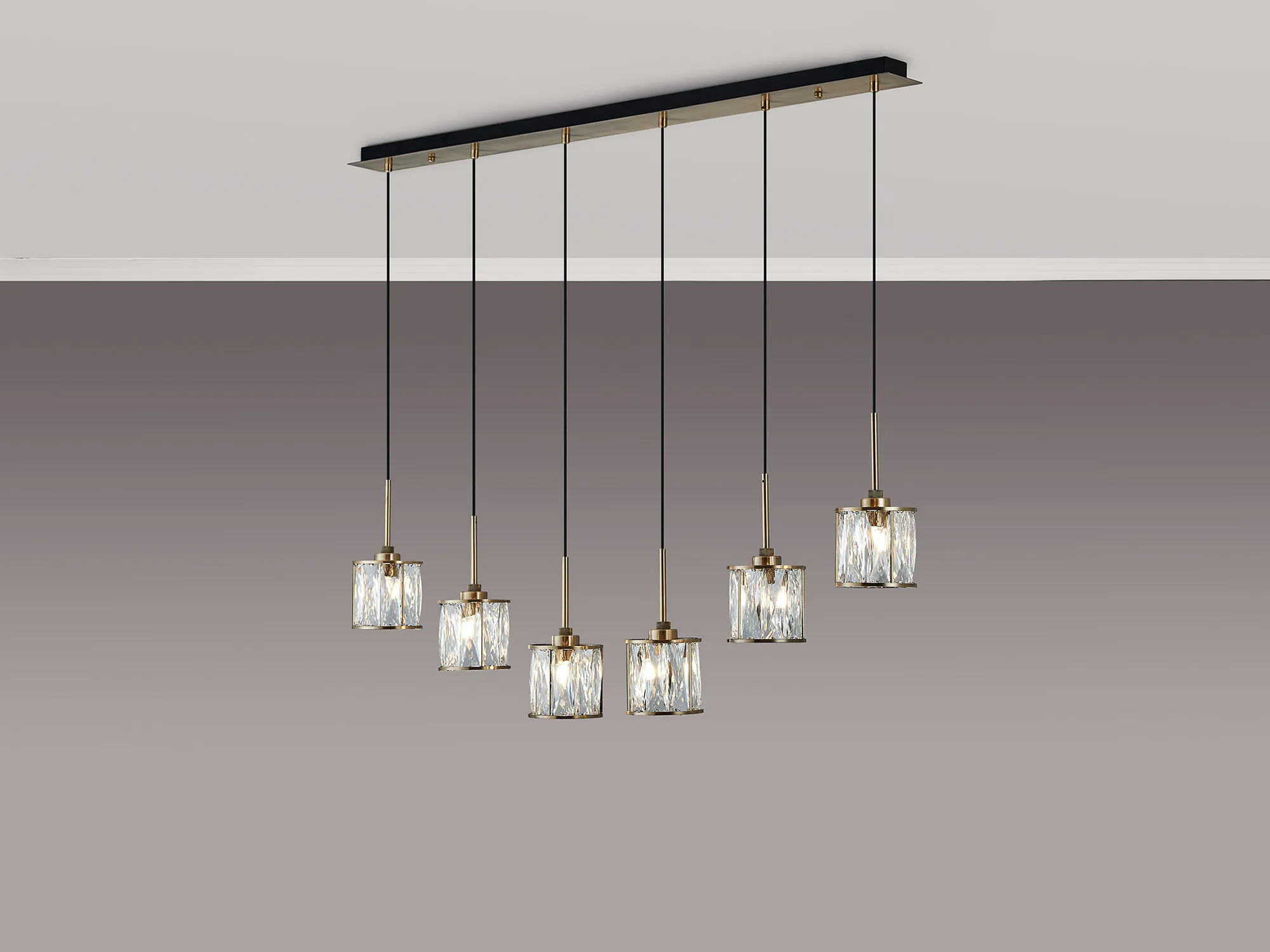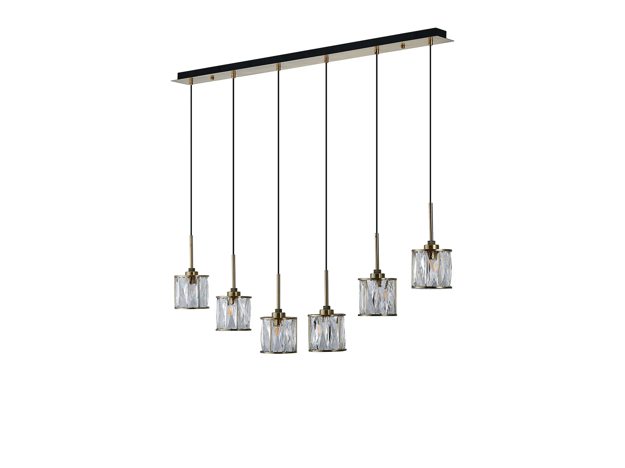 Kiwitea Antique Brass 6 Light G9 Universal 2m Drop Linear Pendant (FRAME ONLY), For A Vast Range Of Glass Shades