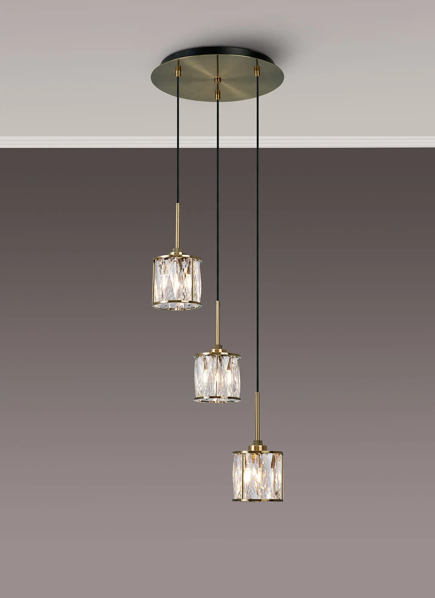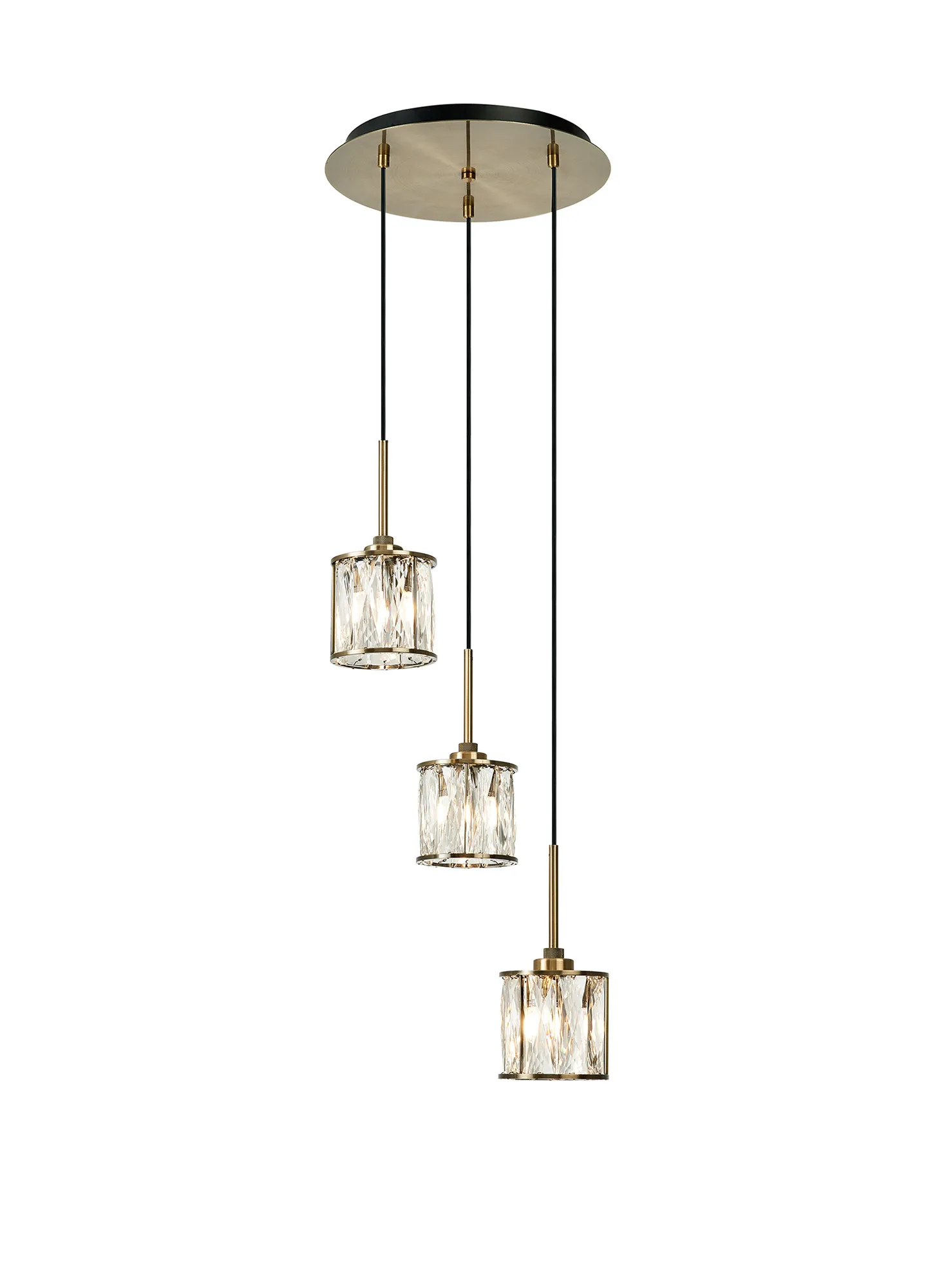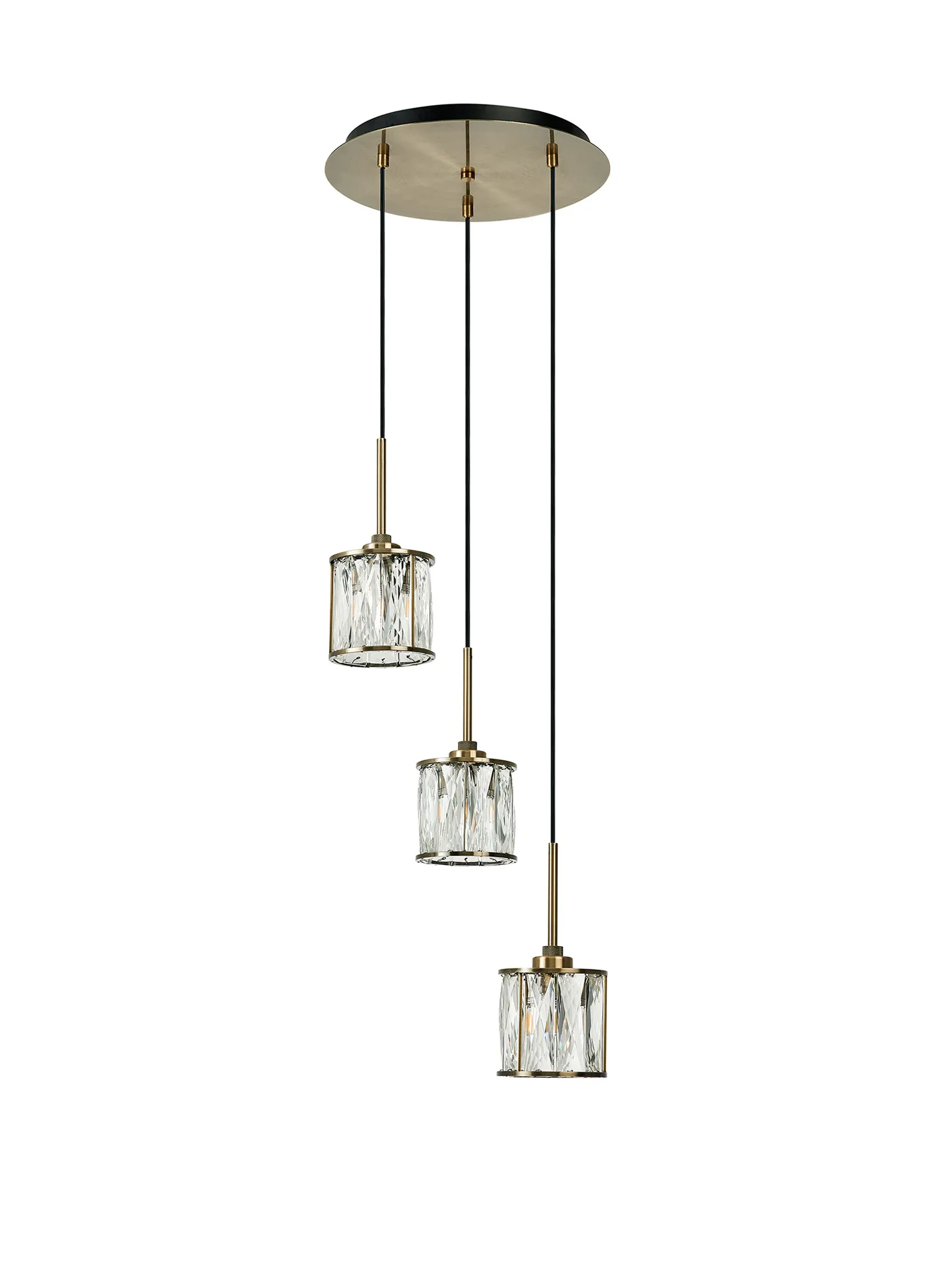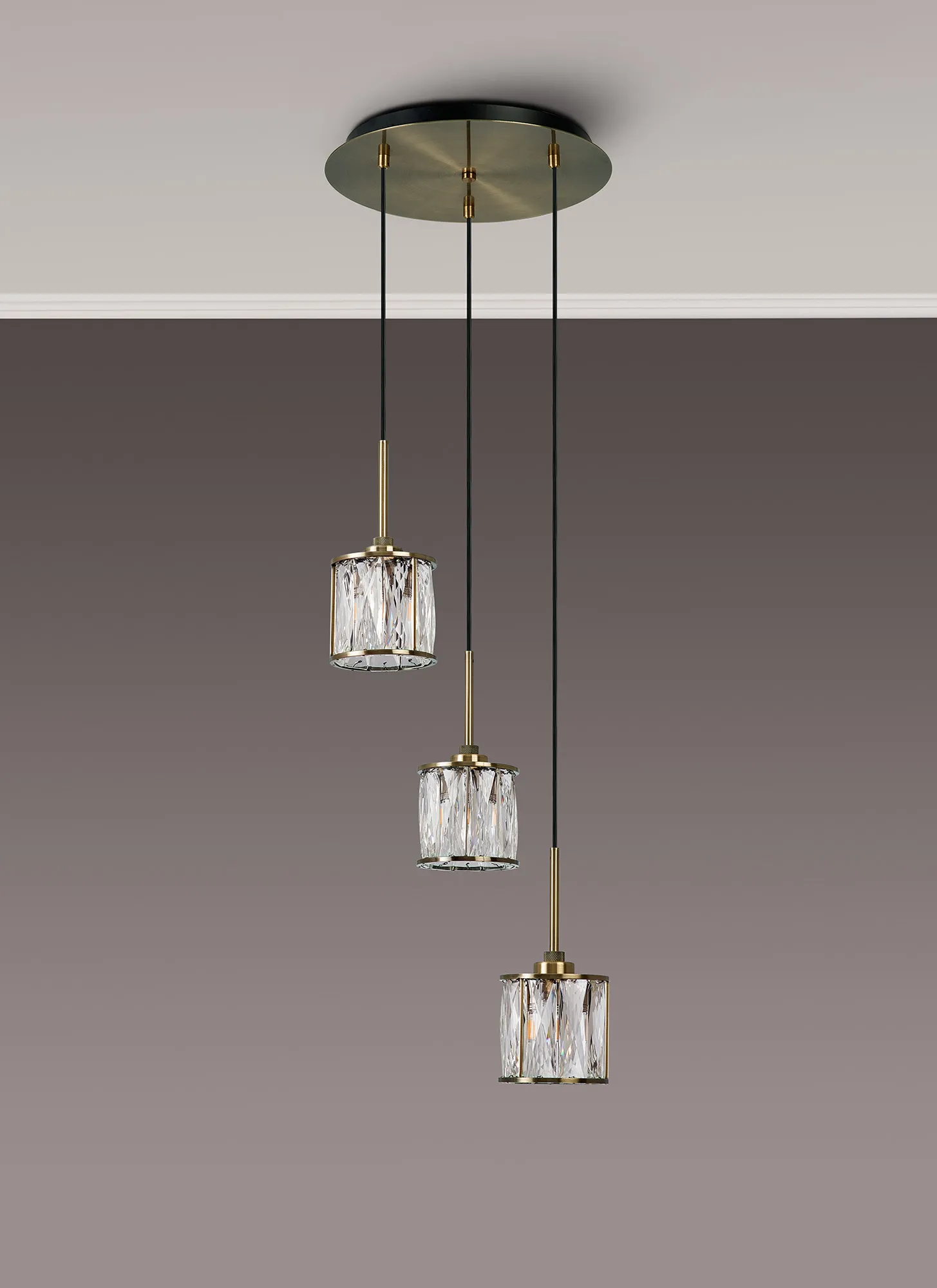 Kiwitea Antique Brass 3 x G9 2m Drop Round Multiple Pendant (FRAME ONLY)
