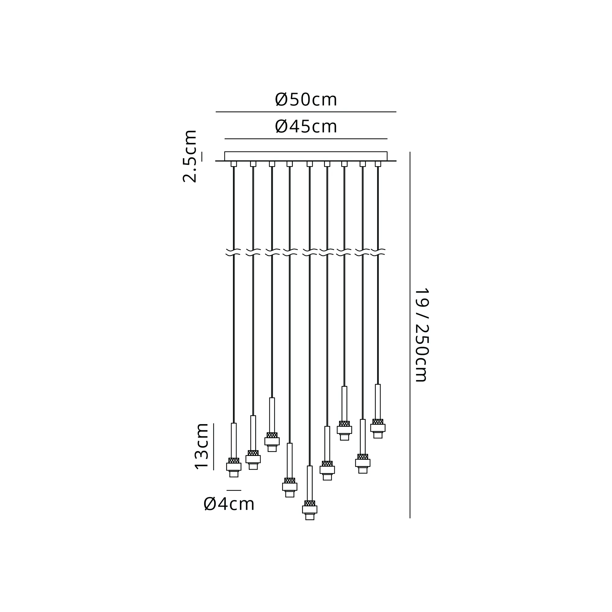 Kiwitea 50cm Antique Brass 9 Light G9 Universal 2.5m Round Multiple Pendant (FRAME ONLY), For A Vast Range Of Glass Shades