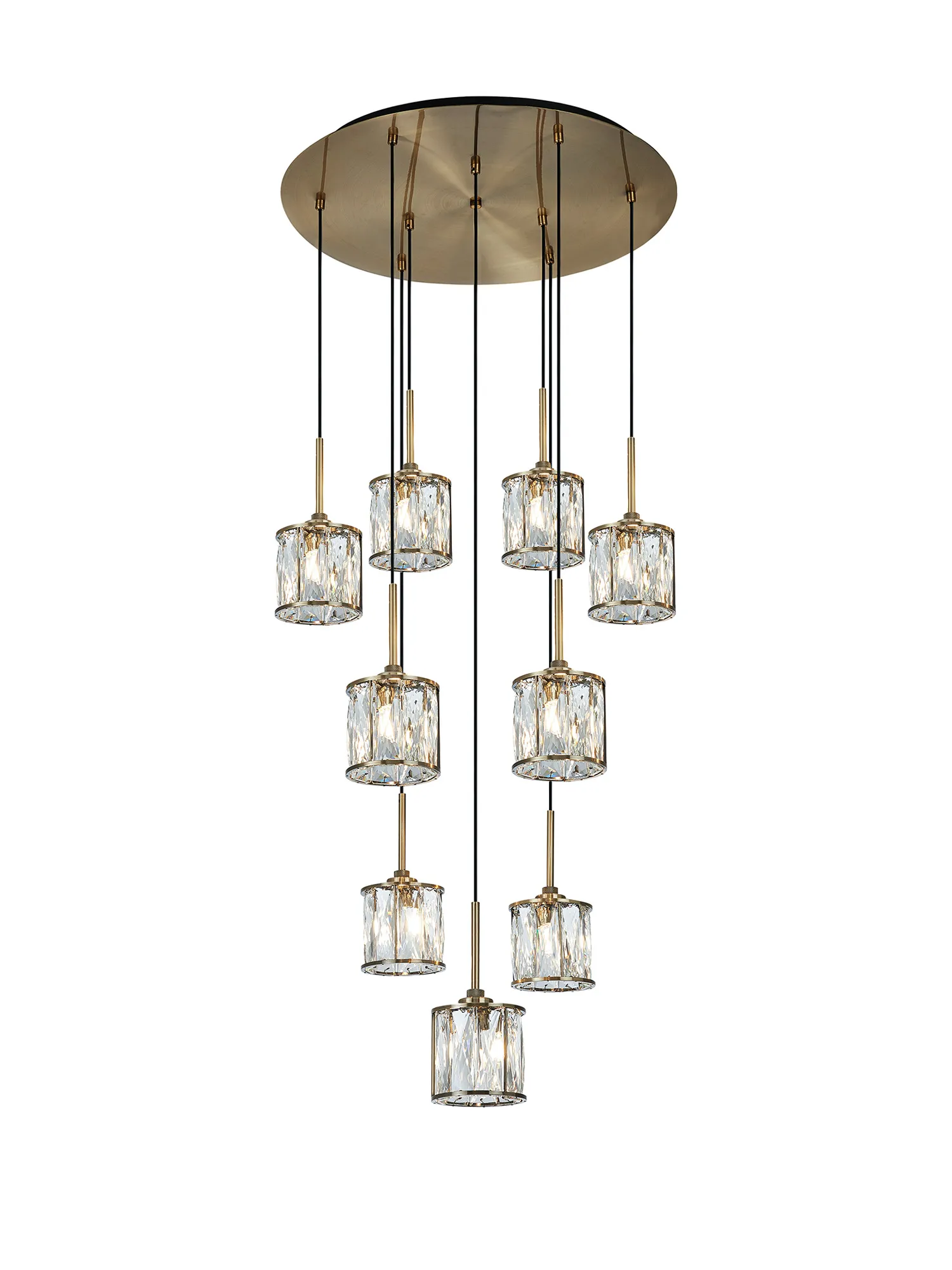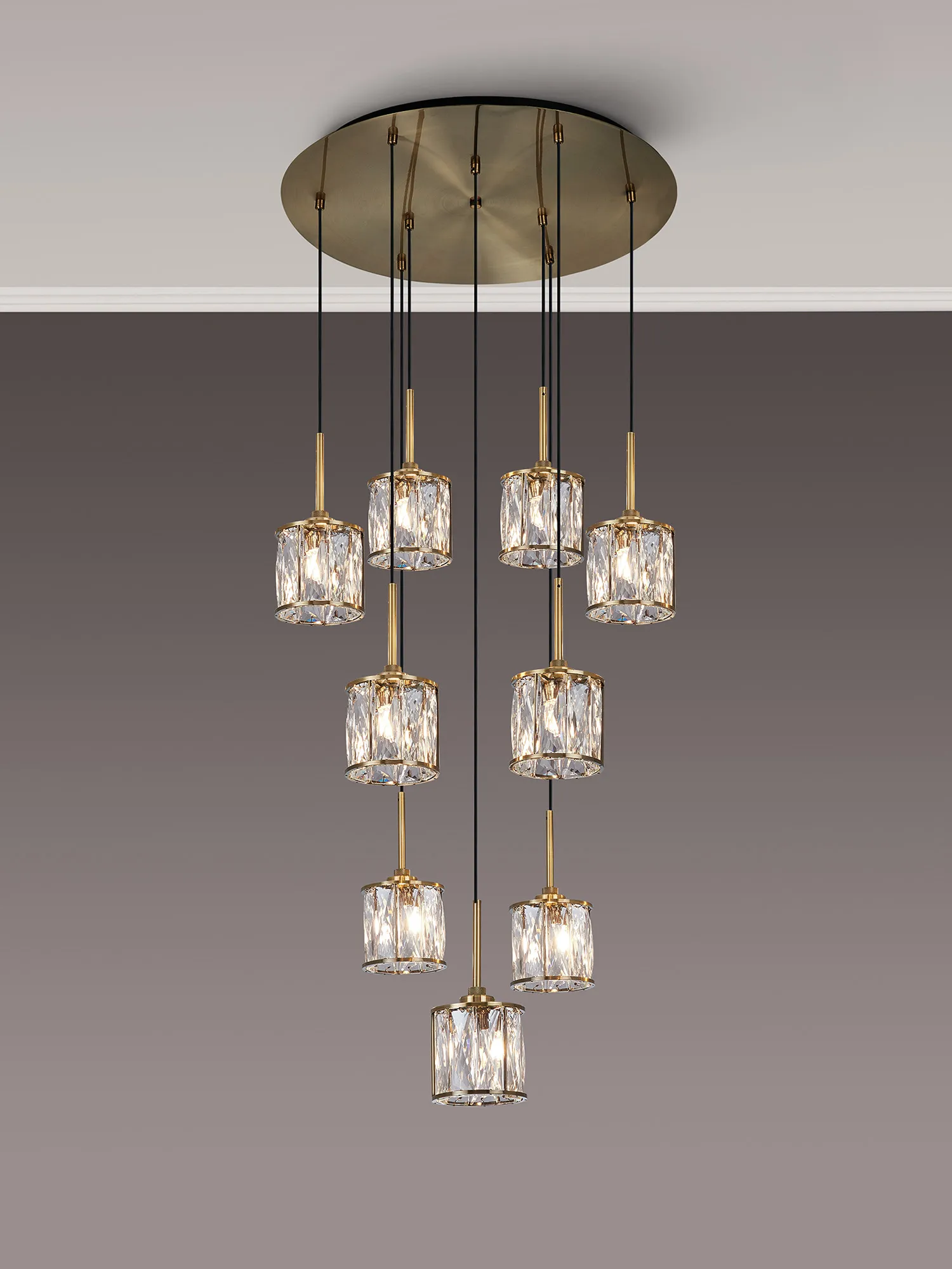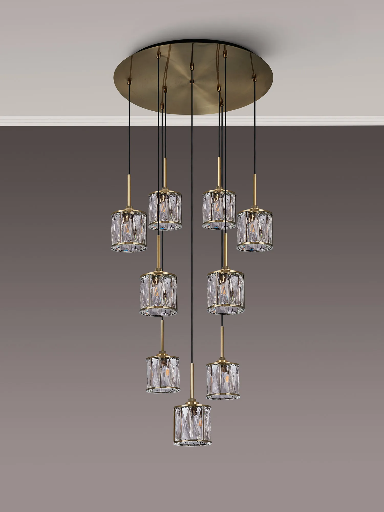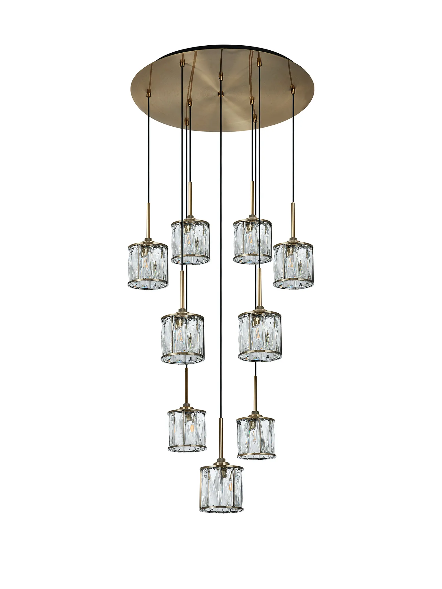 Kiwitea Antique Brass 9 x G9 2.5m Round Multiple Pendant (FRAME ONLY)