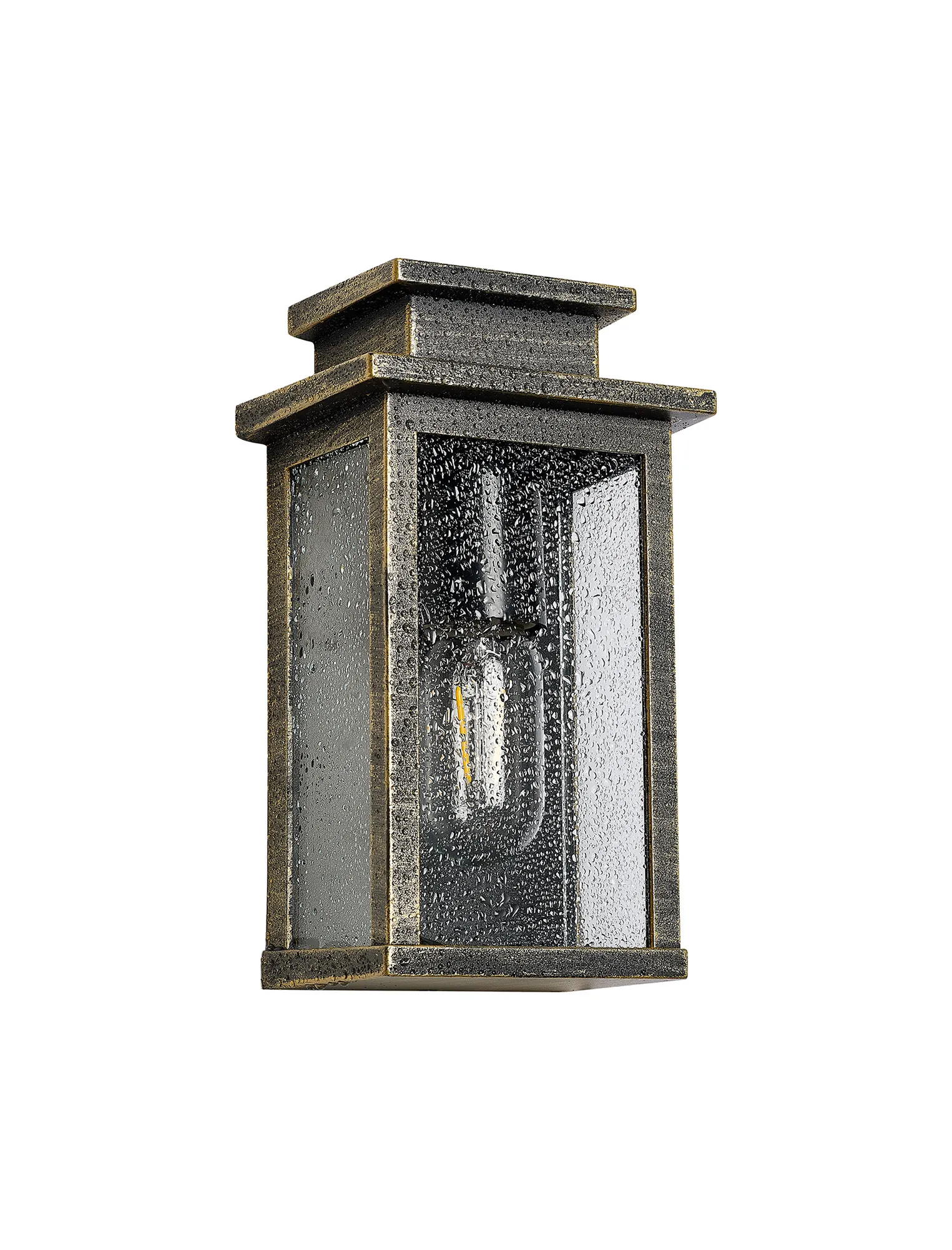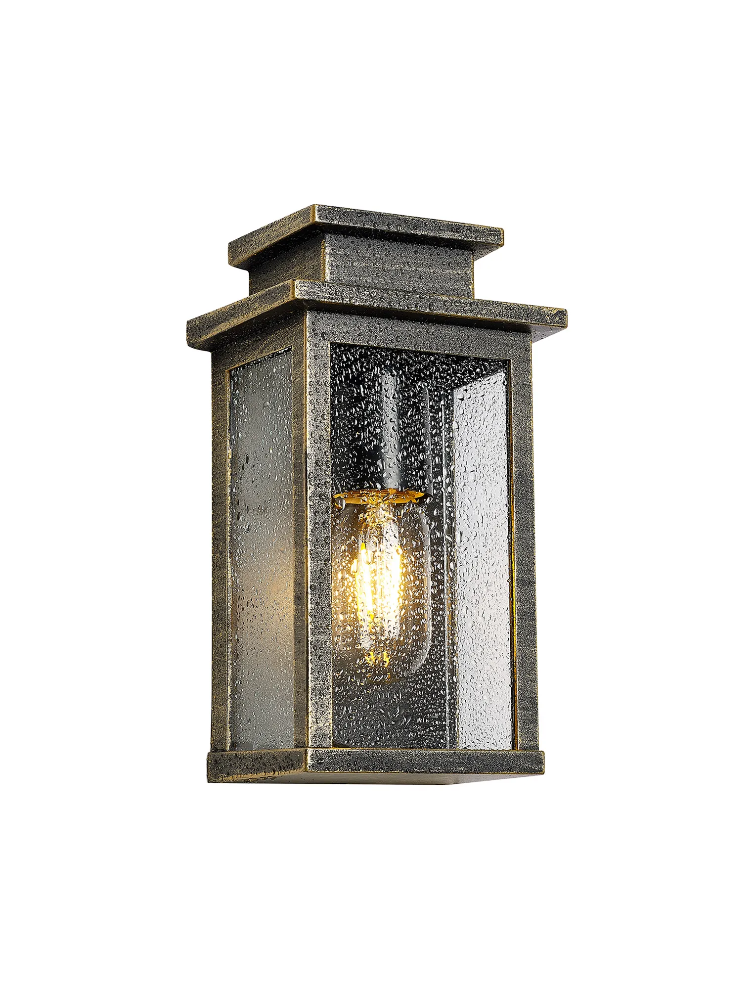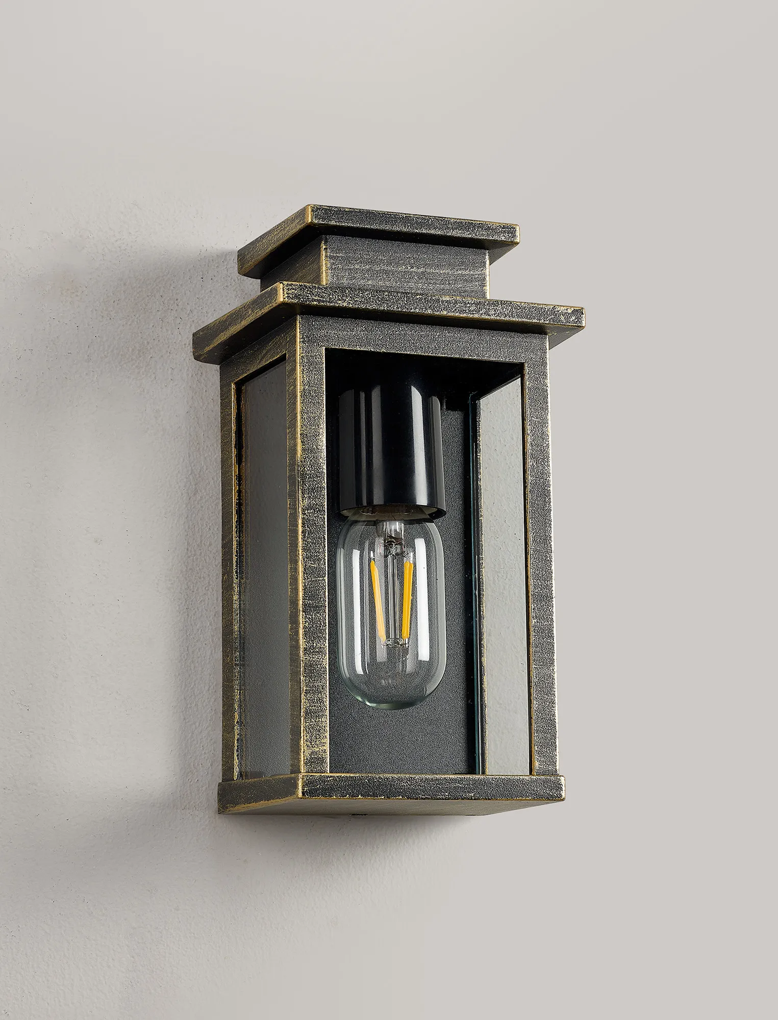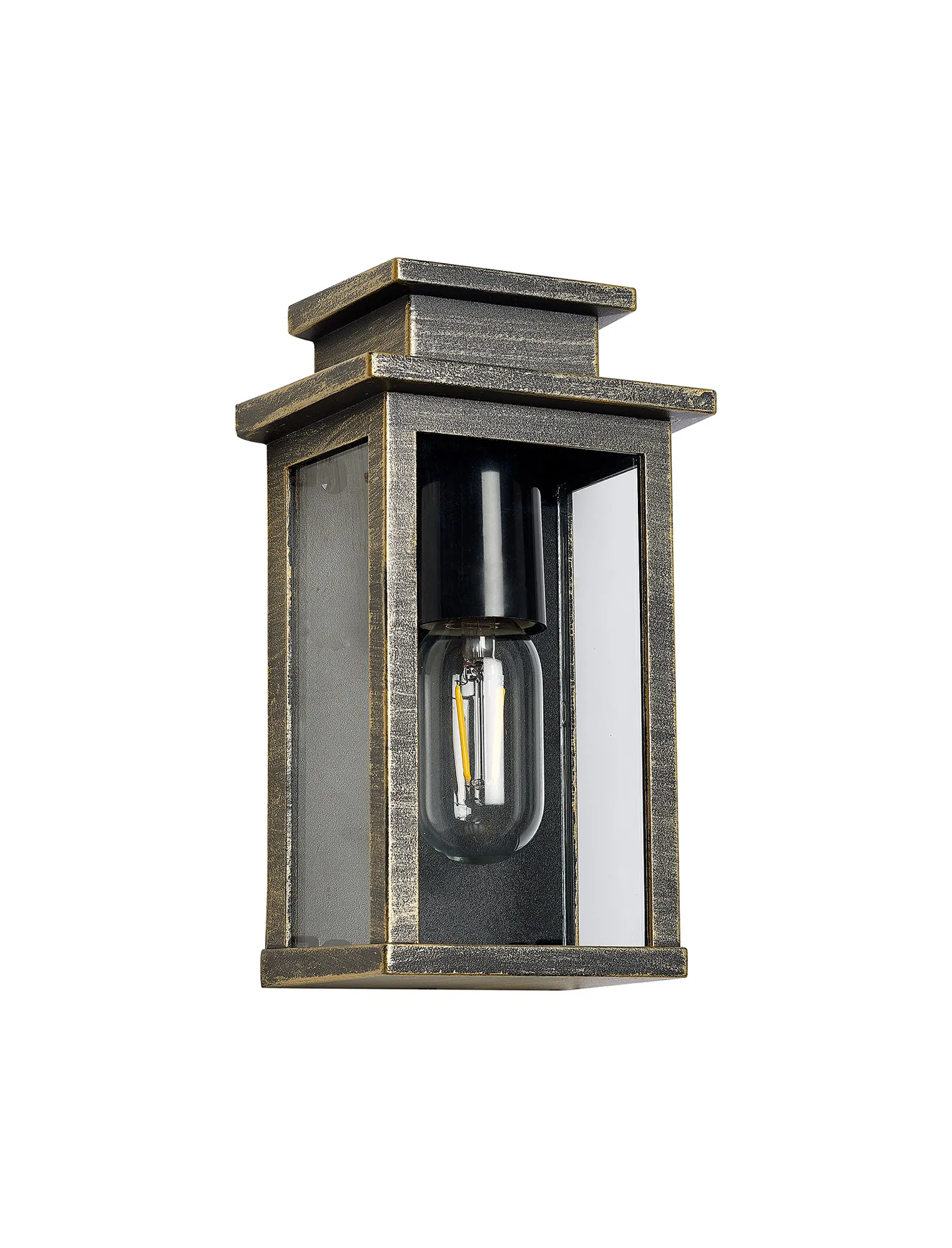 A collection of IP44 rated wall lamps, Waterloo combines design aspects of vintage lanterns with clear glass panes. Available in either a black/brushed silver or black/brushed gold finish, the glass pieces display the E27 lamp holder, which is ideal when the fixture is being used along with a decorative lamp.