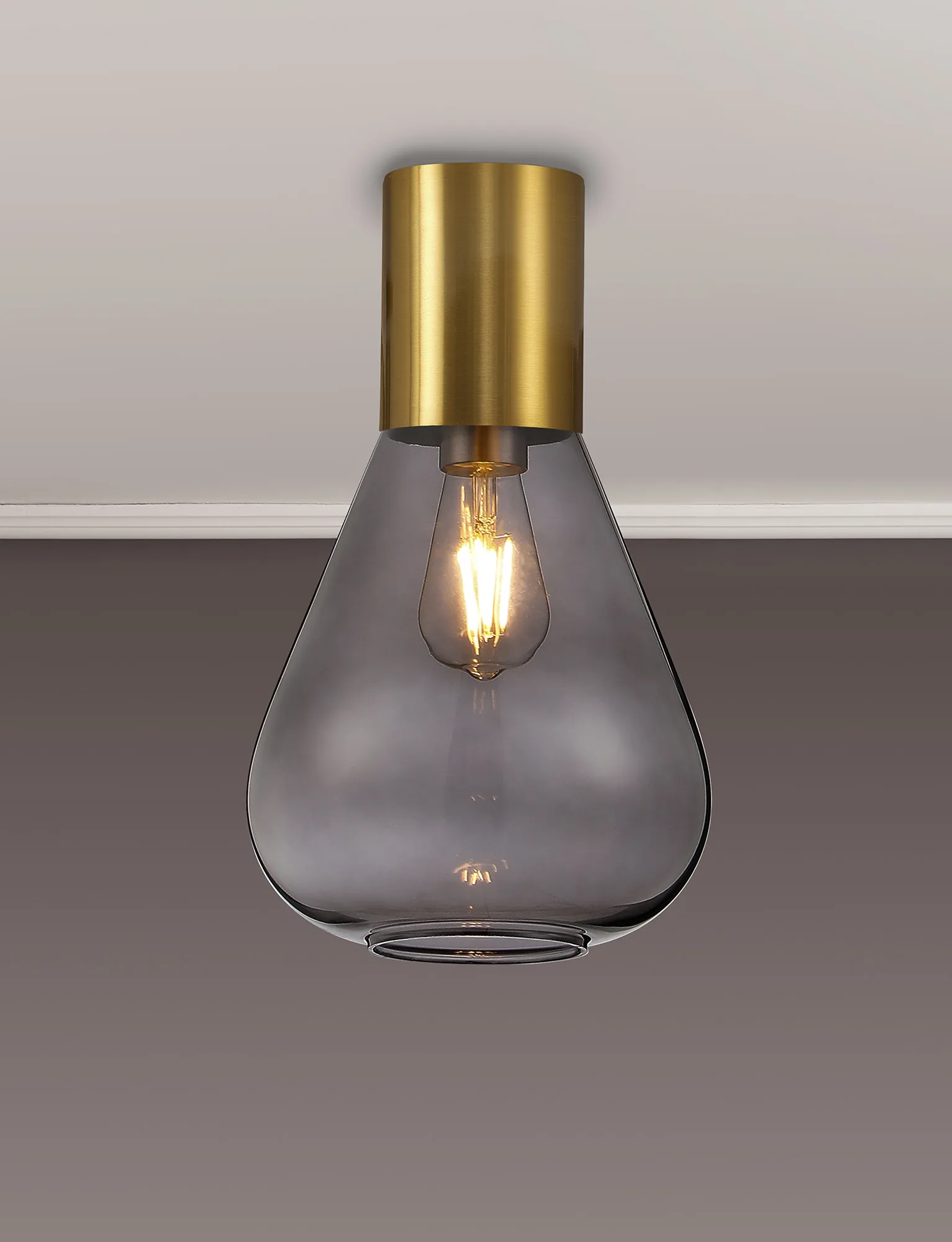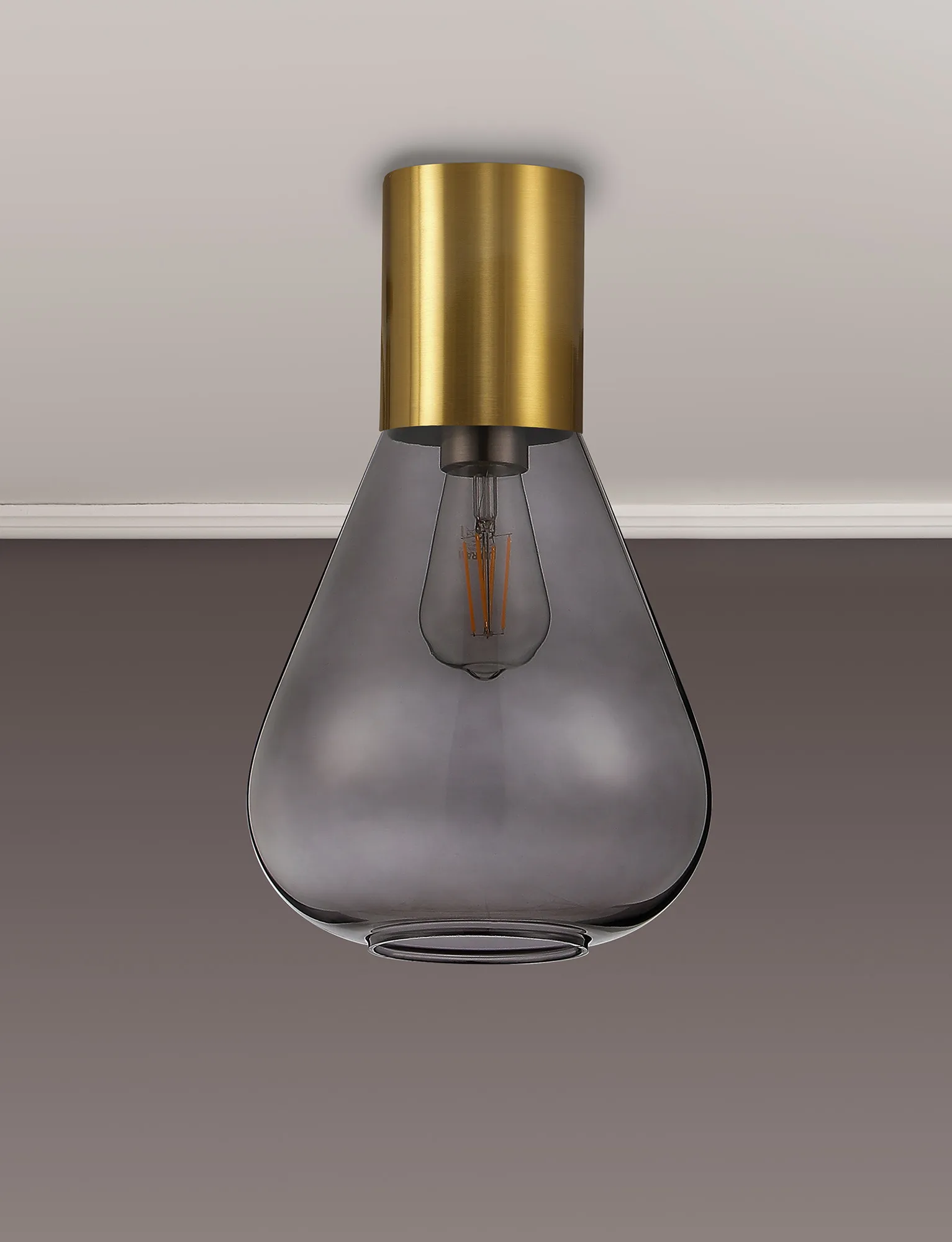 Clyde Ceiling Light With Wide Glass, 1 x E27, Aged Brass/Inky Black