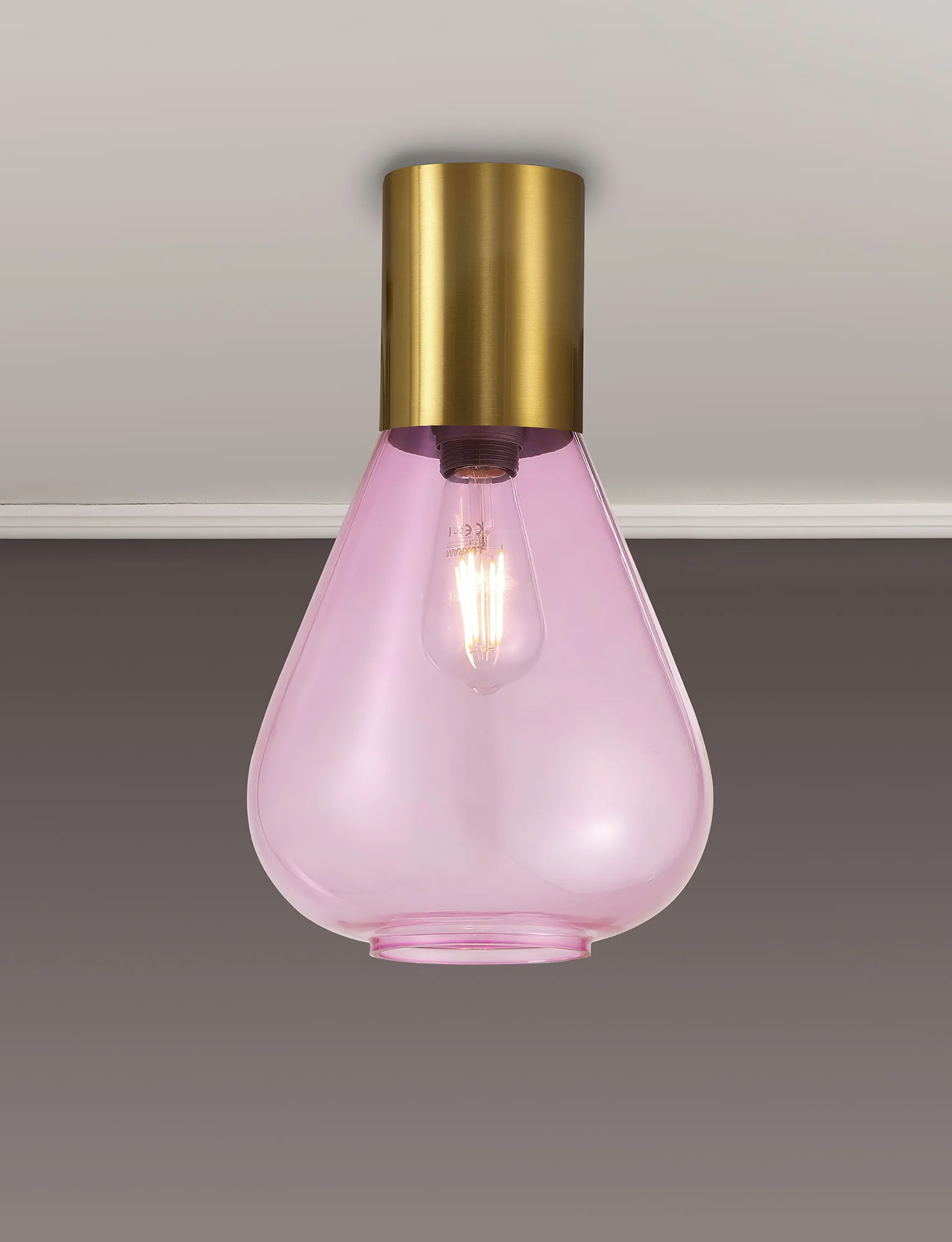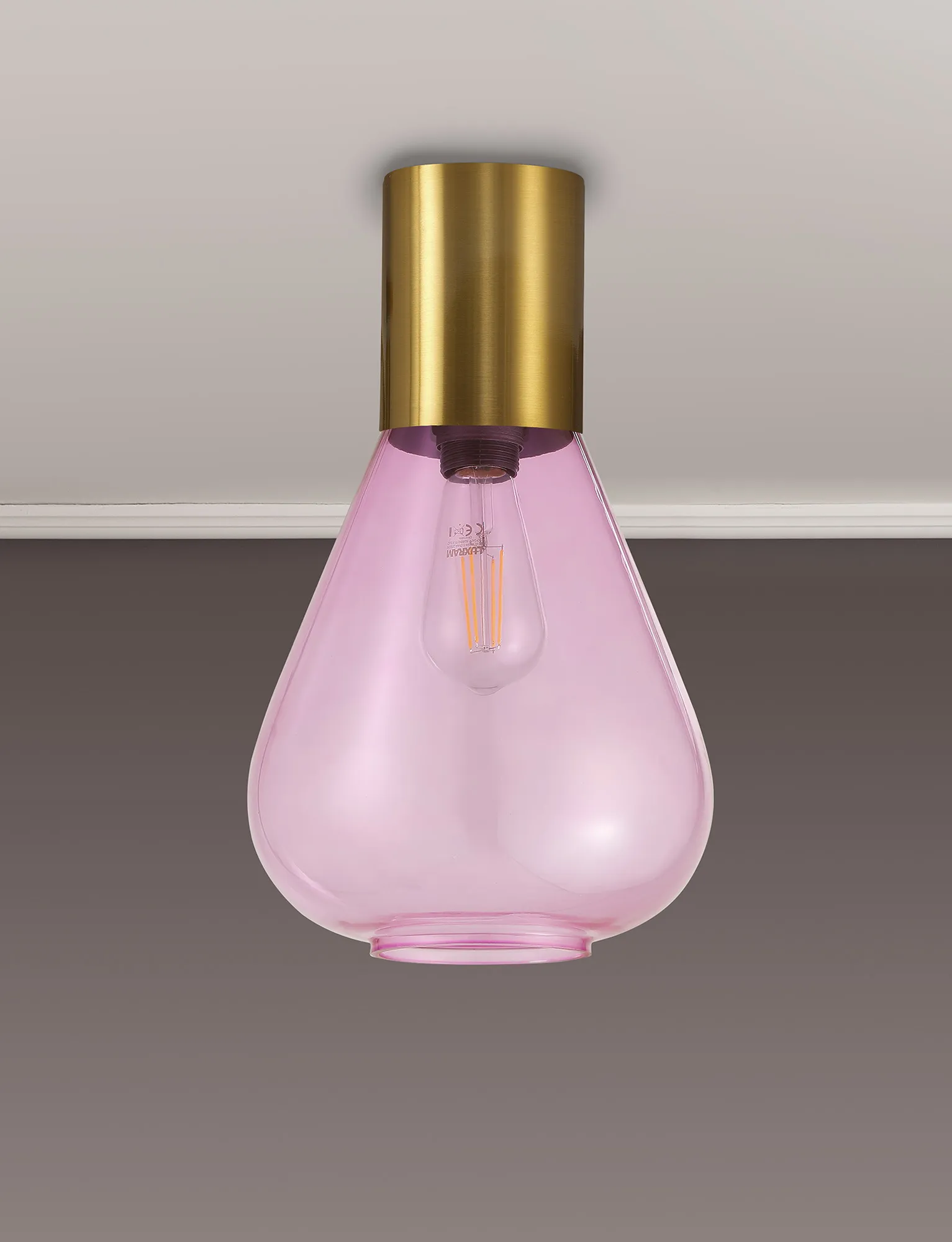 Clyde Ceiling Light With Wide Glass, 1 x E27, Aged Brass/Lilac