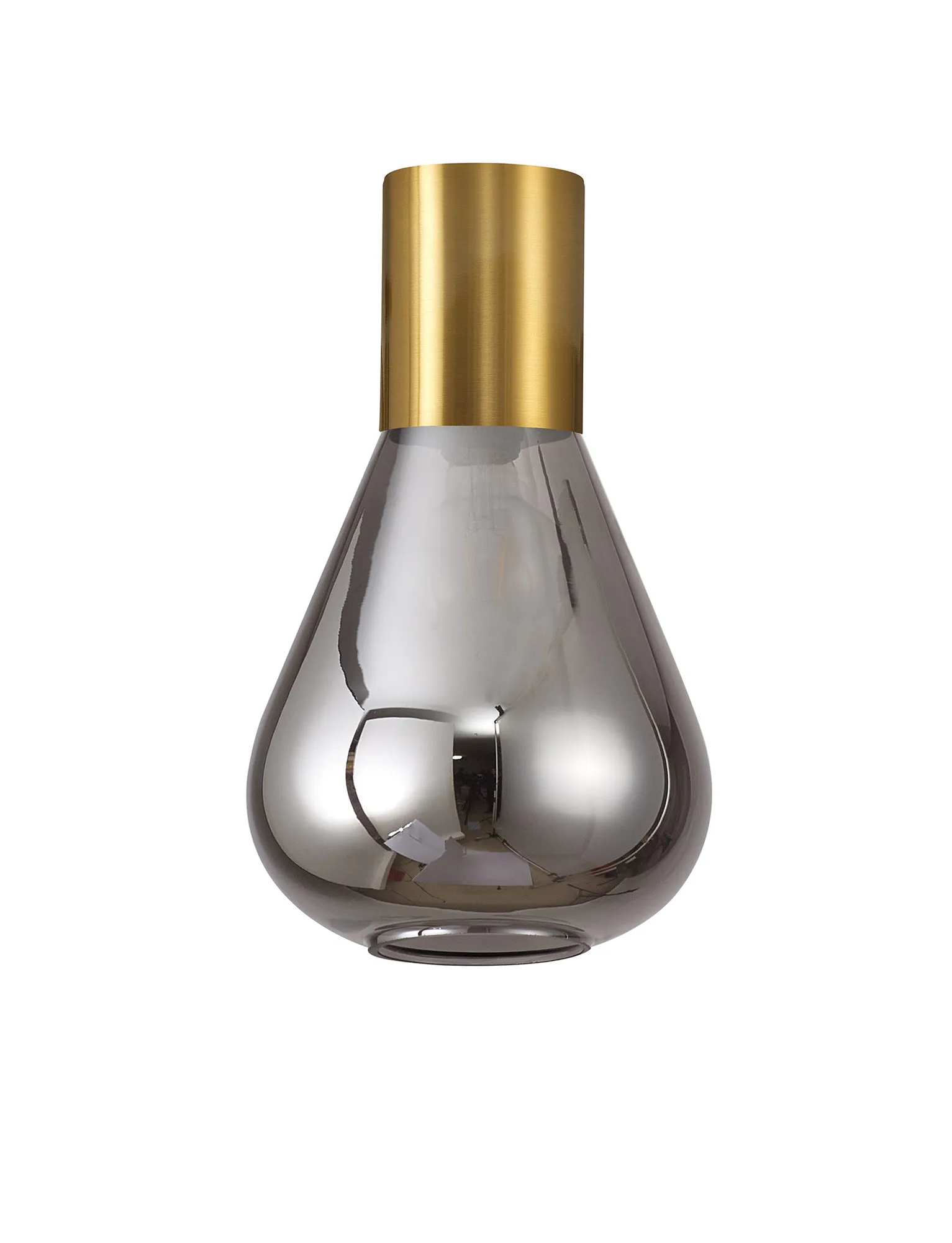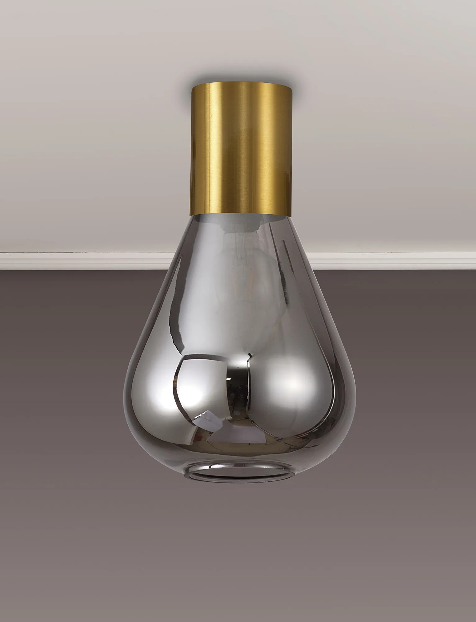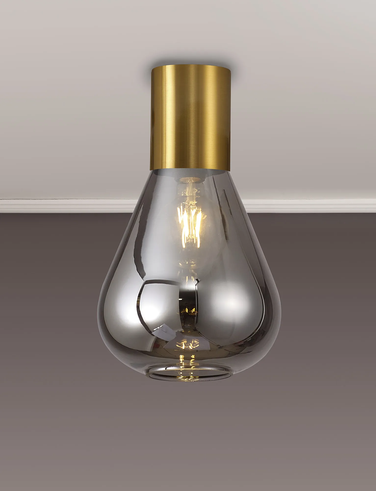 Clyde Ceiling Light With Wide Glass, 1 x E27, Aged Brass/Smoke