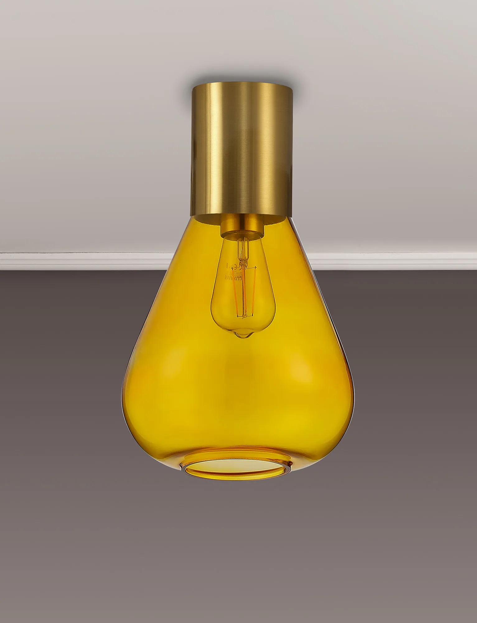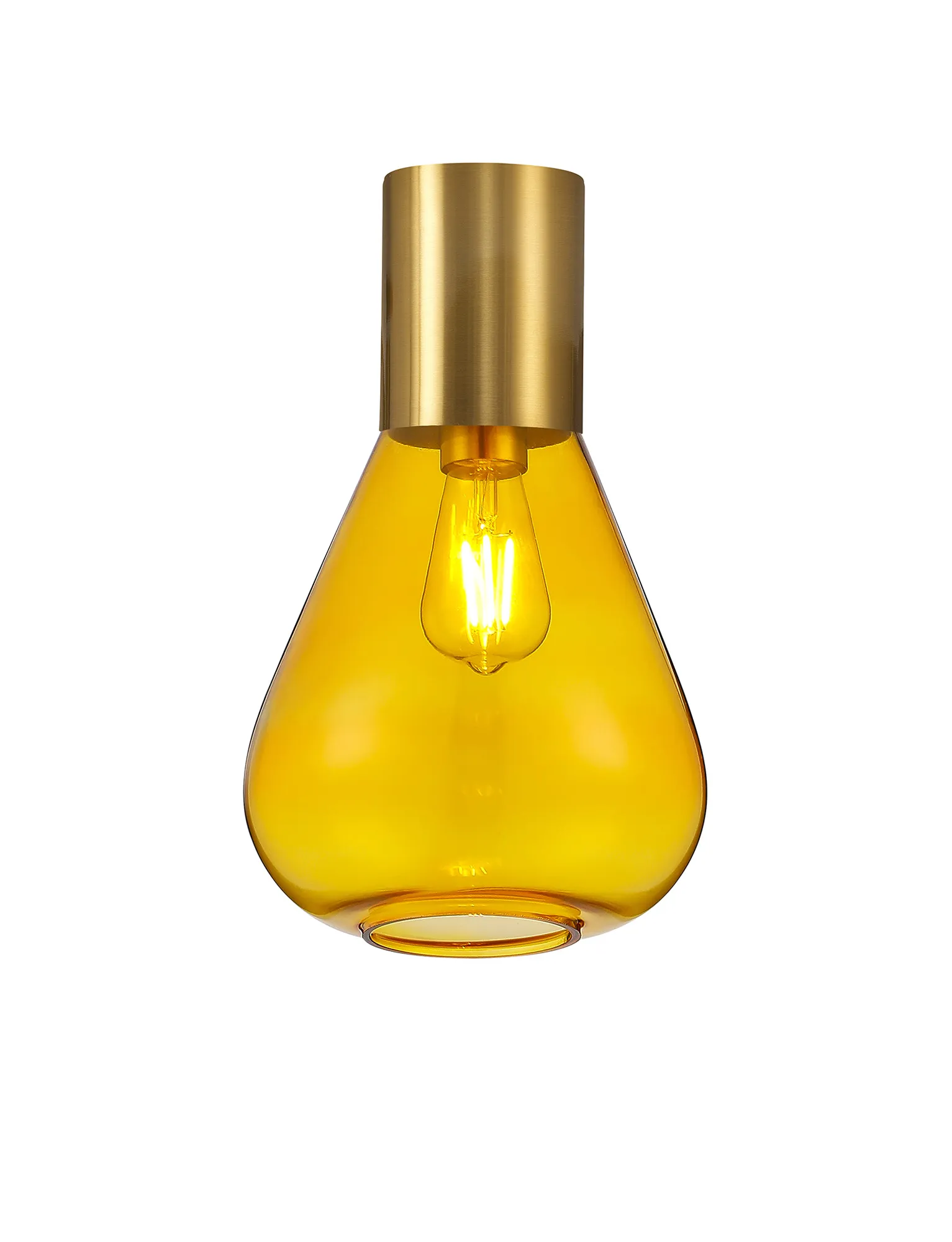 Clyde Ceiling Light With Wide Glass, 1 x E27, Aged Brass/Yellow