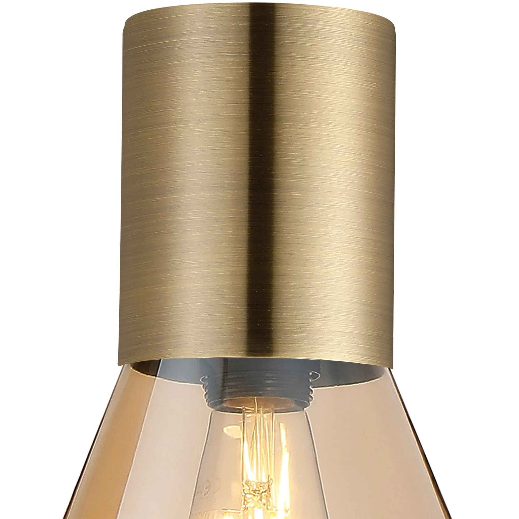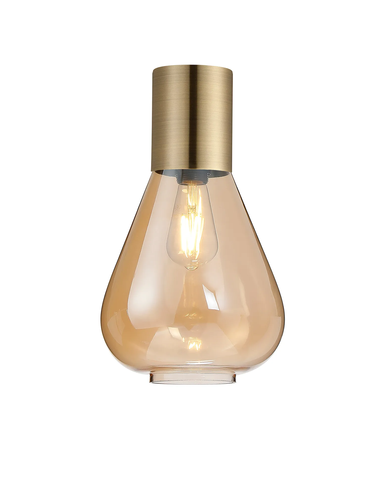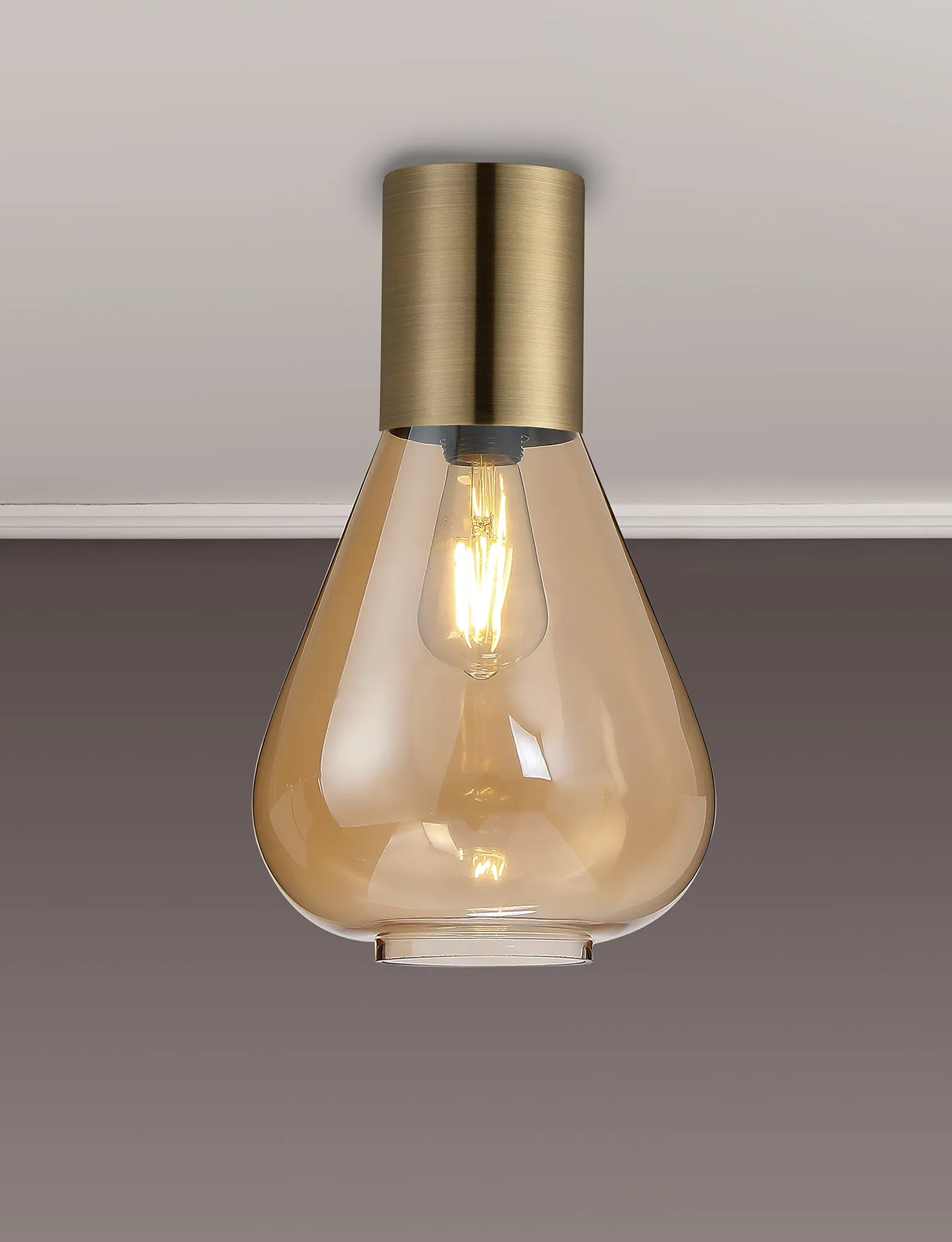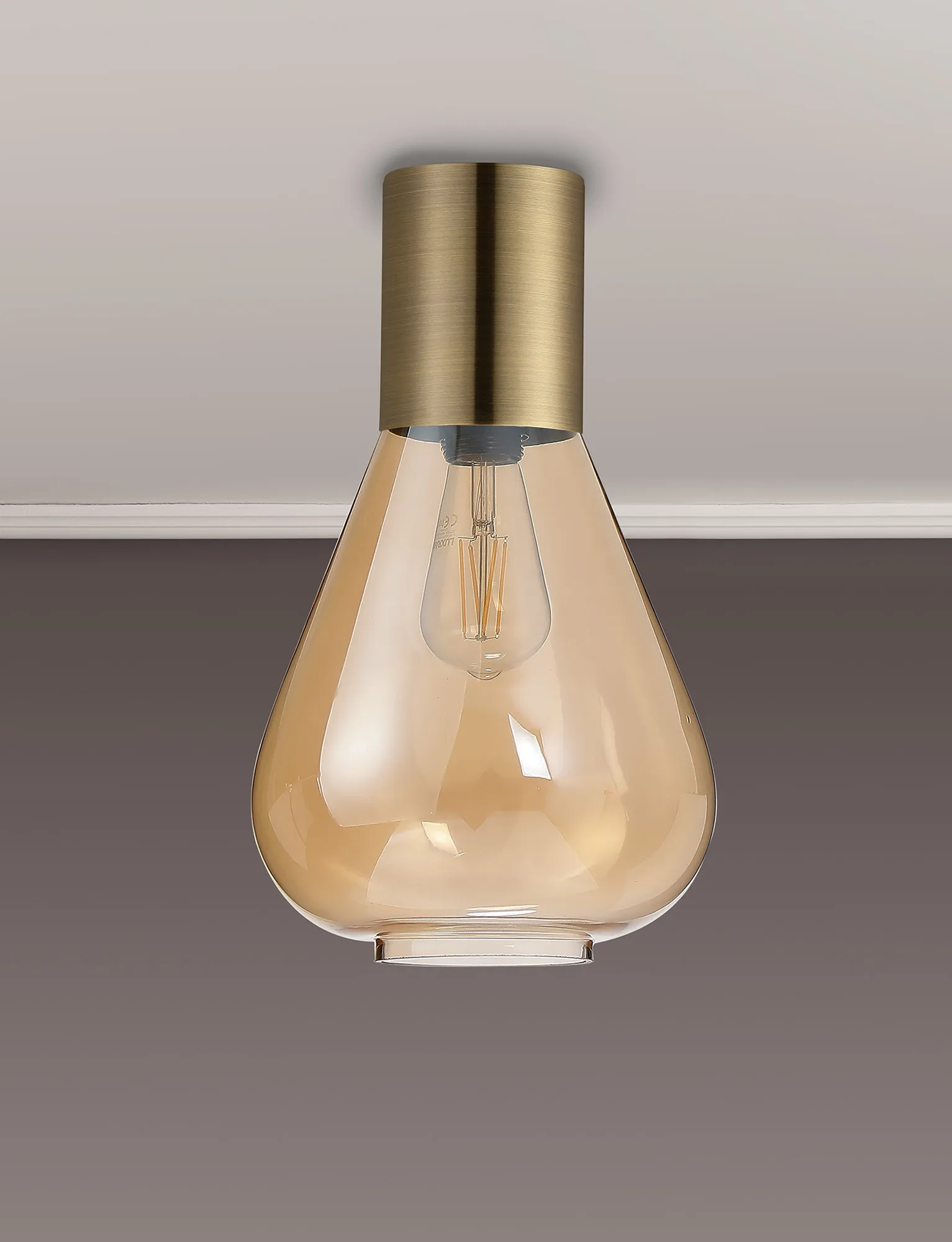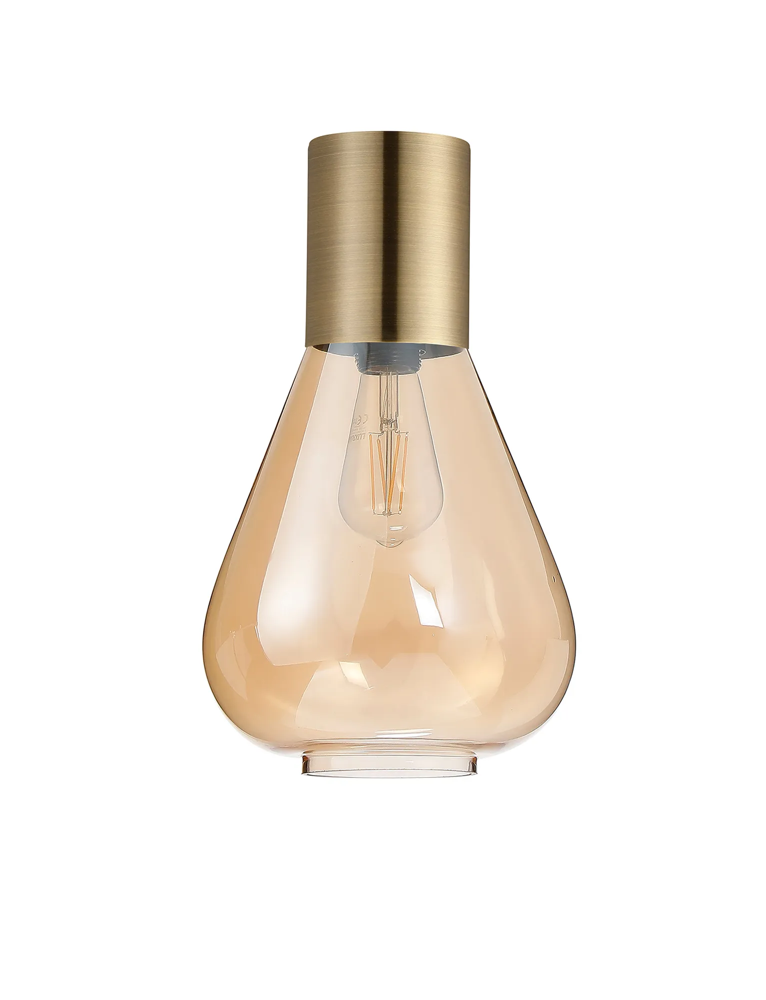 Clyde Ceiling Light With Wide Glass, 1 x E27, Antique Brass/Amber