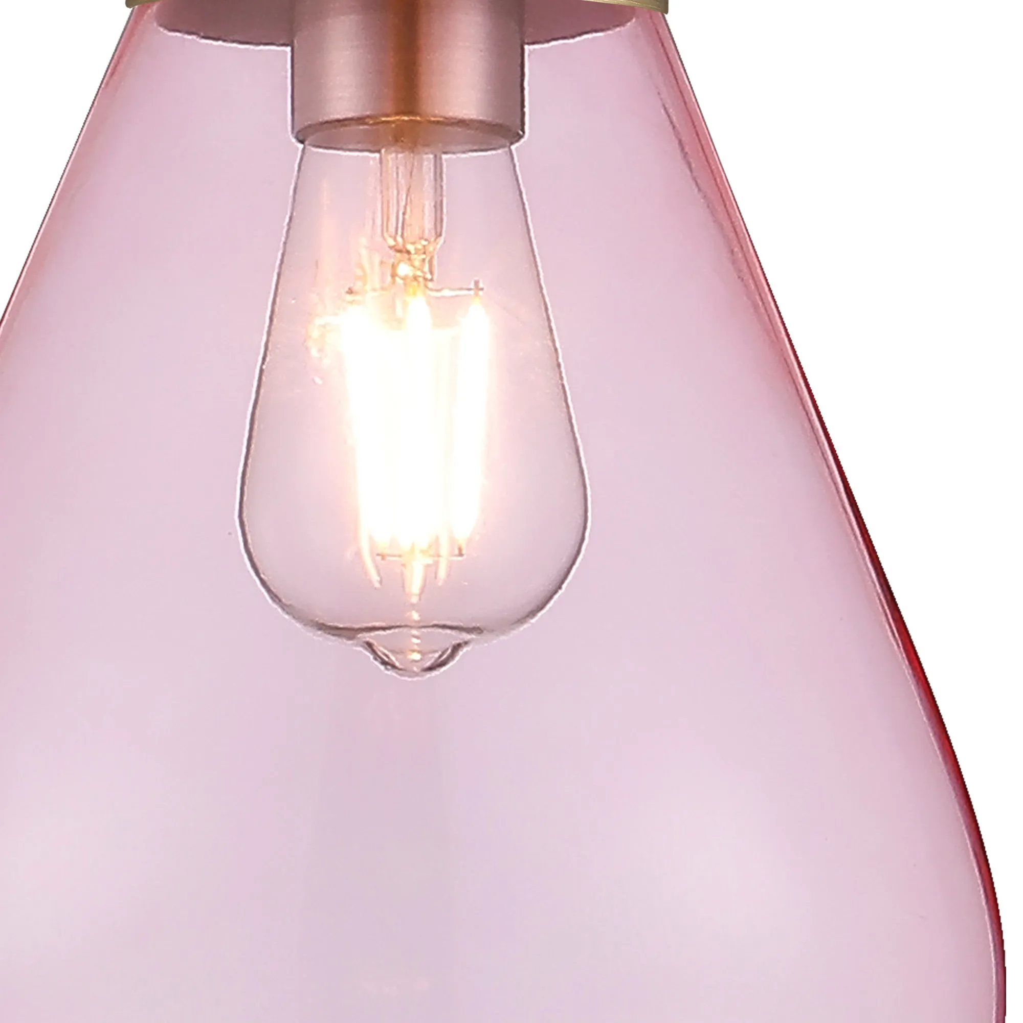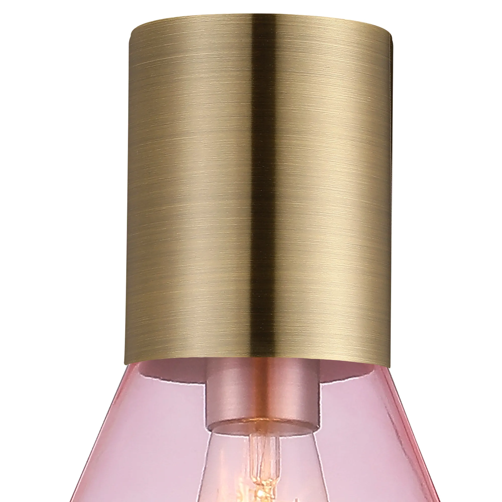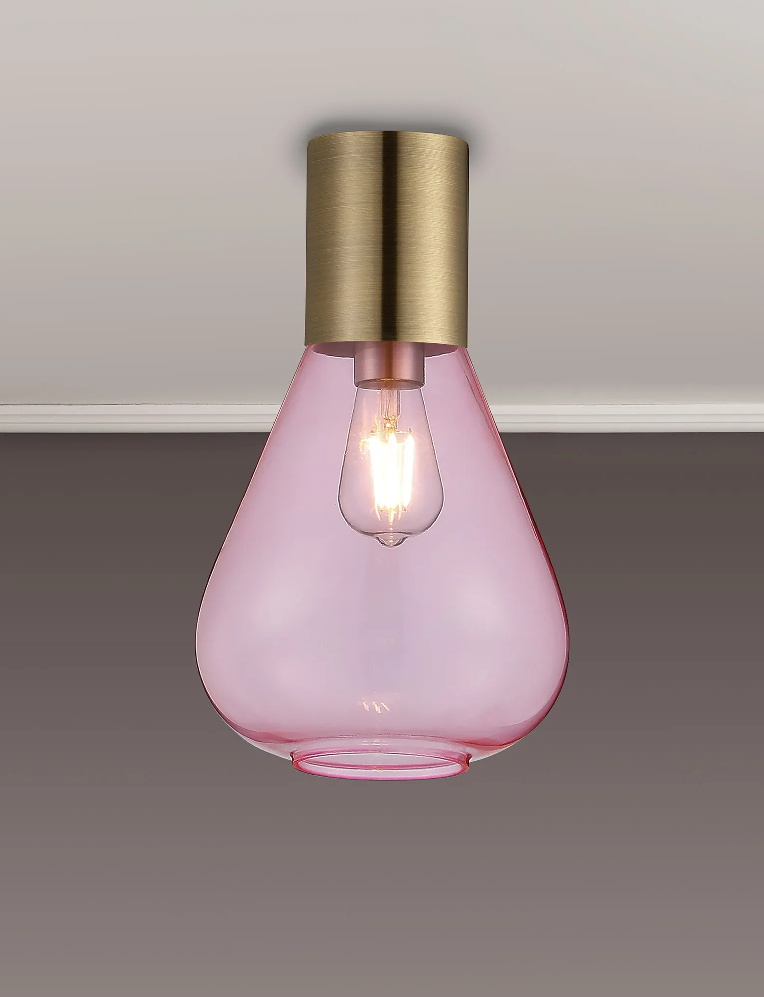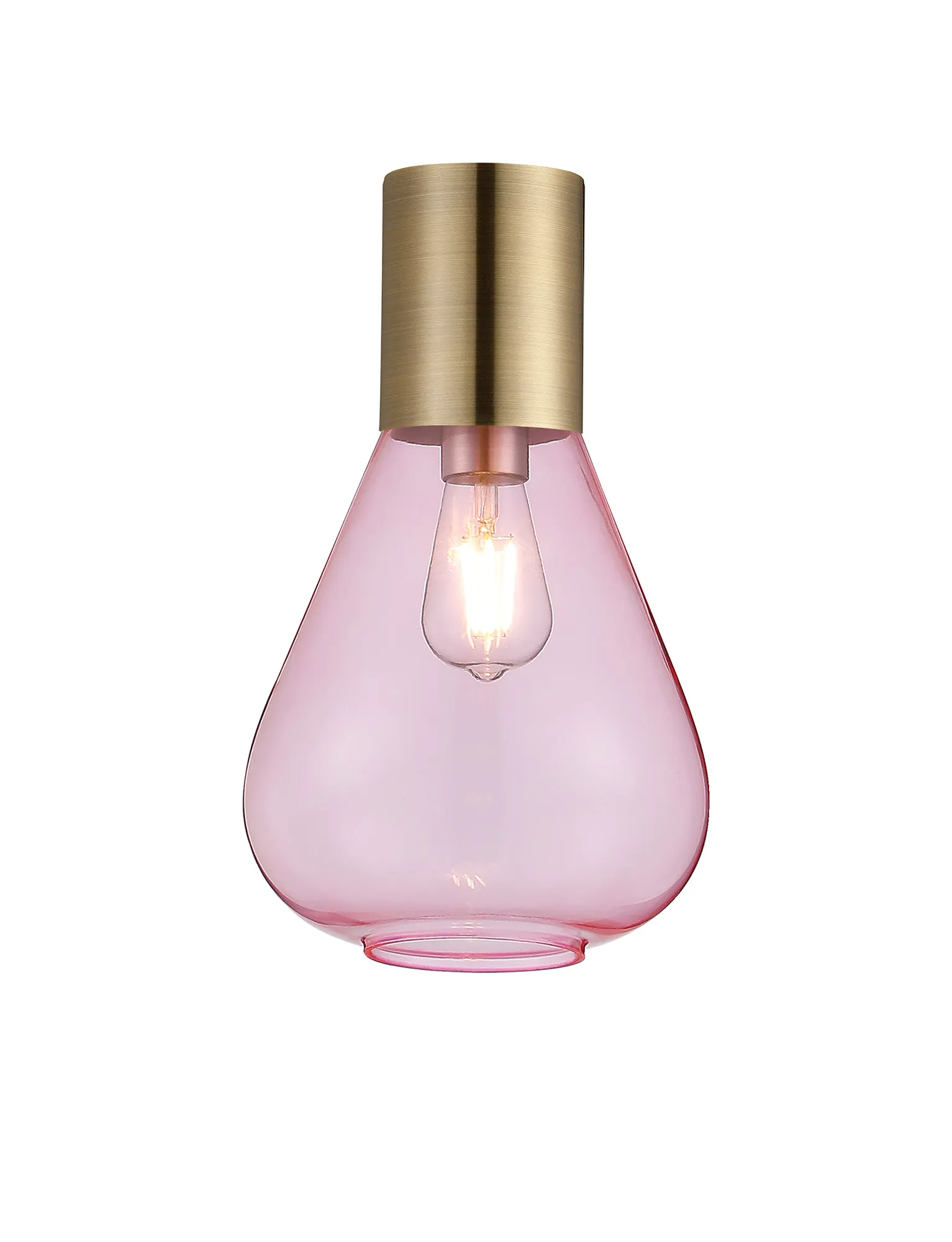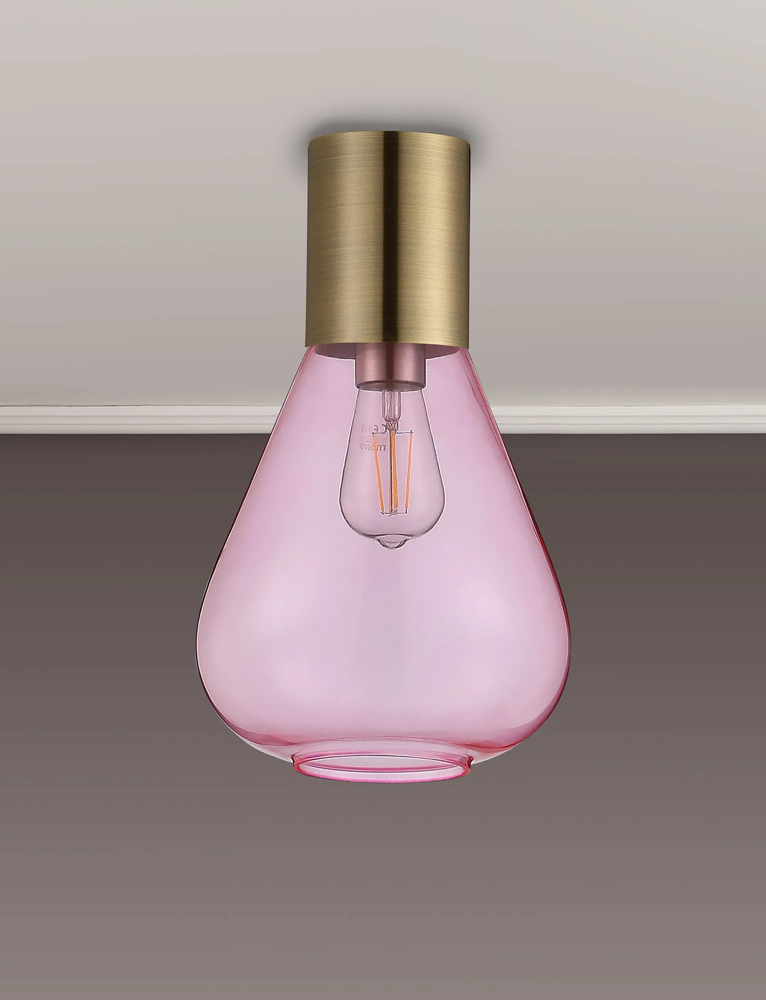 Clyde Ceiling Light With Wide Glass, 1 x E27, Antique Brass/Pink