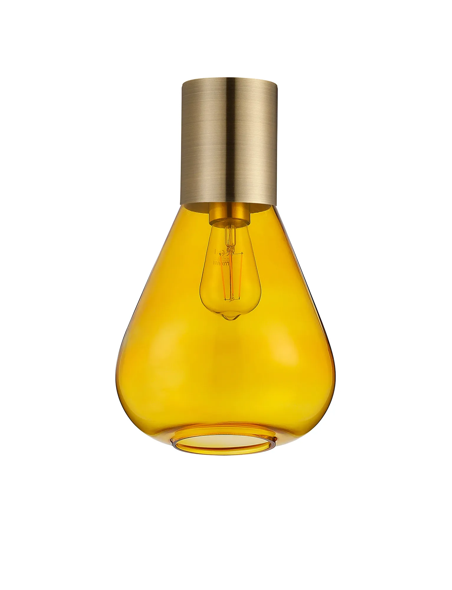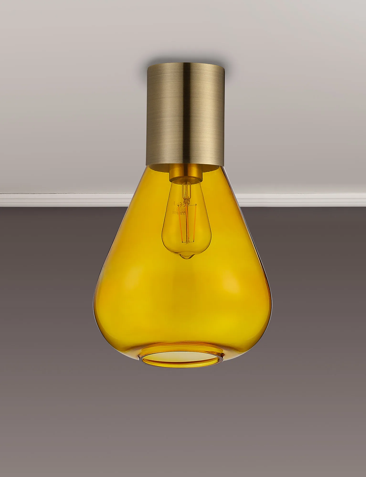 Clyde Ceiling Light With Wide Glass, 1 x E27, Antique Brass/Yellow