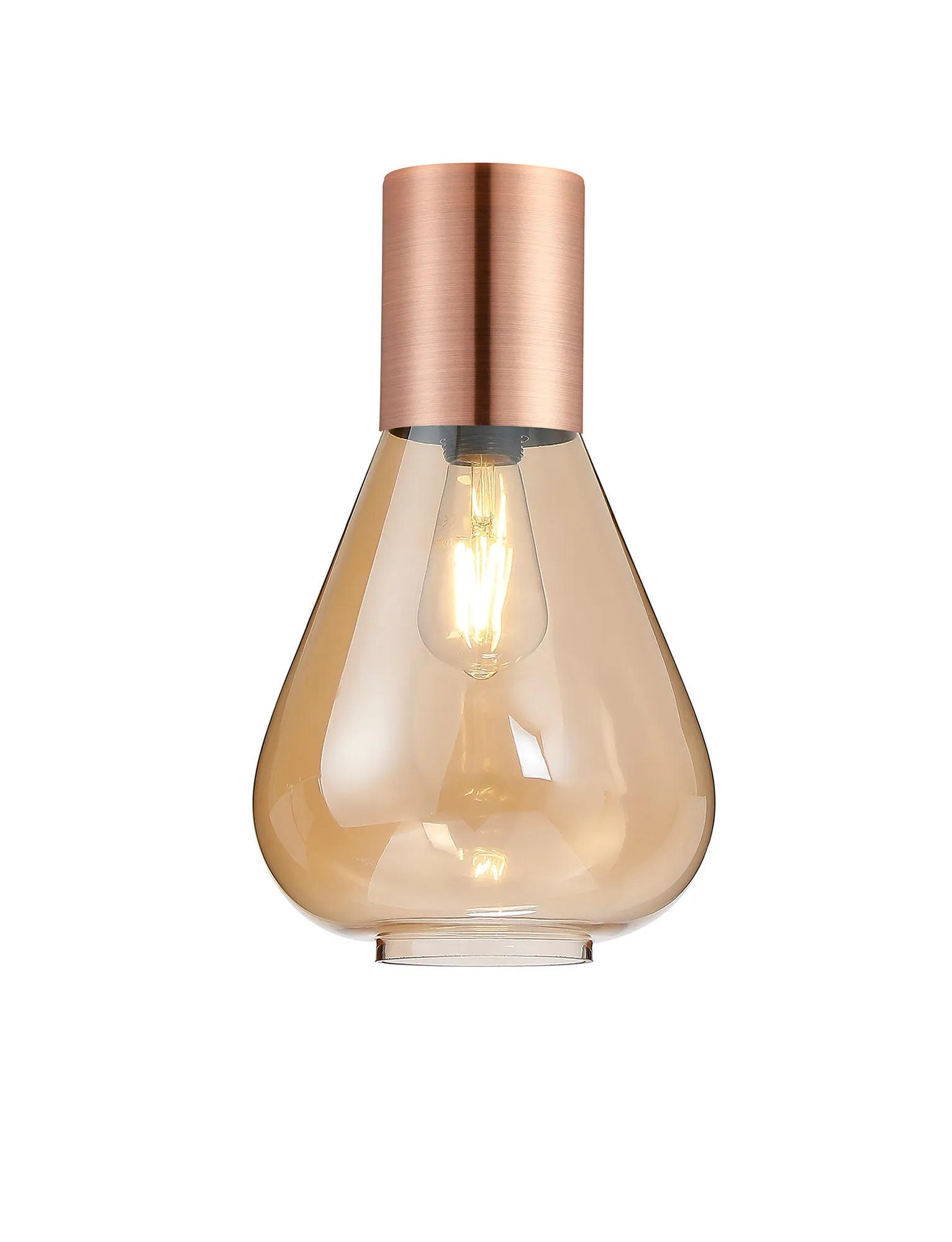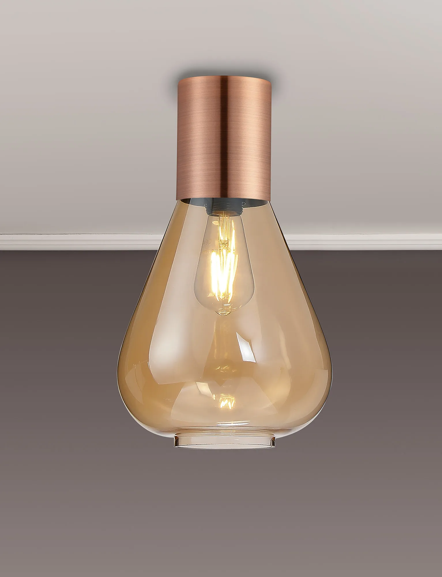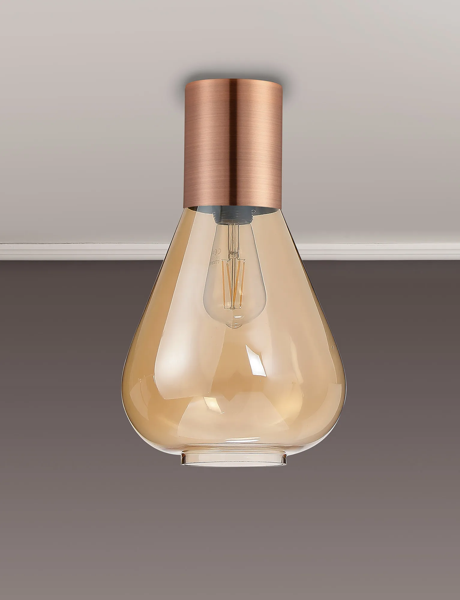 Clyde Ceiling Light With Wide Glass, 1 x E27, Antique Copper/Amber