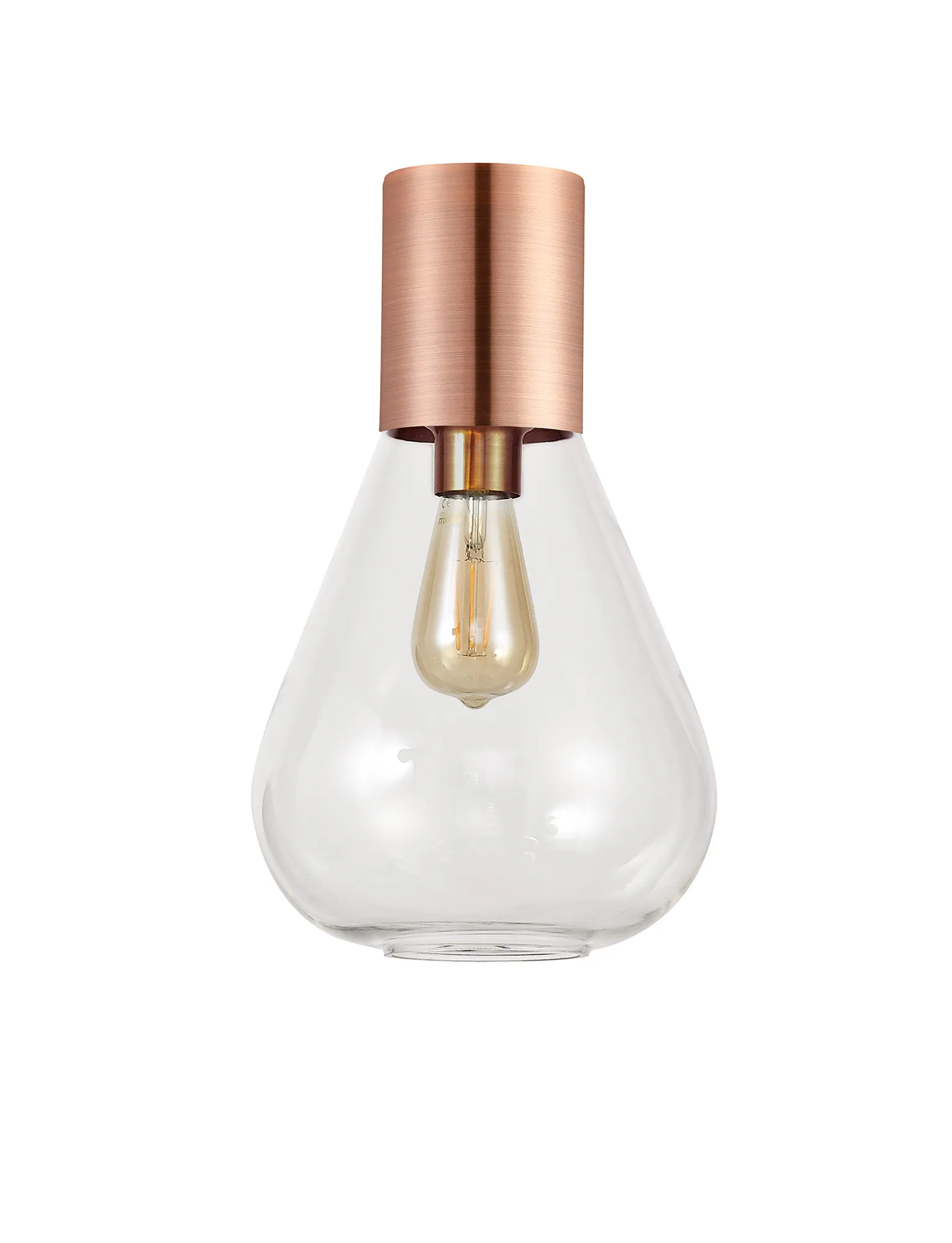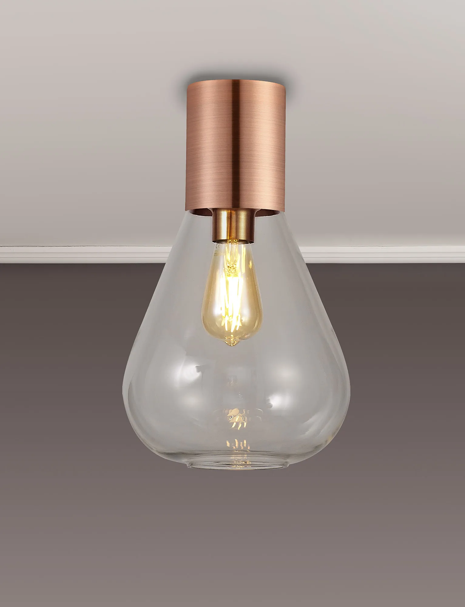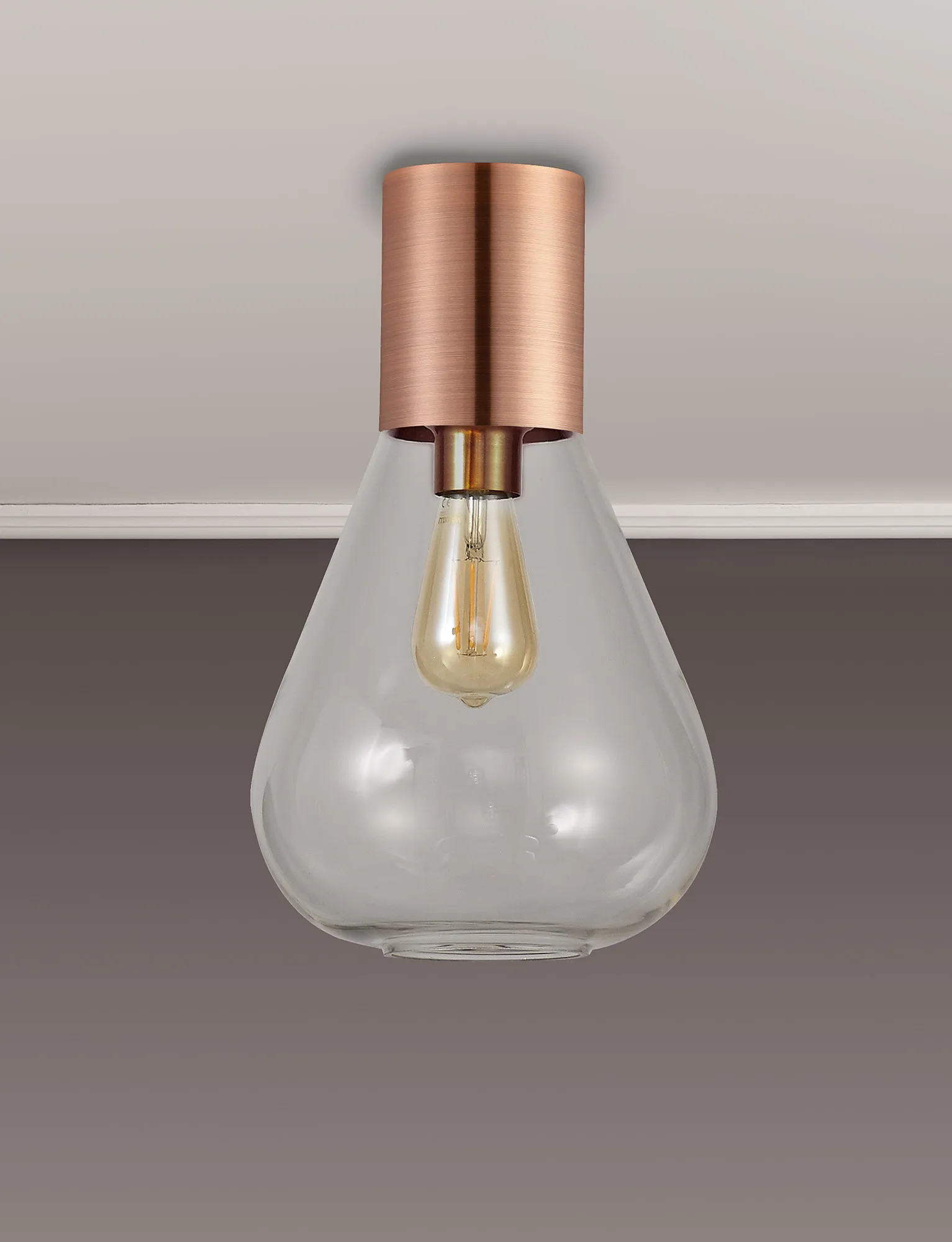 Clyde Ceiling Light With Wide Glass, 1 x E27, Antique Copper/Clear