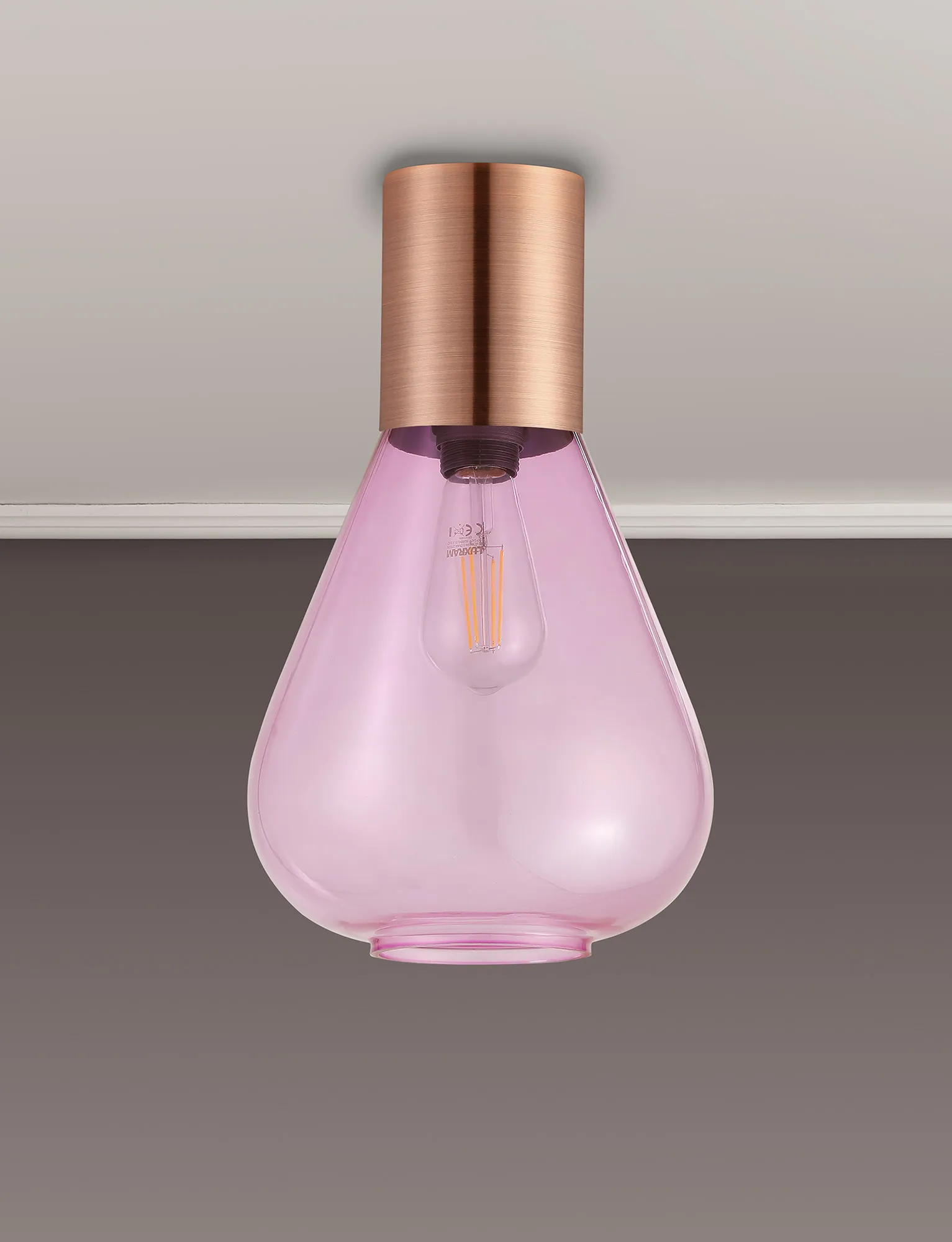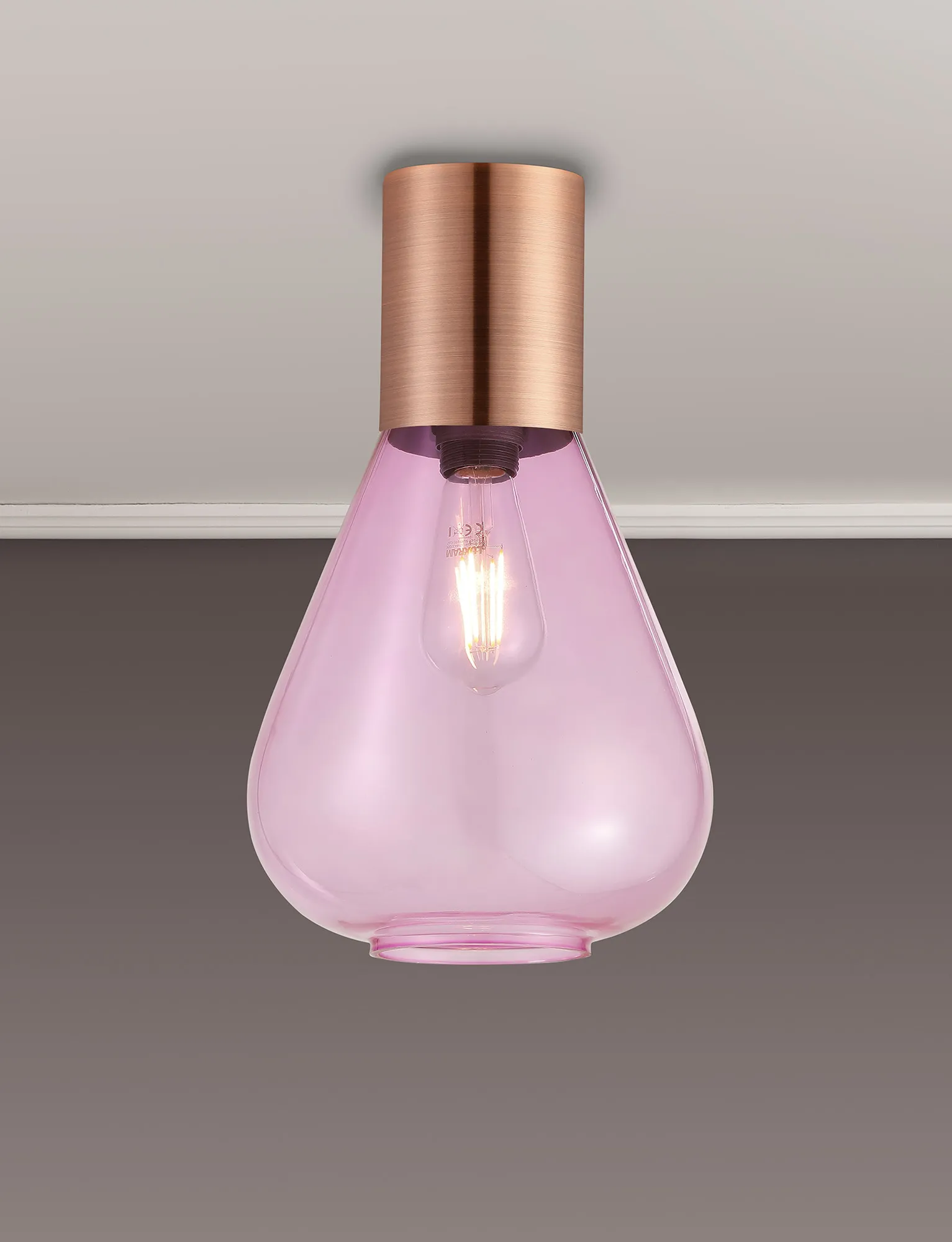 Clyde Ceiling Light With Wide Glass, 1 x E27, Antique Copper/Lilac