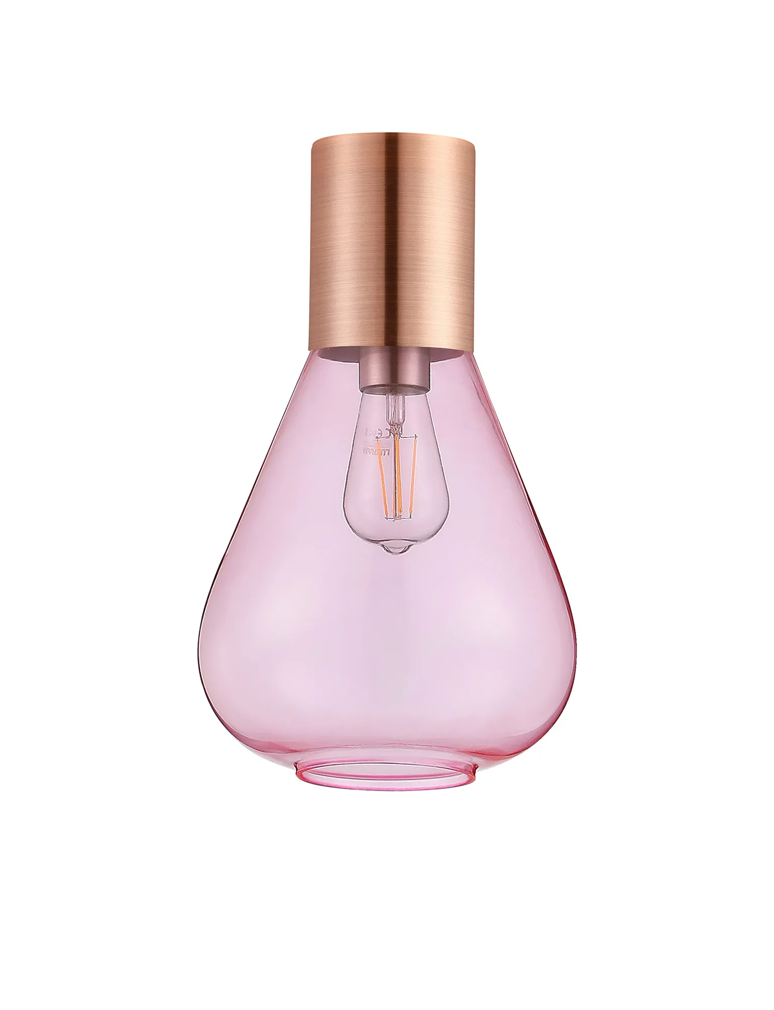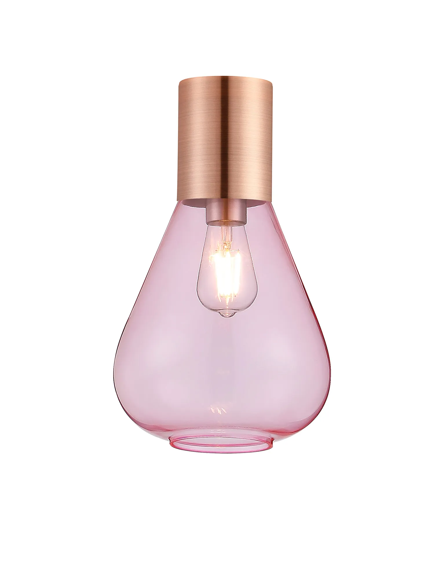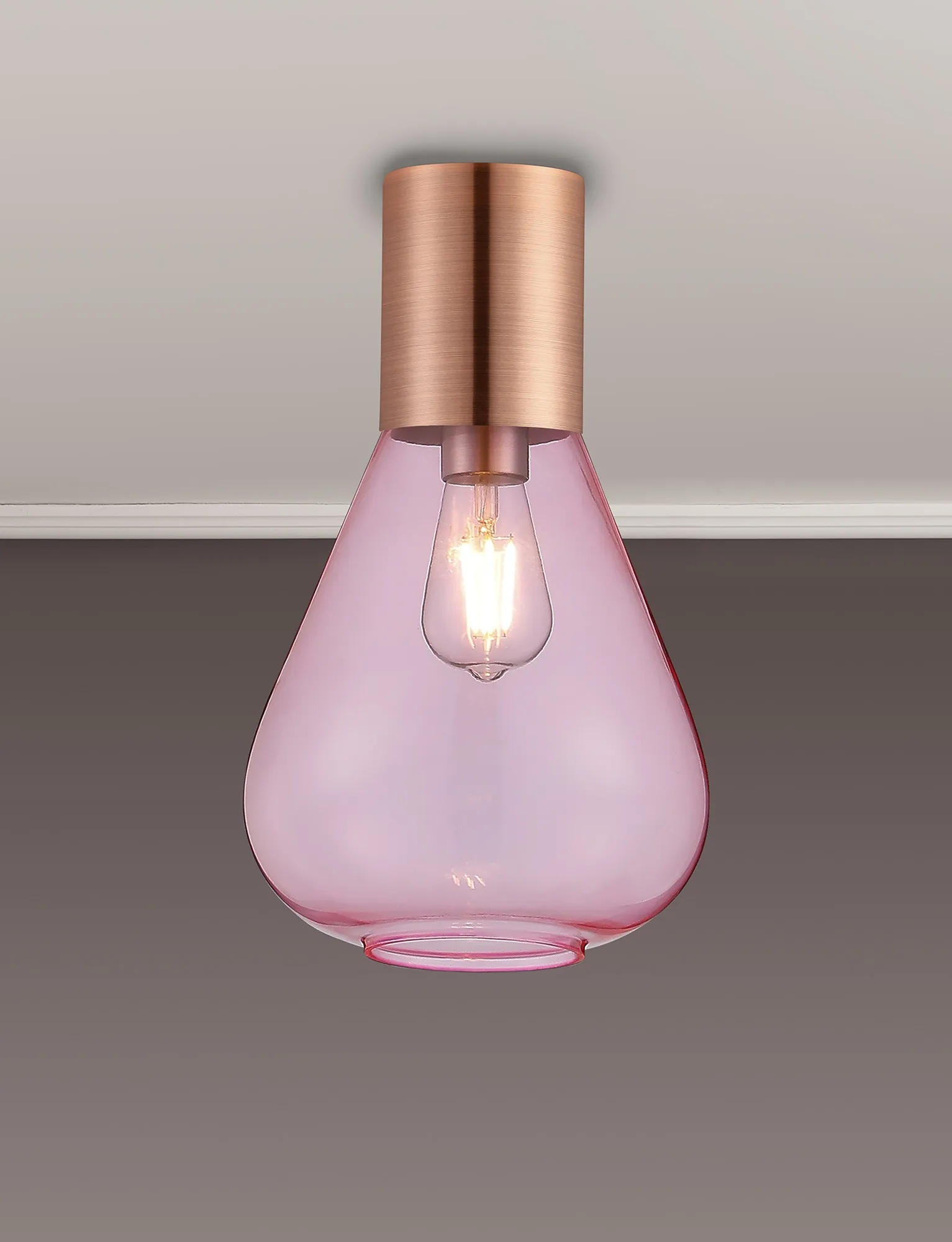 Clyde Ceiling Light With Wide Glass, 1 x E27, Antique Copper/Pink