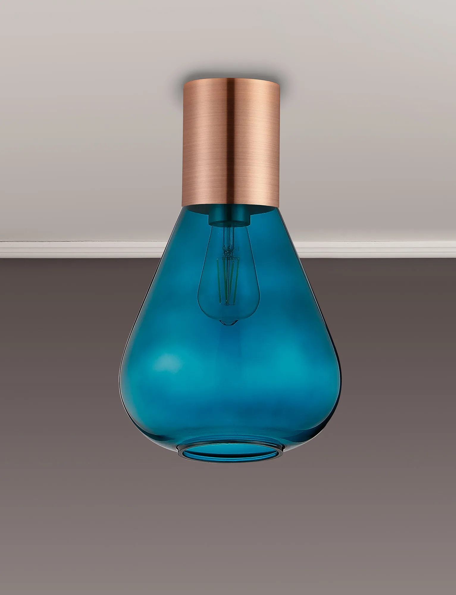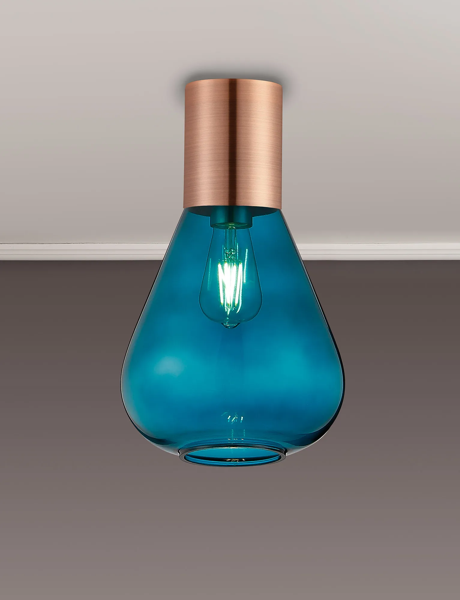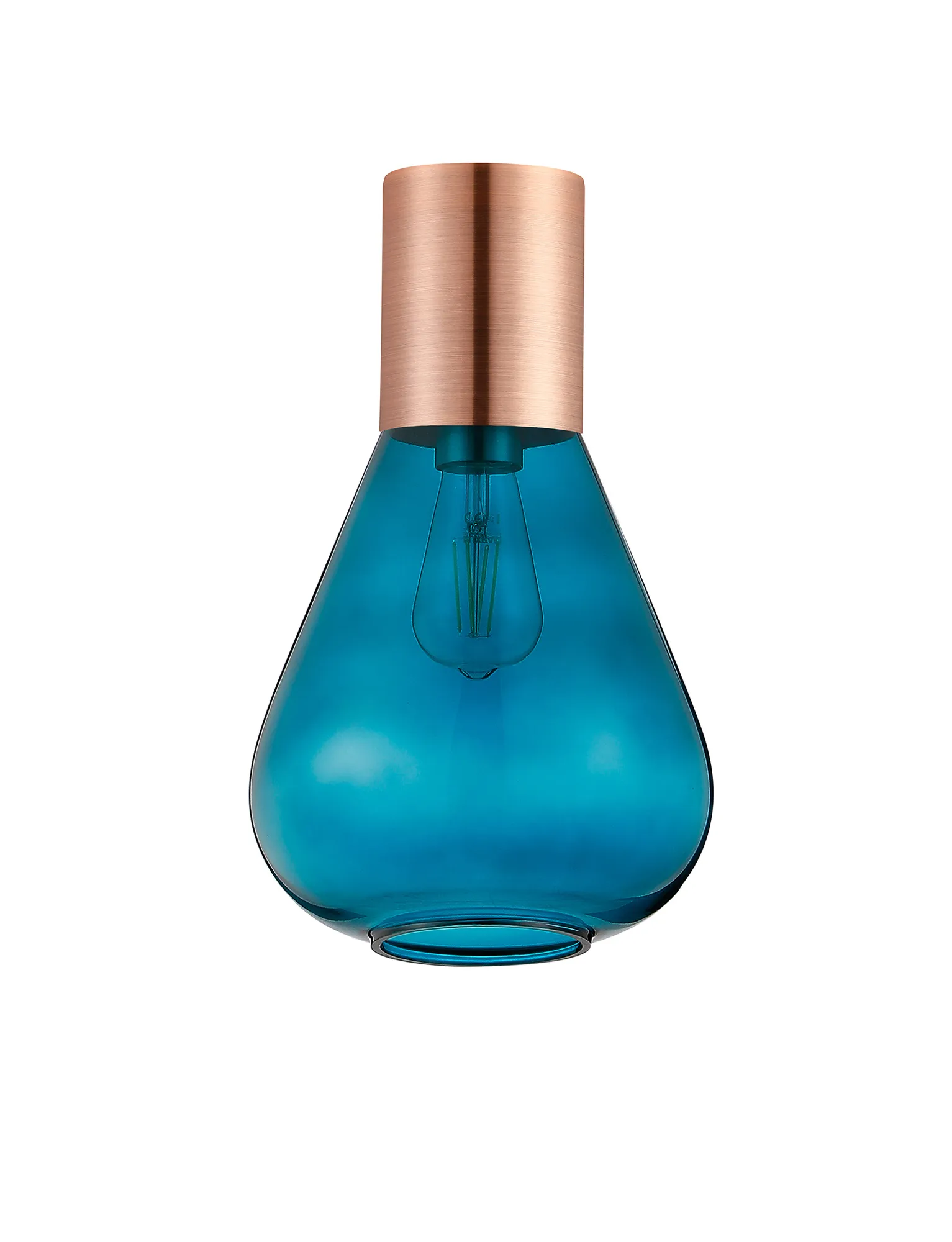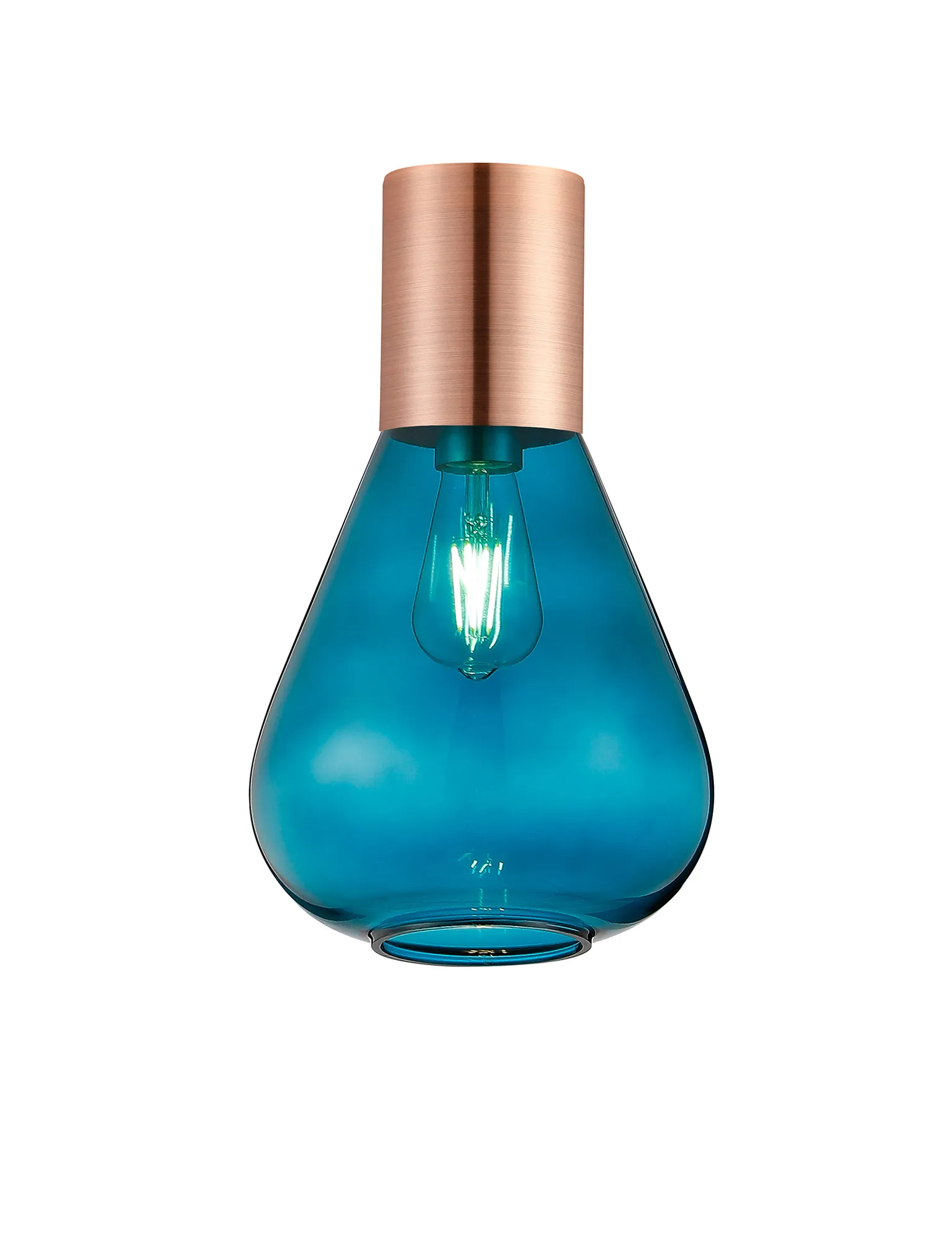 Clyde Ceiling Light With Wide Glass, 1 x E27, Antique Copper/Teal Blue
