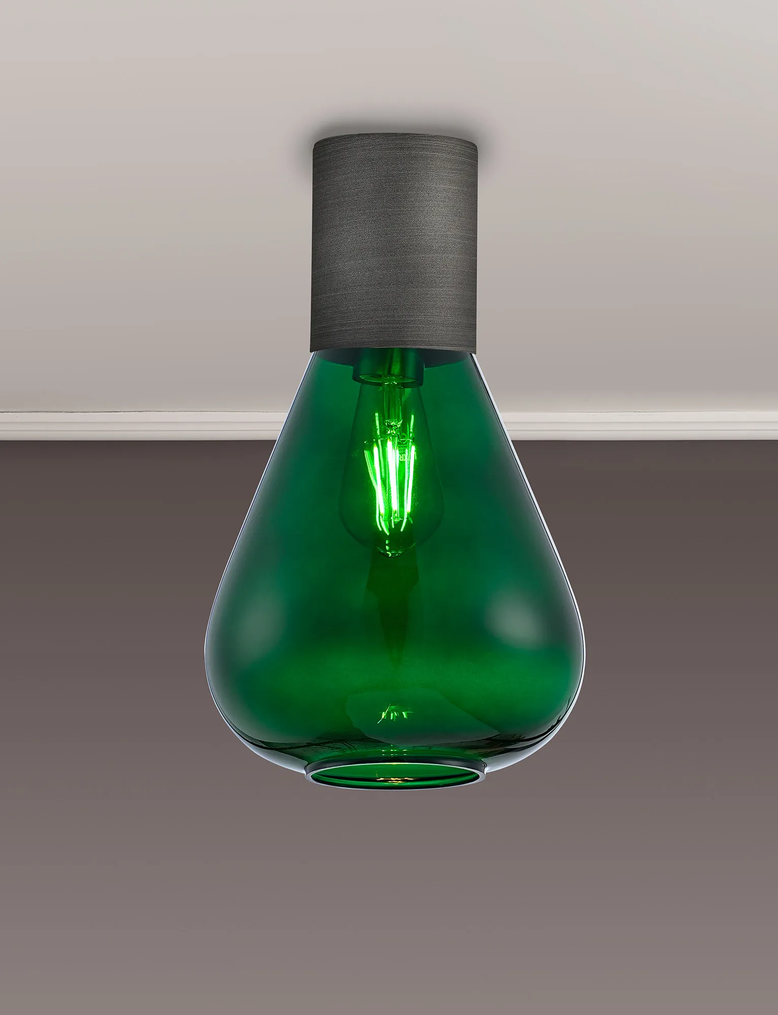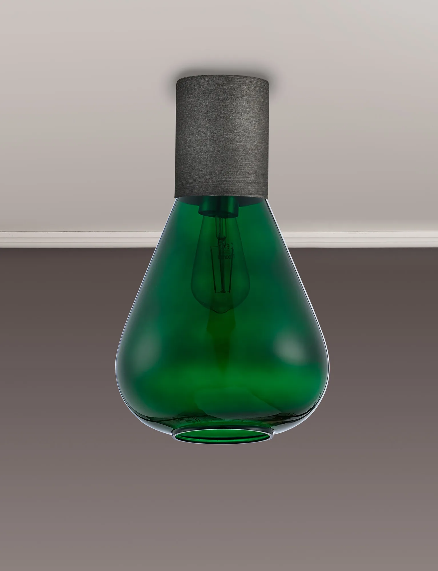 Clyde Ceiling Light With Wide Glass, 1 x E27, Pewter/Bottle Green