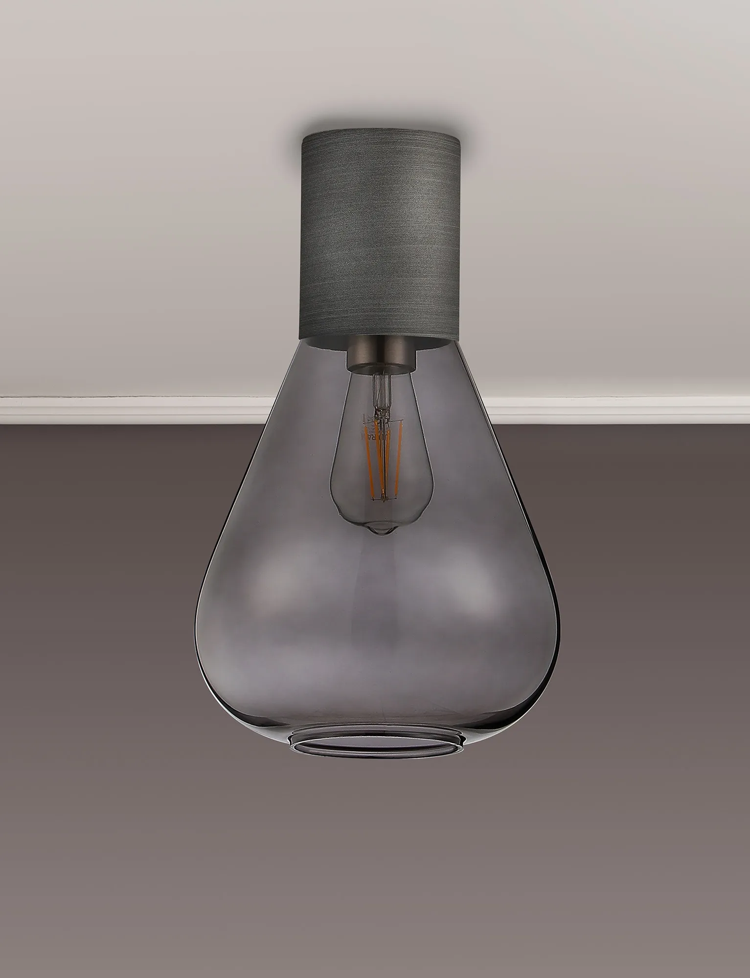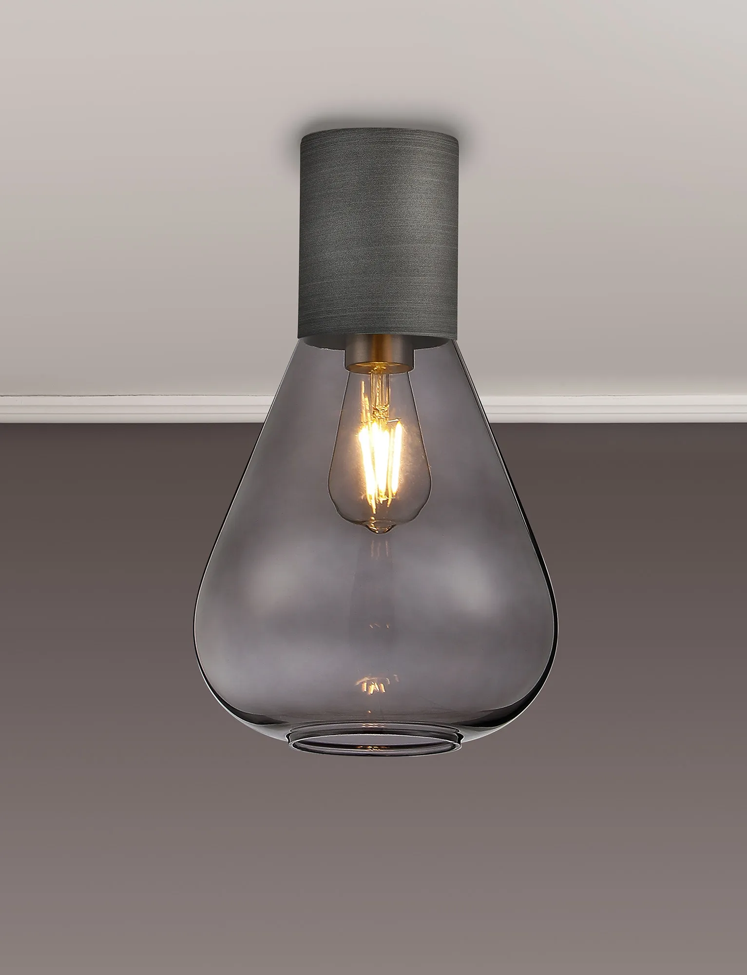 Clyde Ceiling Light With Wide Glass, 1 x E27, Pewter/Inky Black