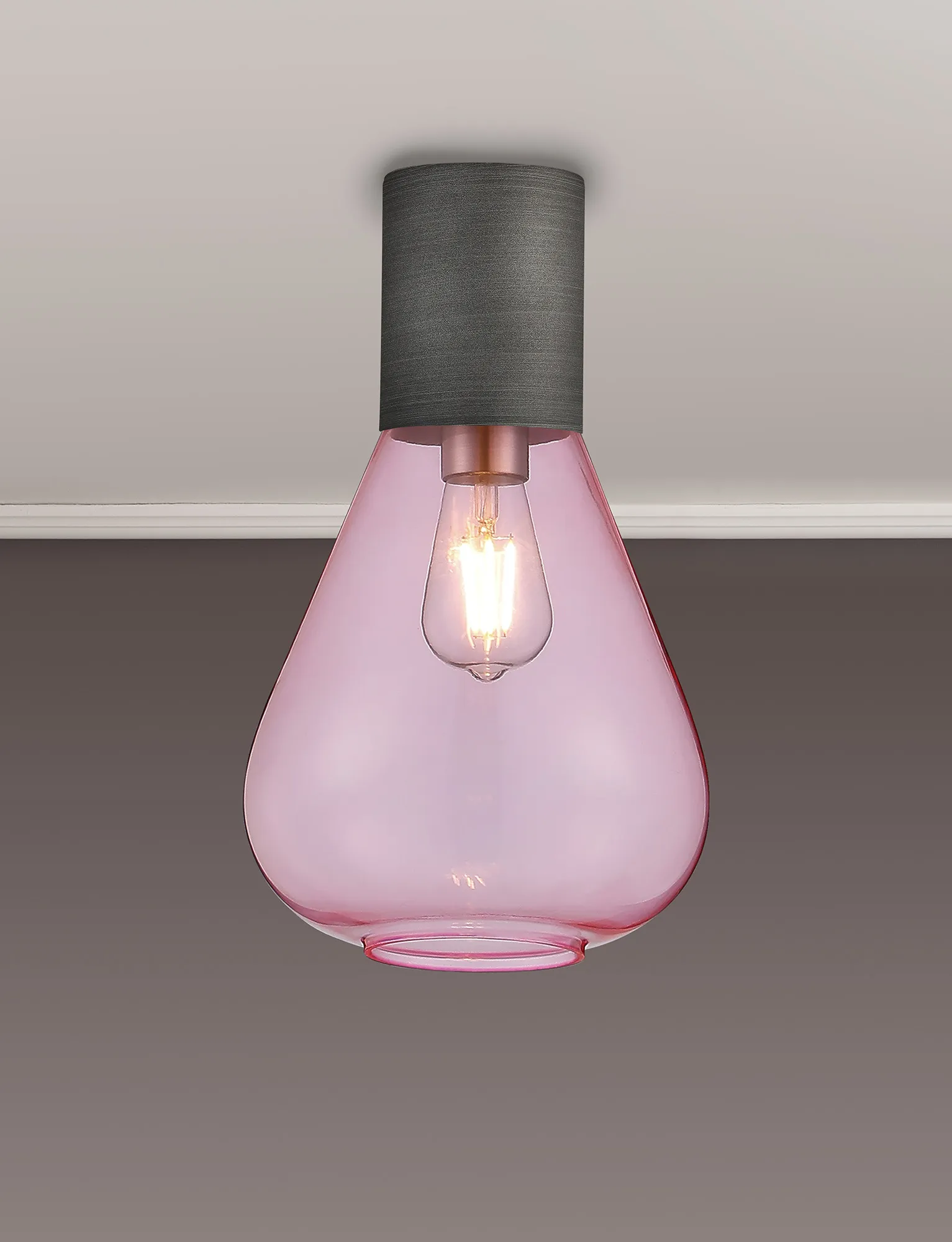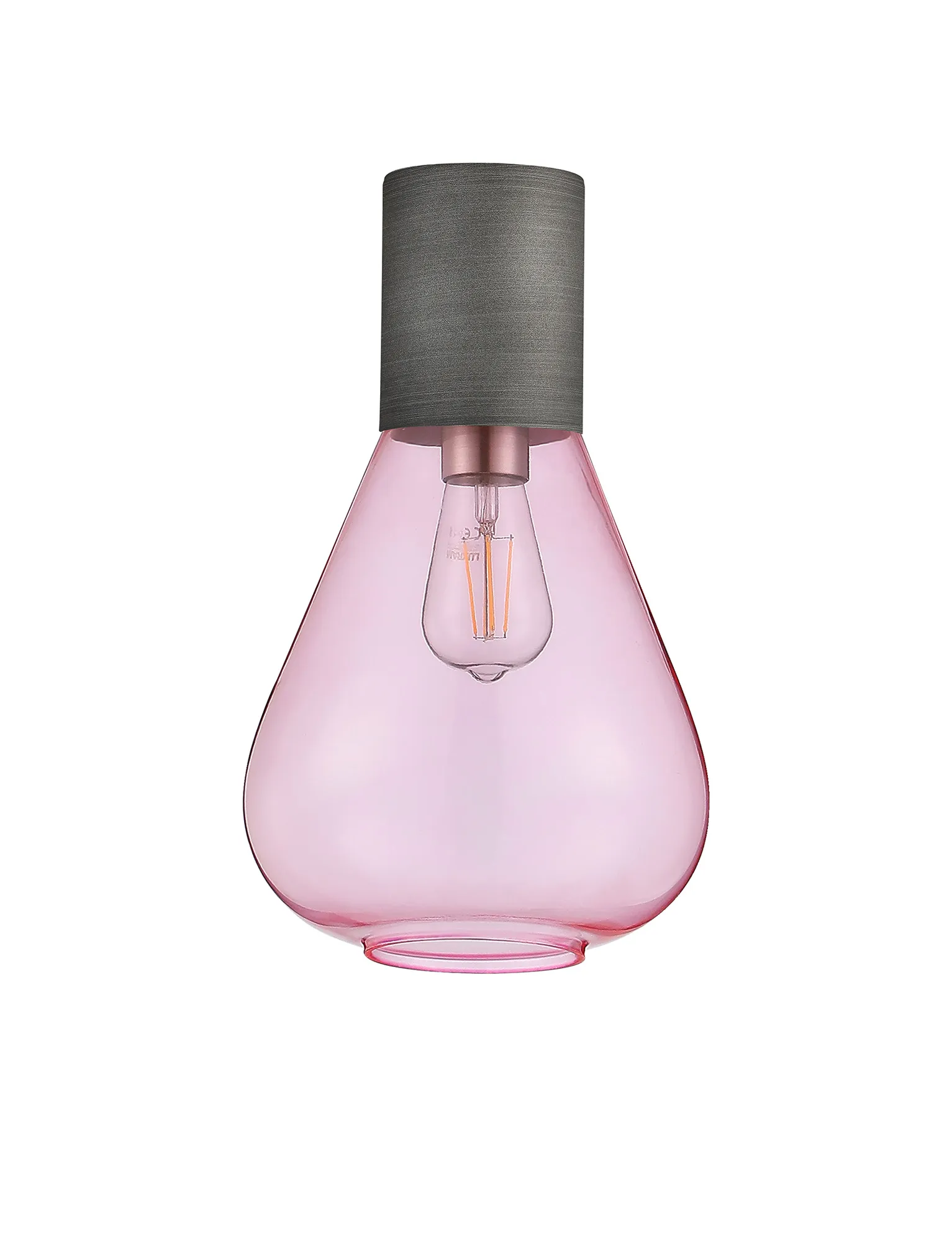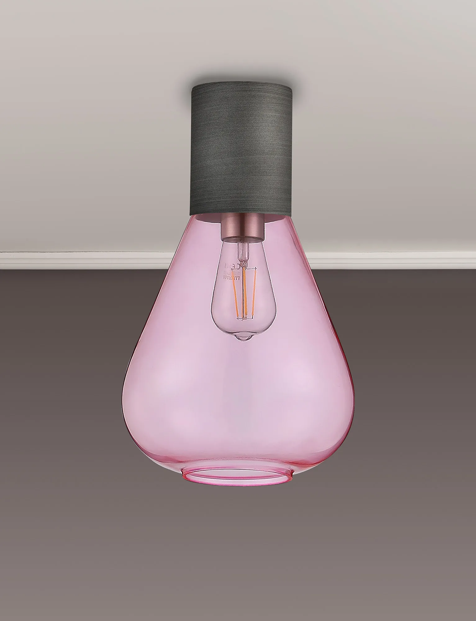Clyde Ceiling Light With Wide Glass, 1 x E27, Pewter/Pink