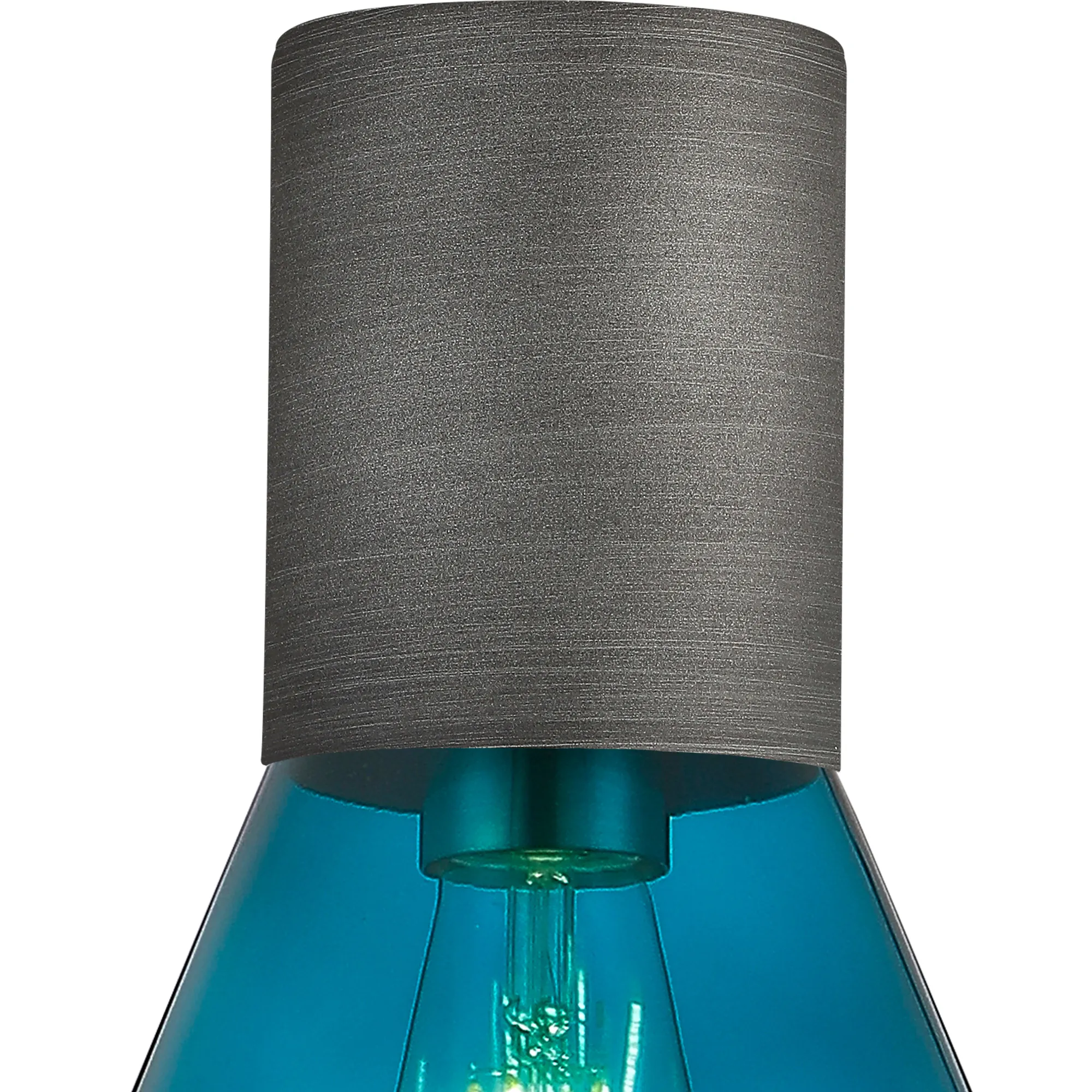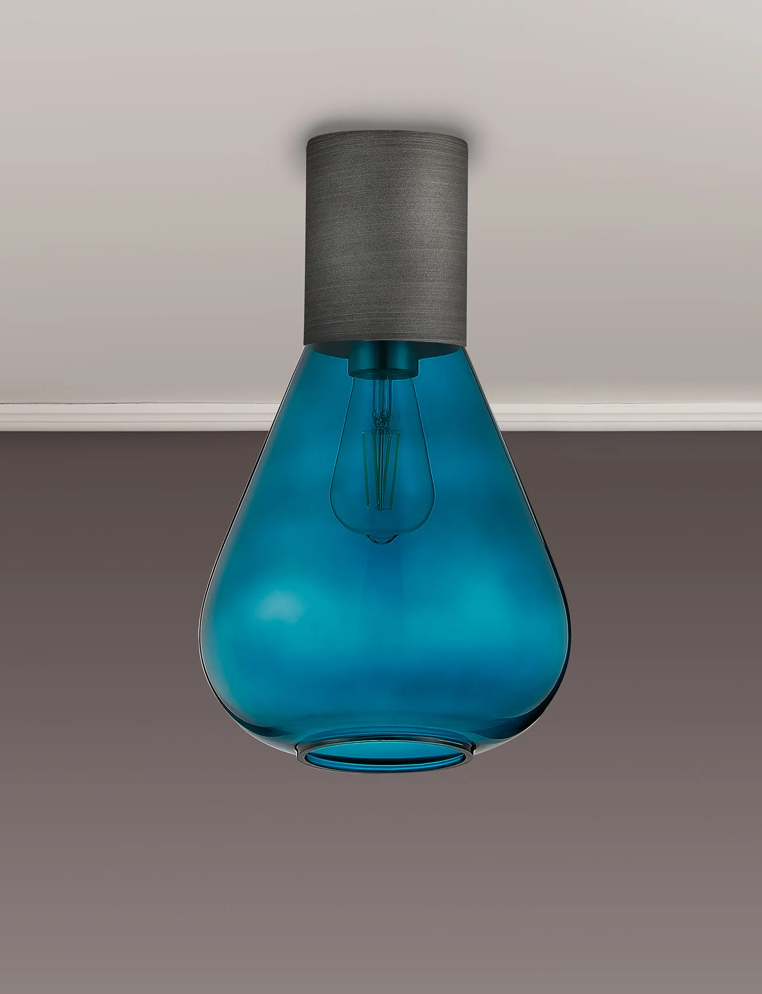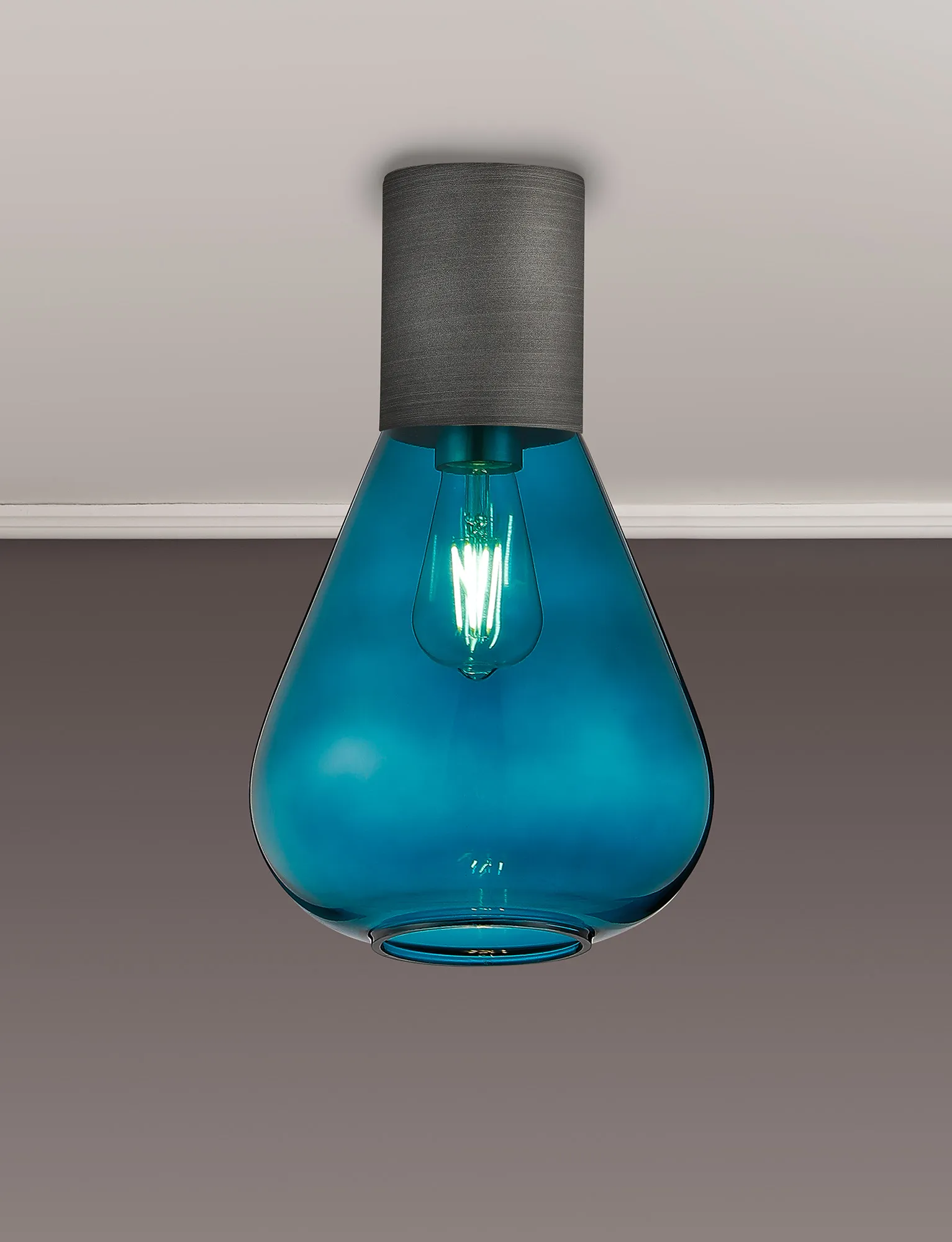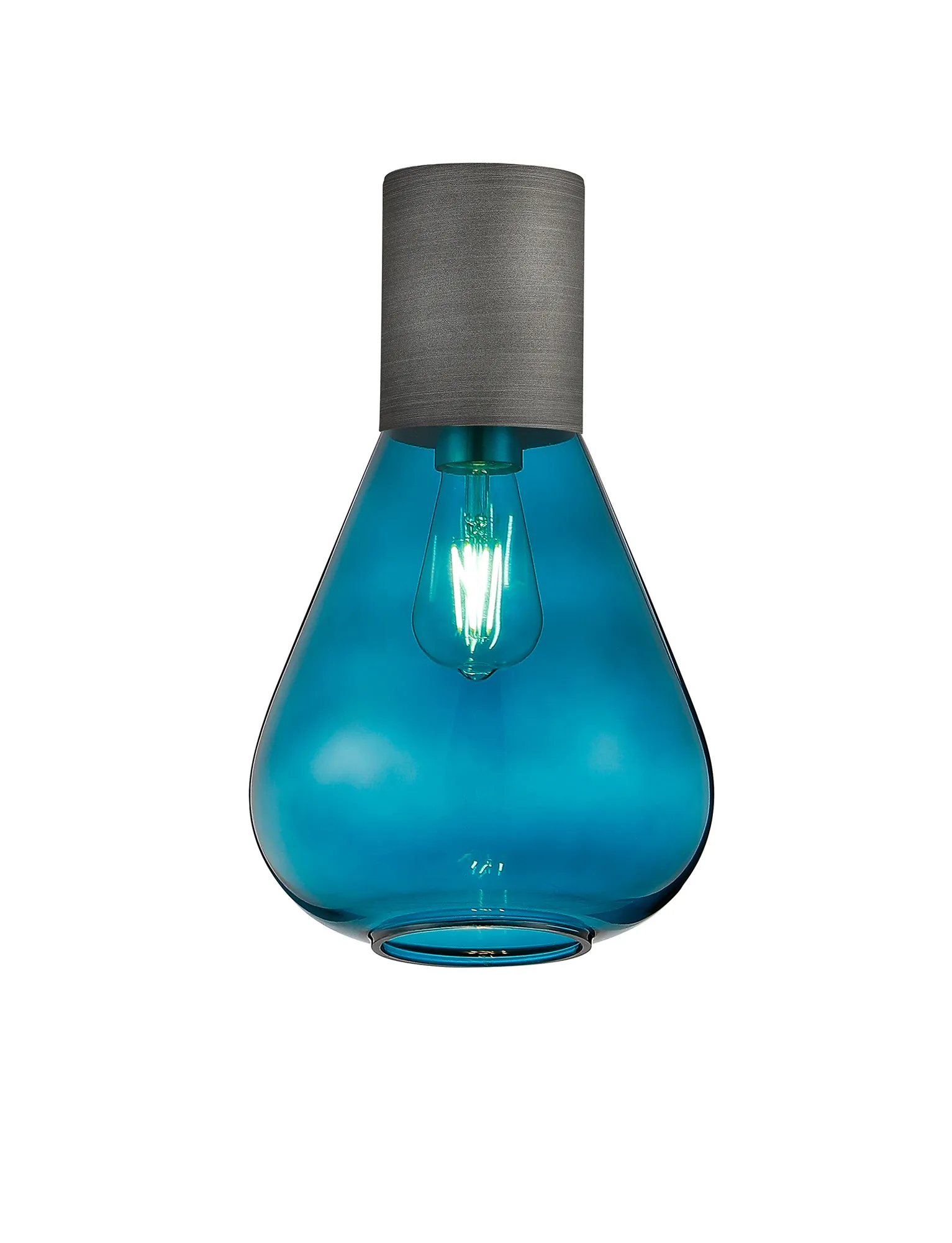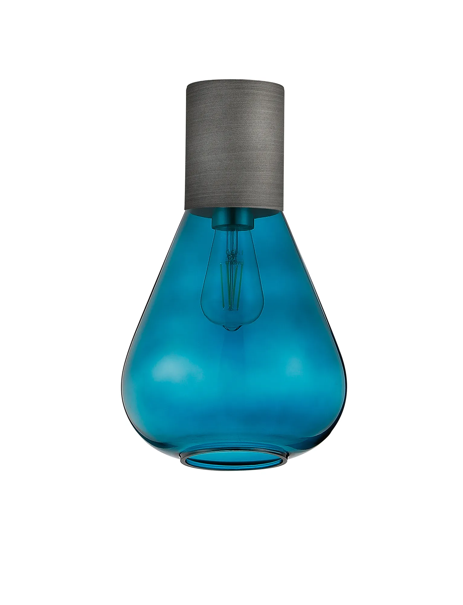 Clyde Ceiling Light With Wide Glass, 1 x E27, Pewter/Teal Blue