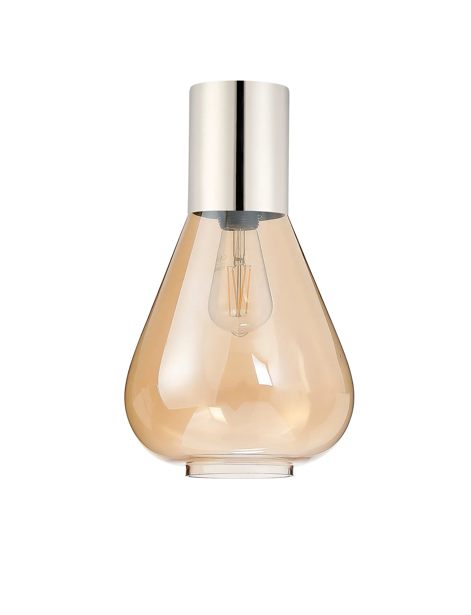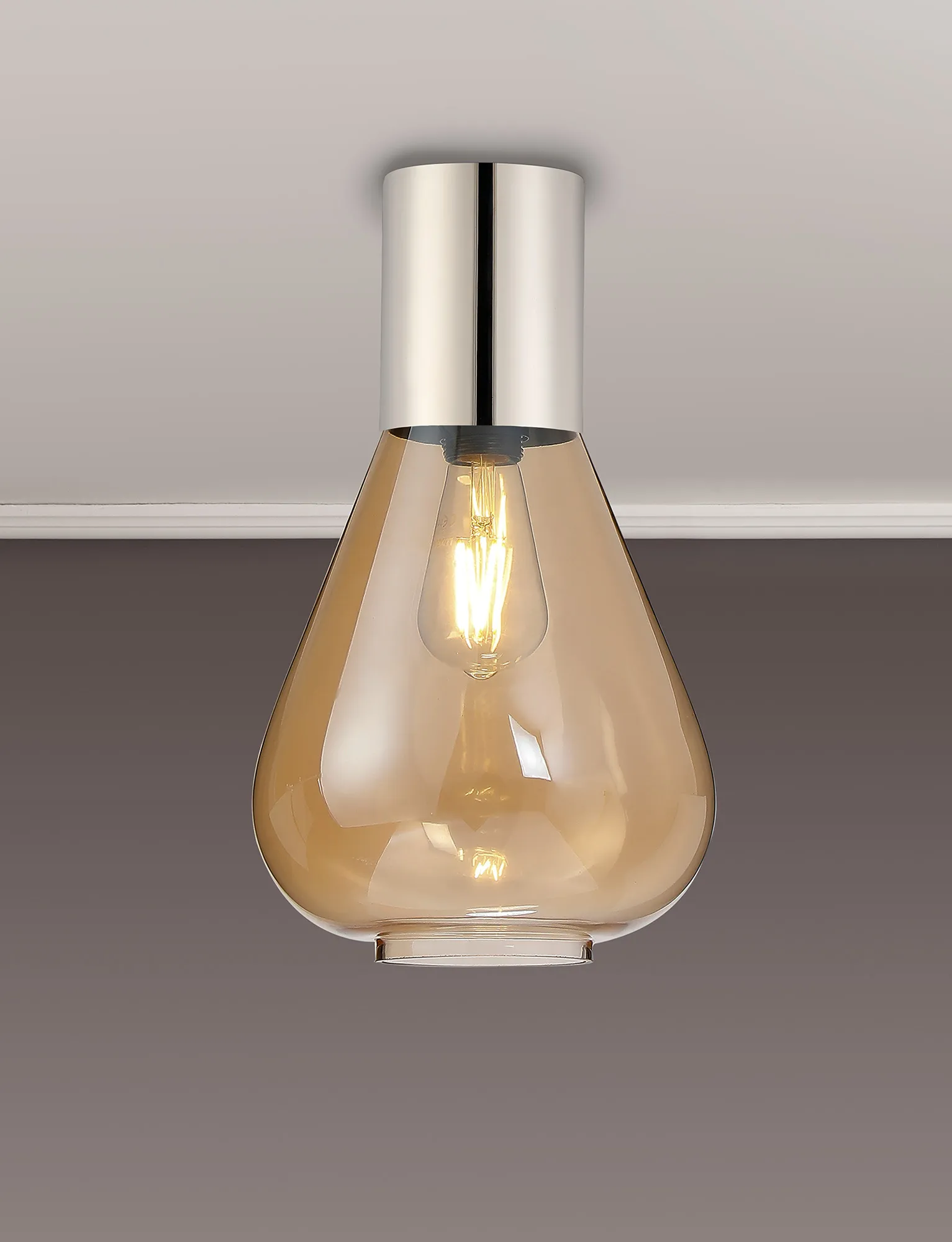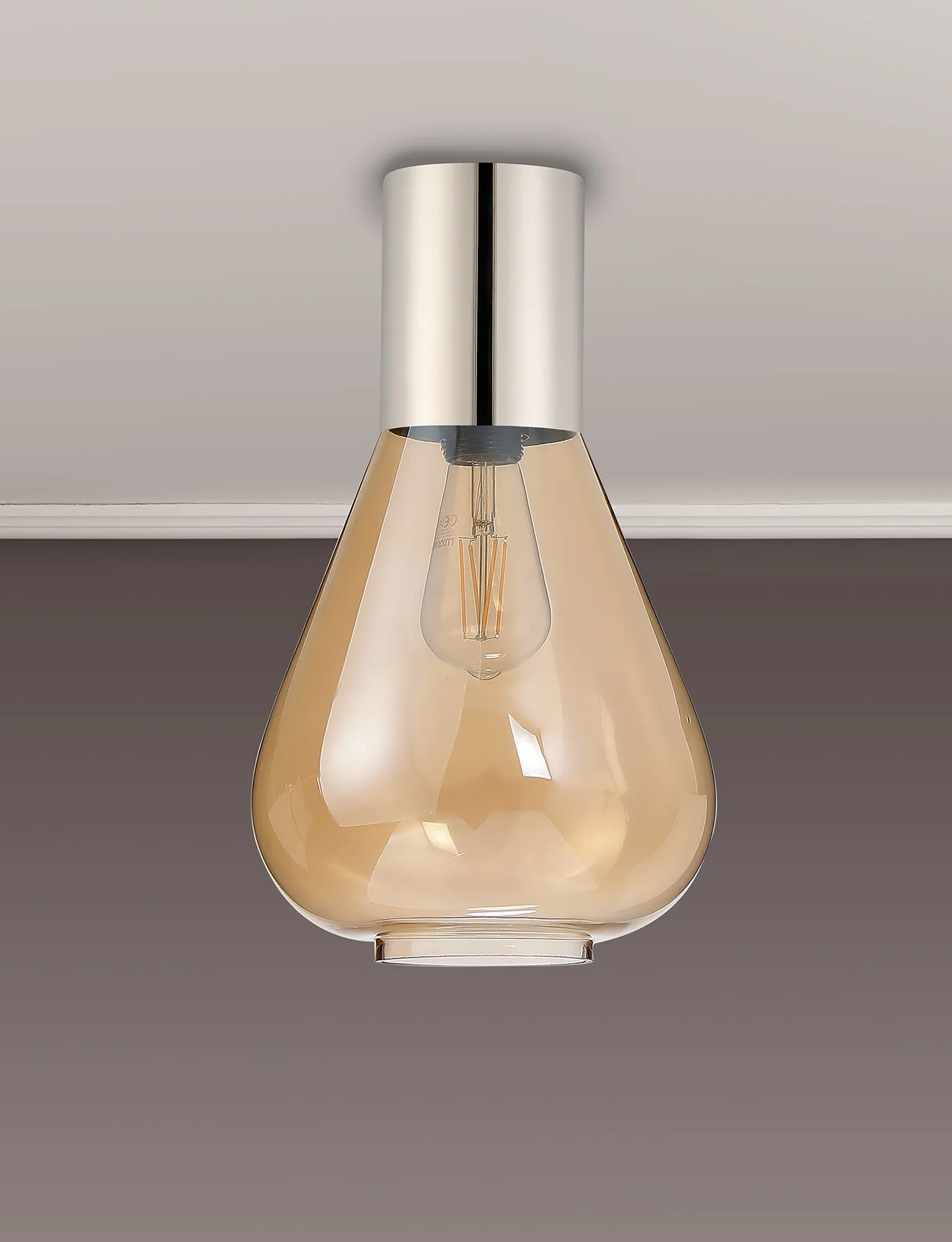 OTHER Clyde Ceiling Light With Narrow Glass, 1 x E27, Polished Nickel/Amber