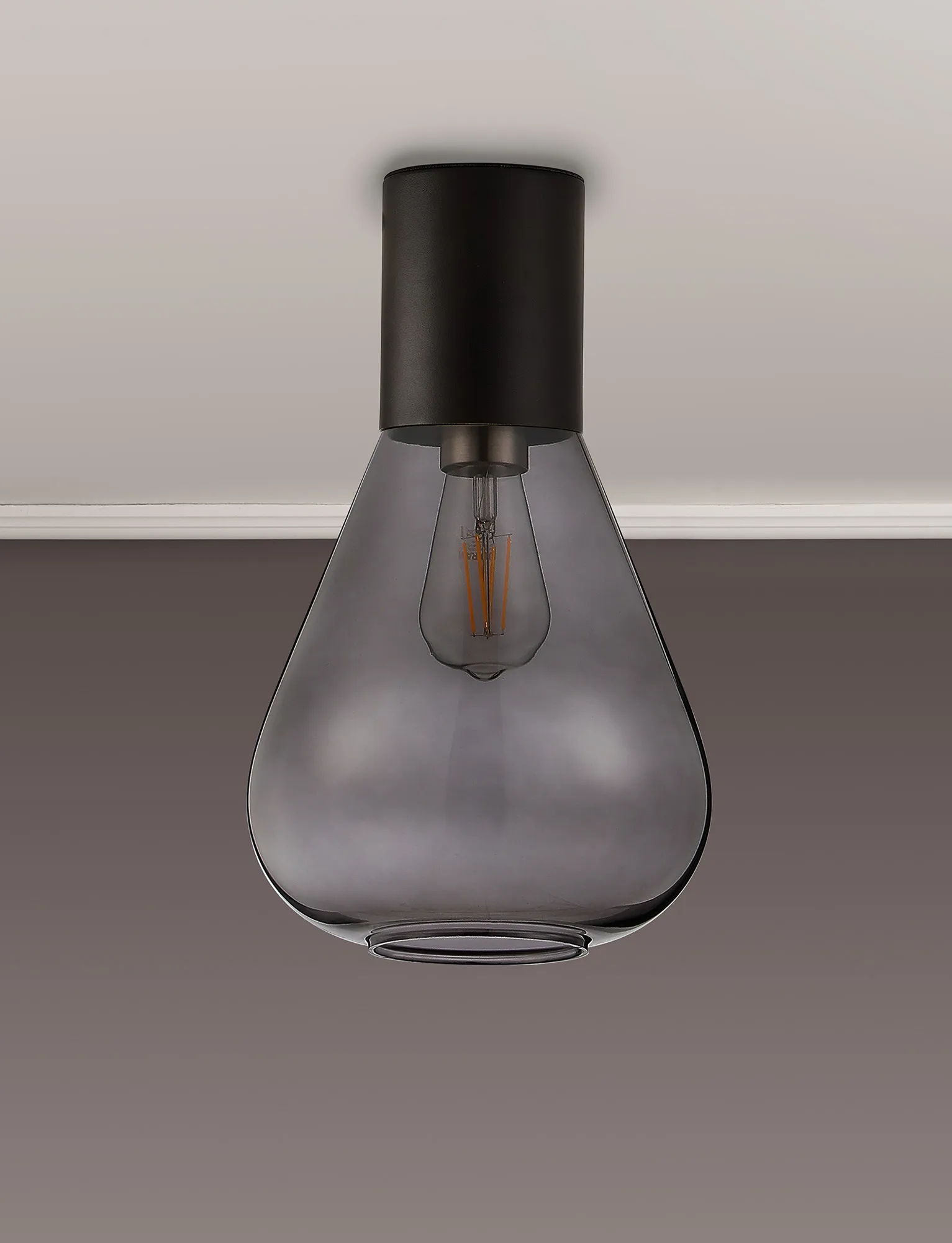 Clyde Ceiling Light With Wide Glass, 1 x E27, Satin Black/Inky Black