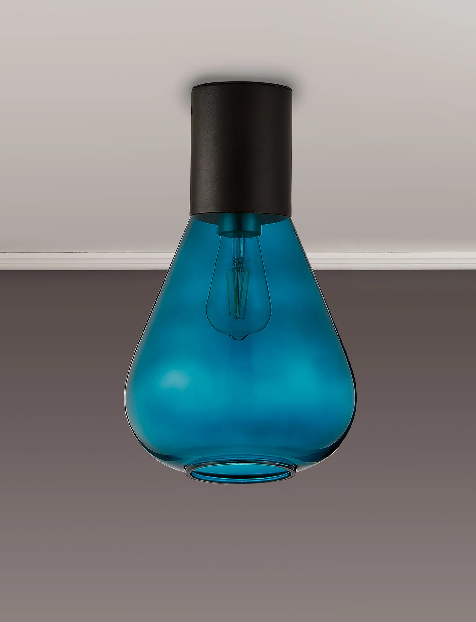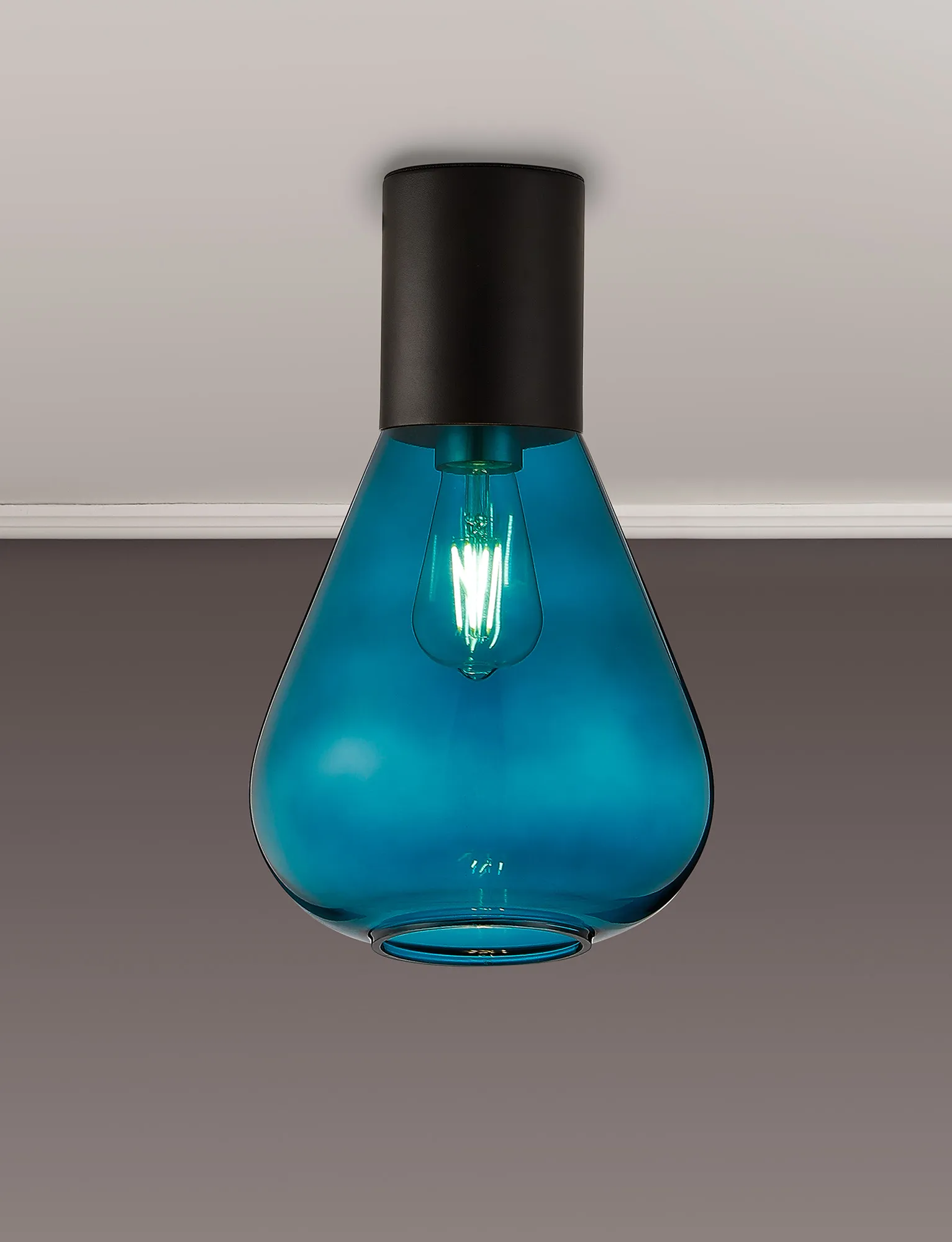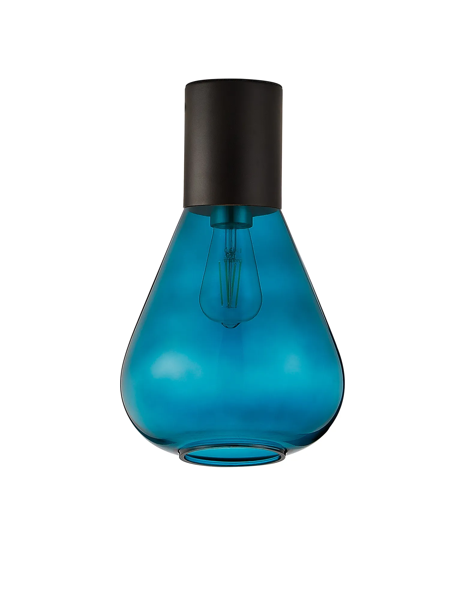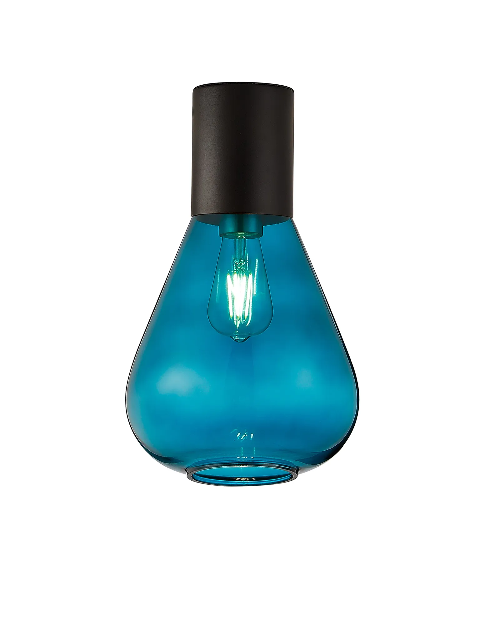 Clyde Ceiling Light With Wide Glass, 1 x E27, Satin Black/Teal Blue