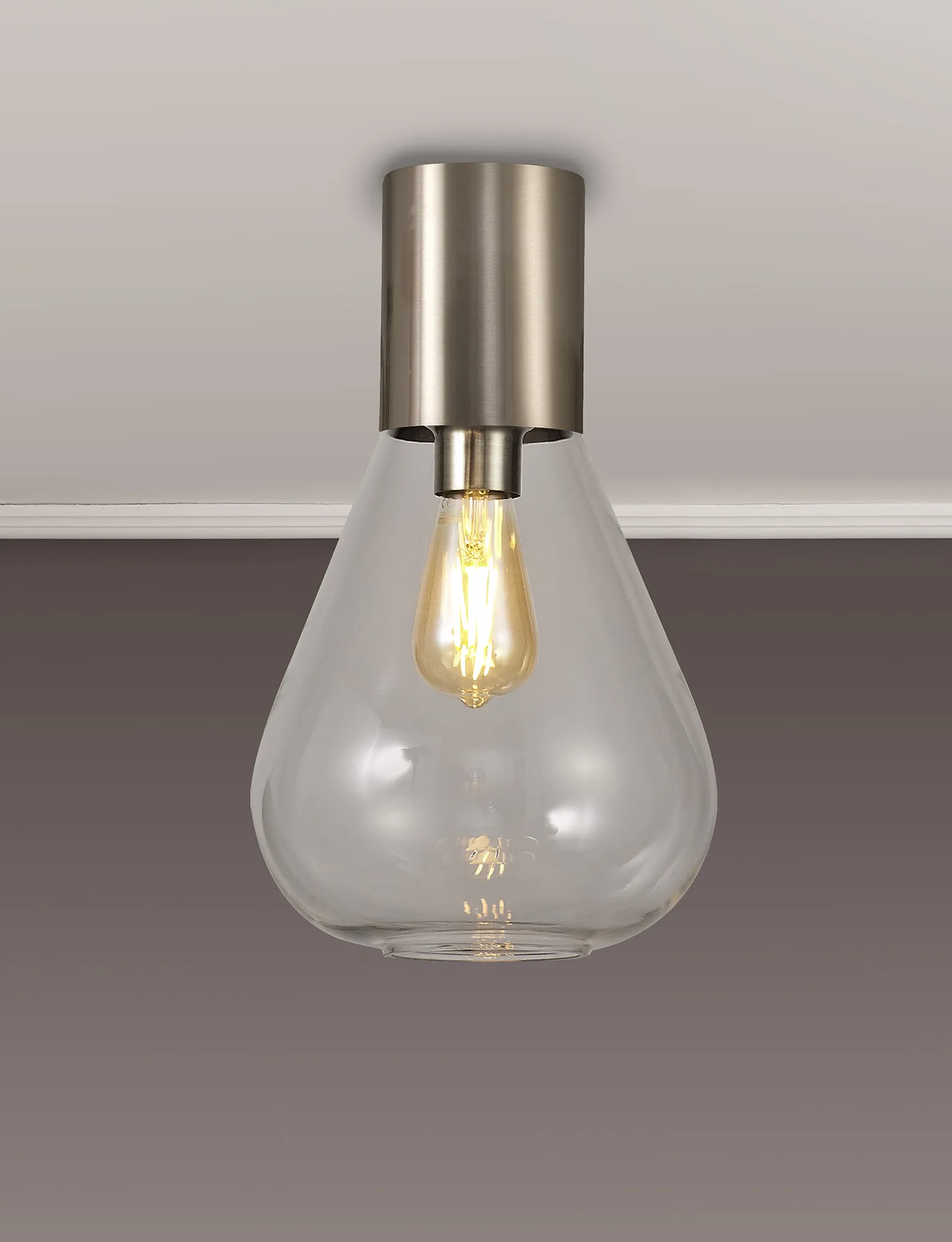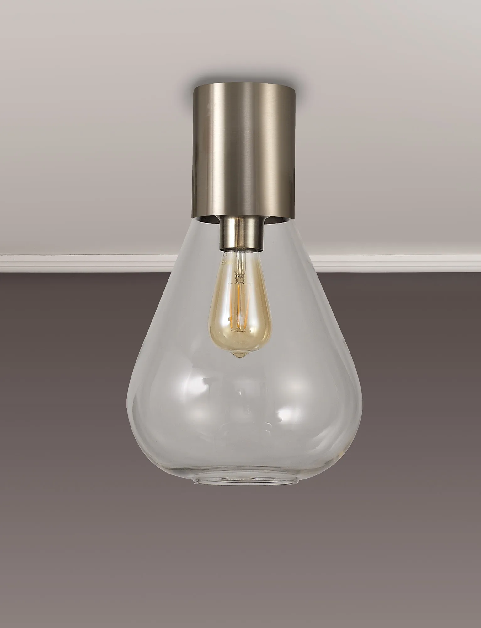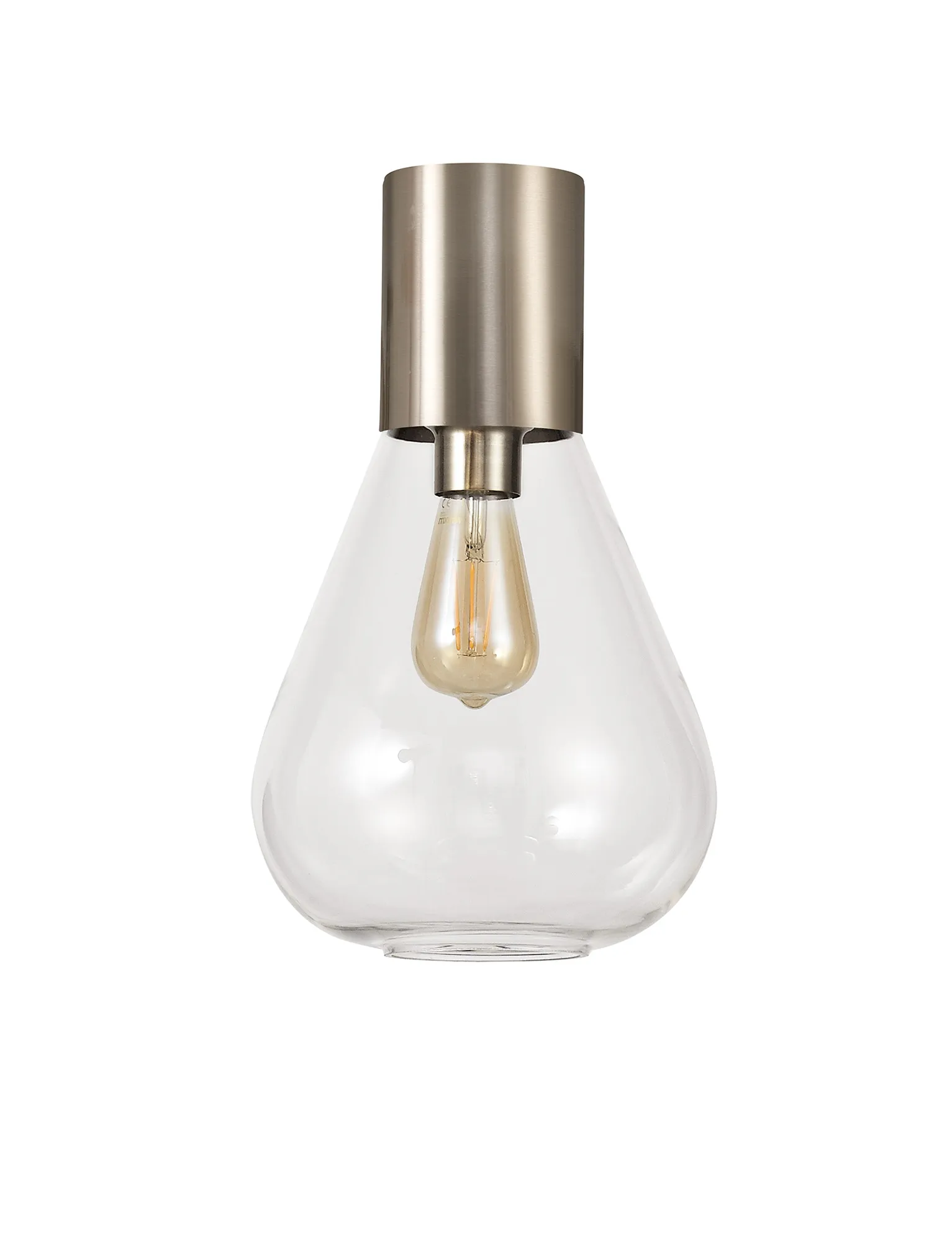 Clyde Ceiling Light With Wide Glass, 1 x E27, Satin Nickel/Clear