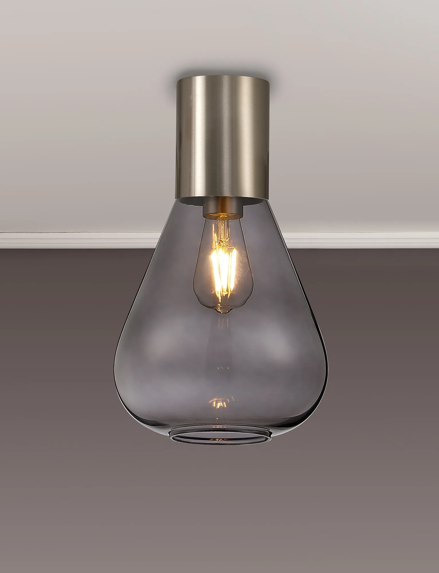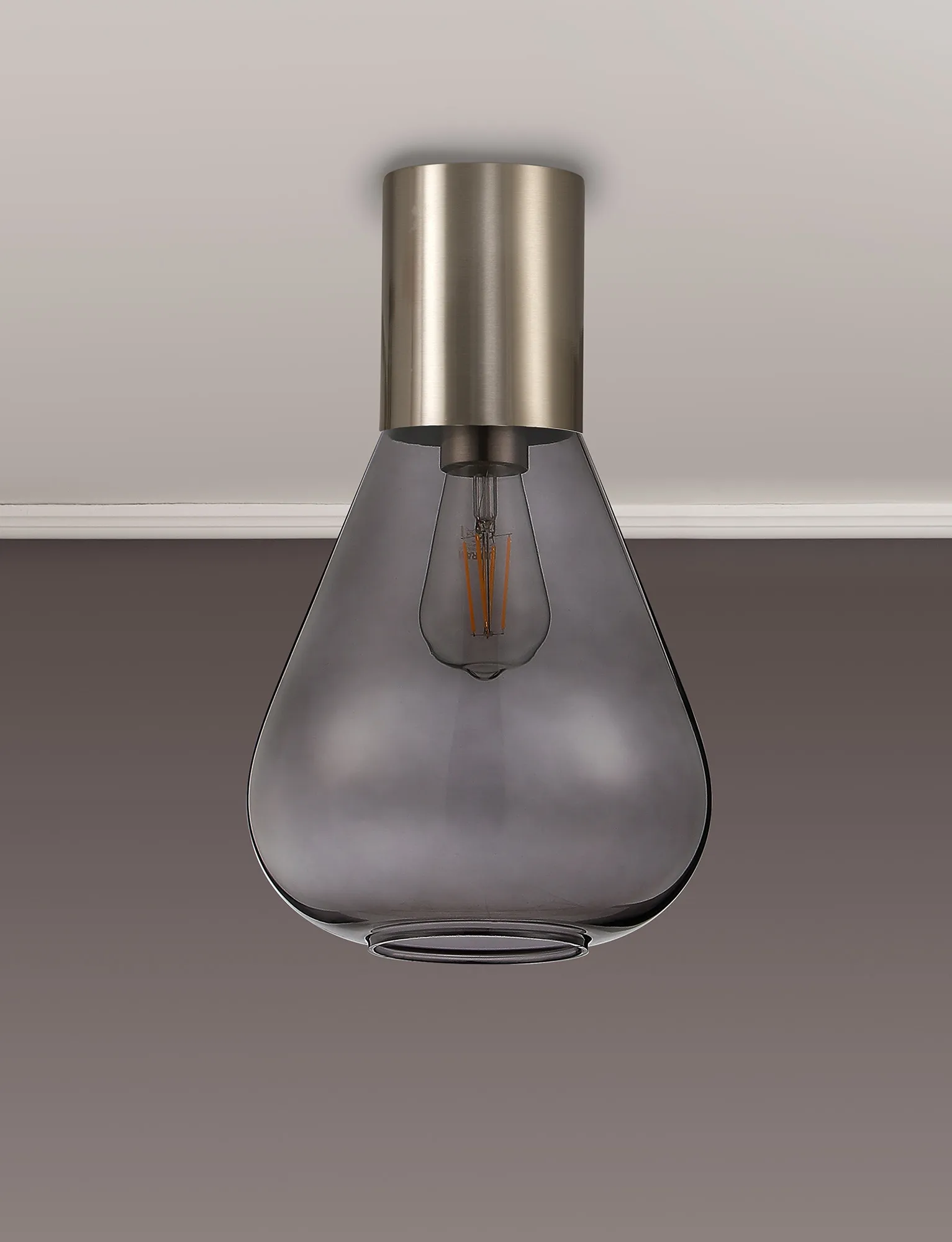 Clyde Ceiling Light With Wide Glass, 1 x E27, Satin Nickel/Inky Black