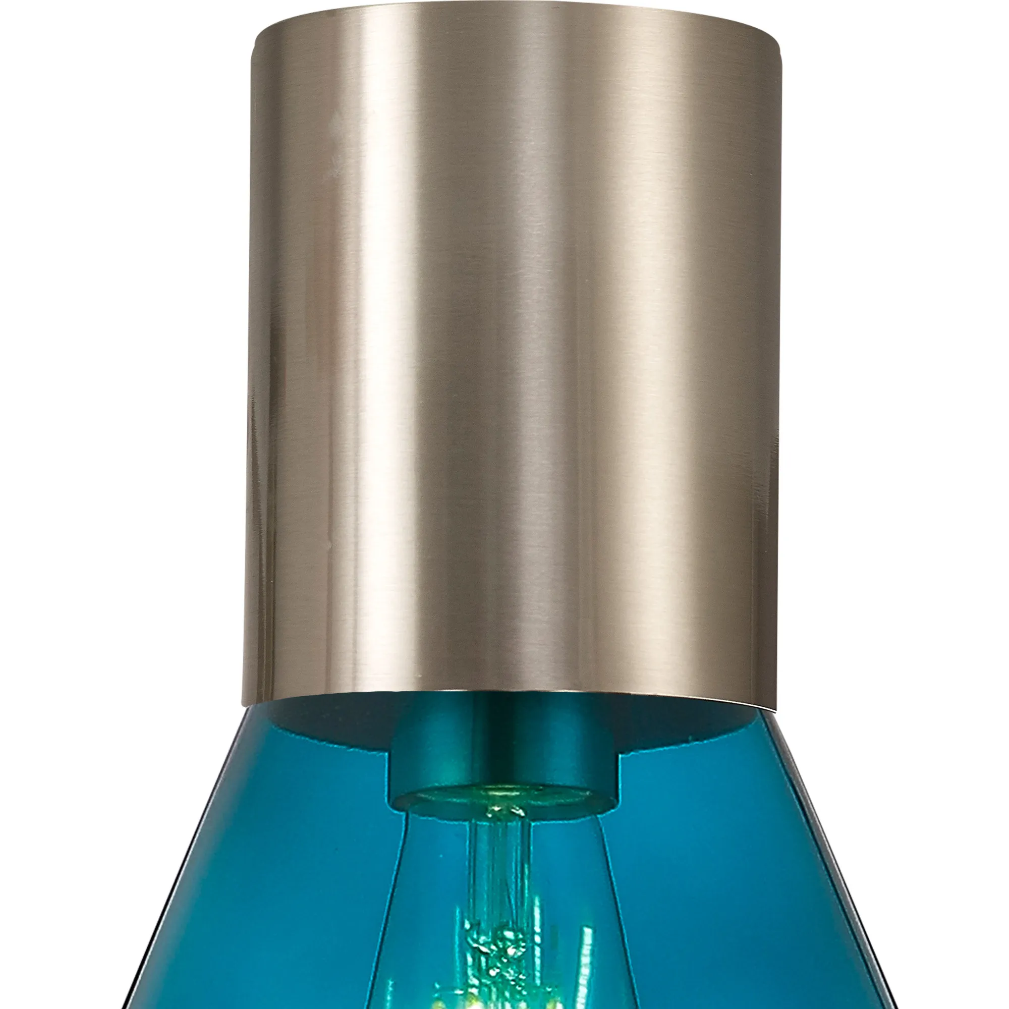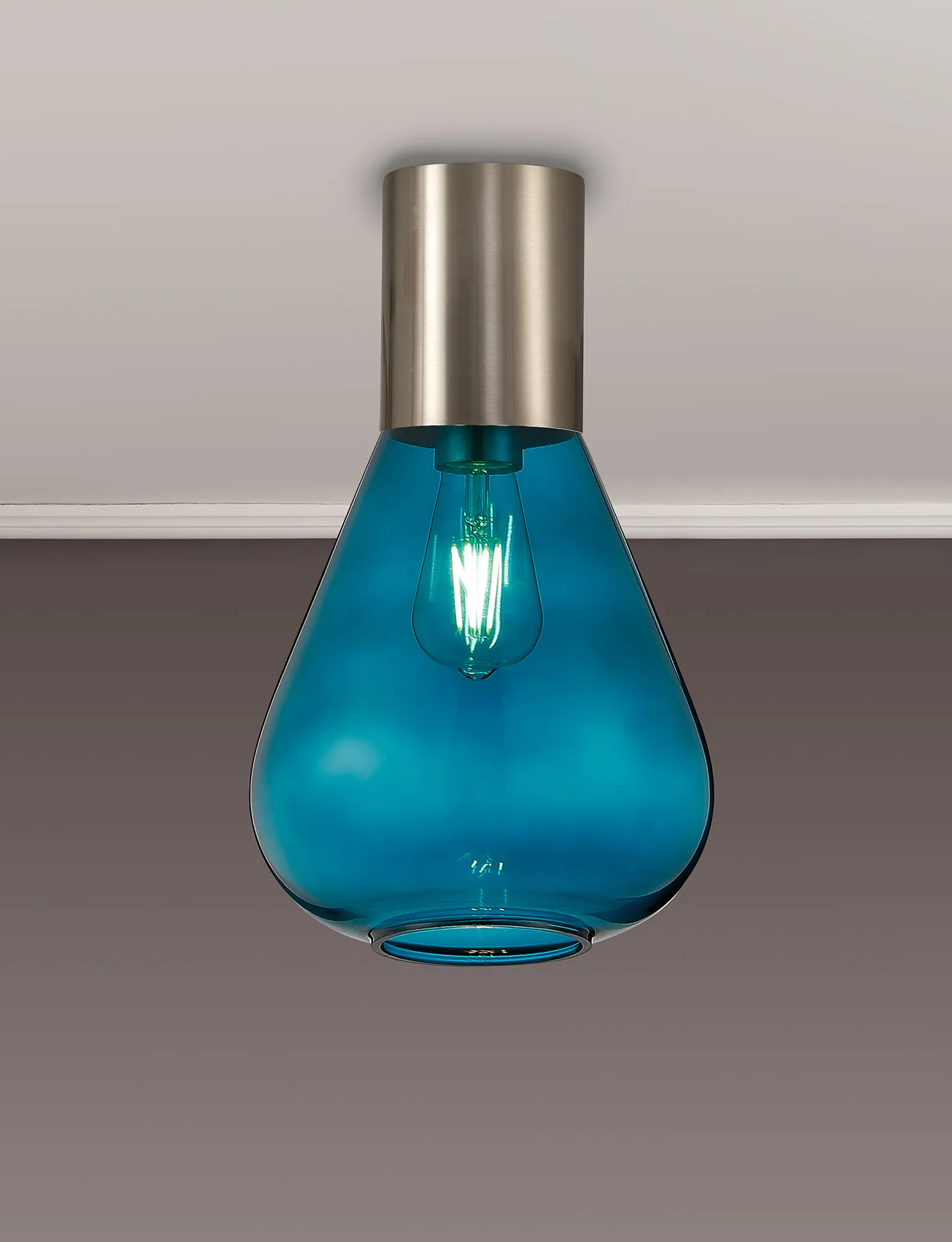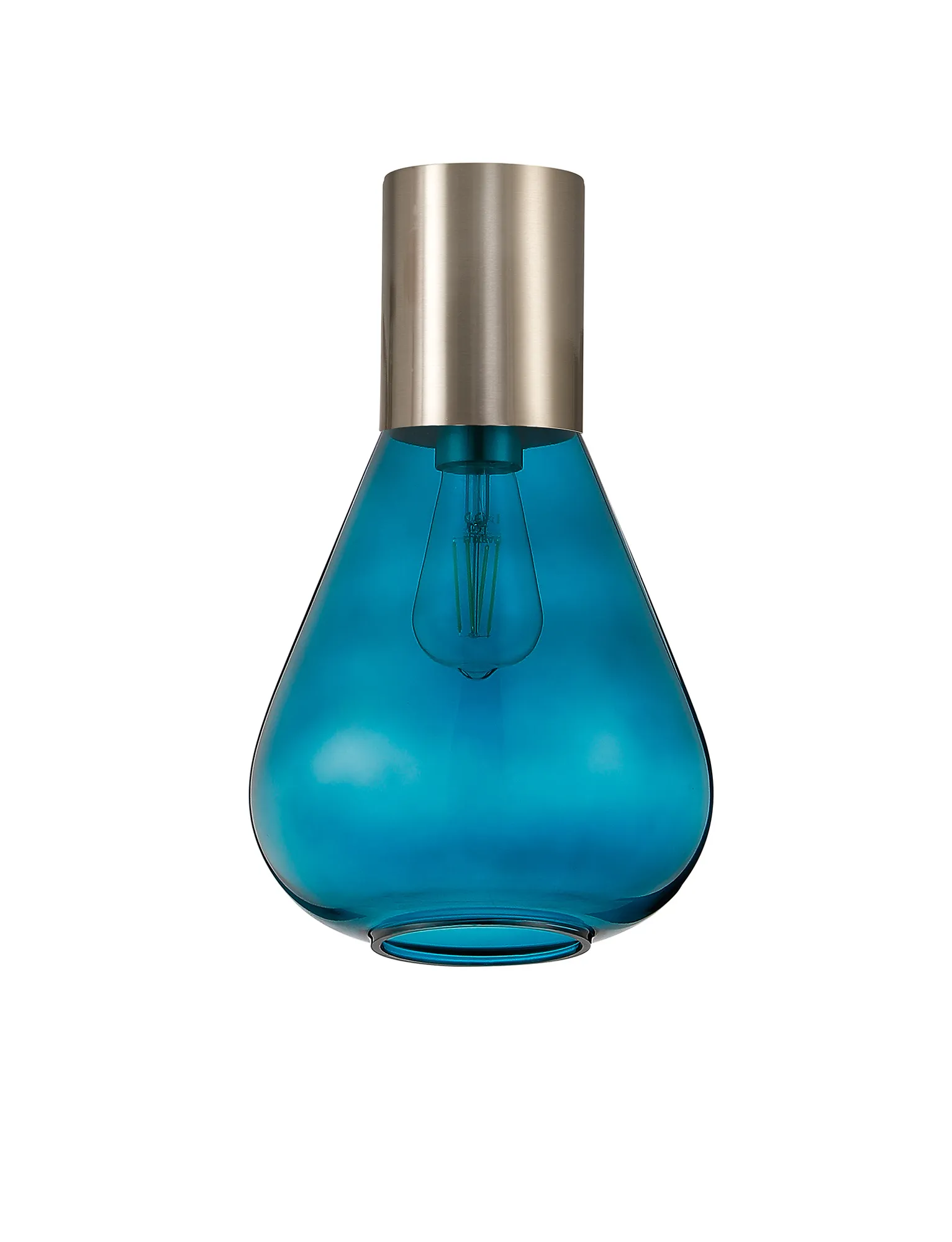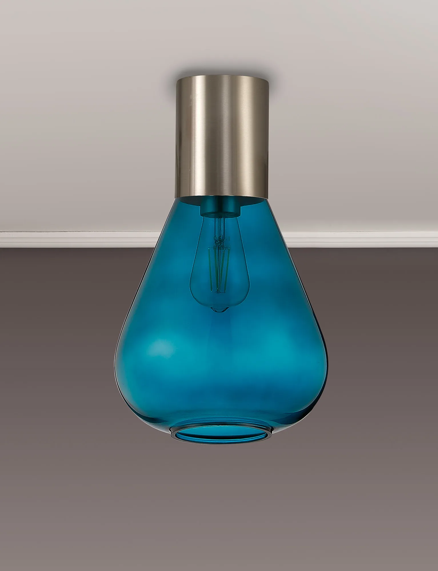 Clyde Ceiling Light With Wide Glass, 1 x E27, Satin Nickel/Teal Blue