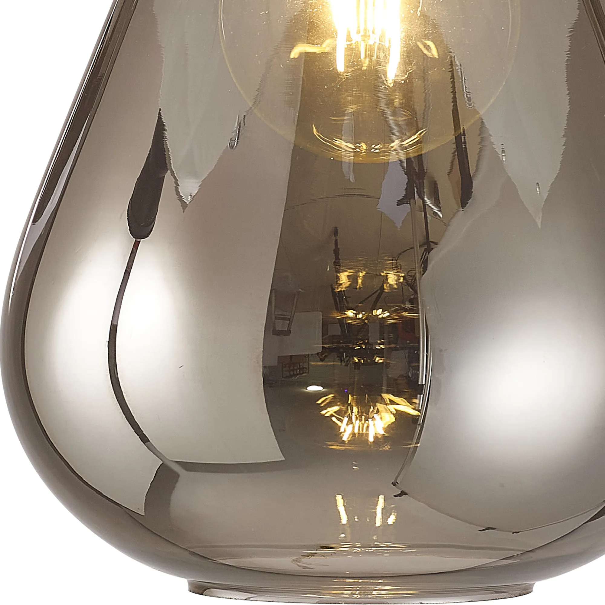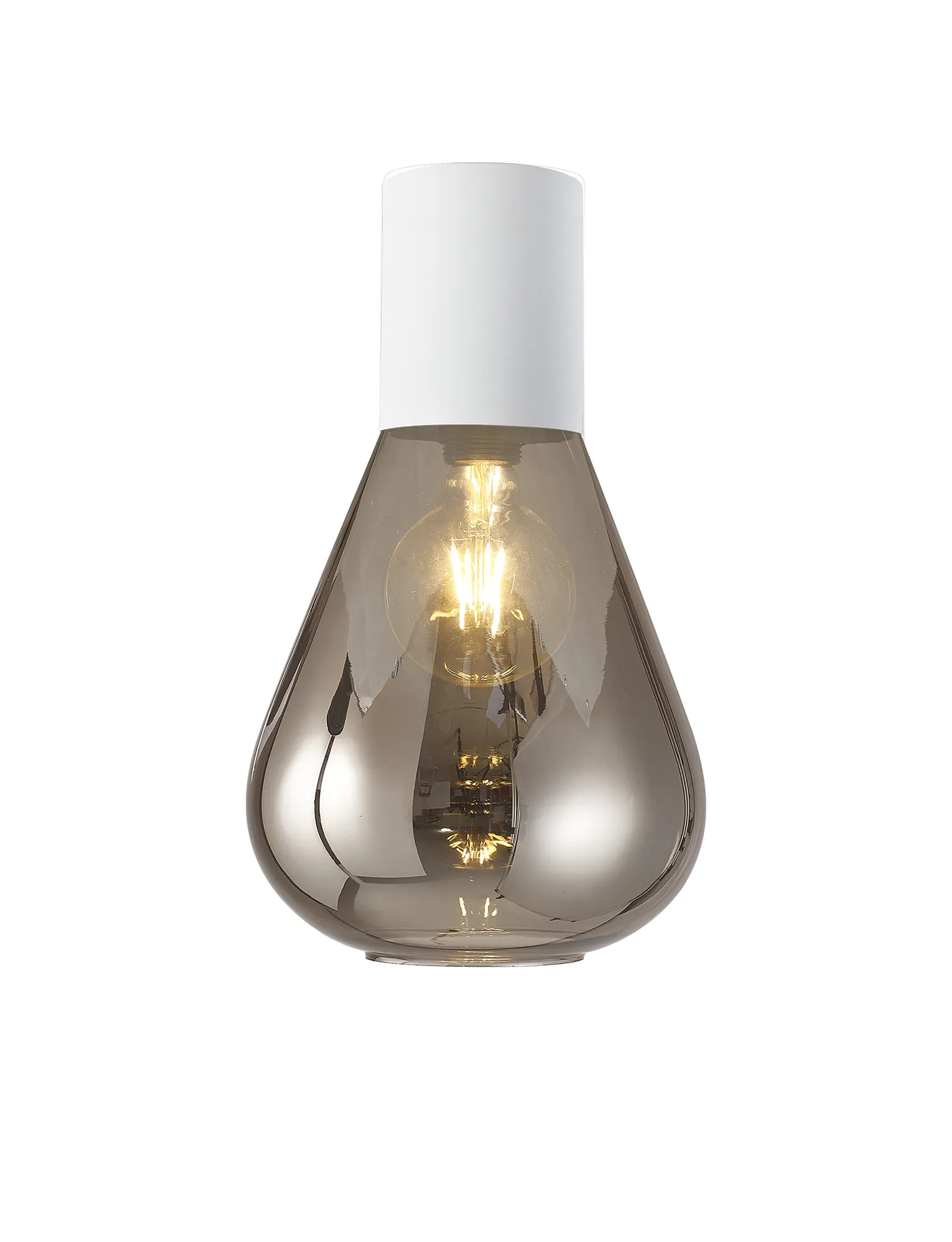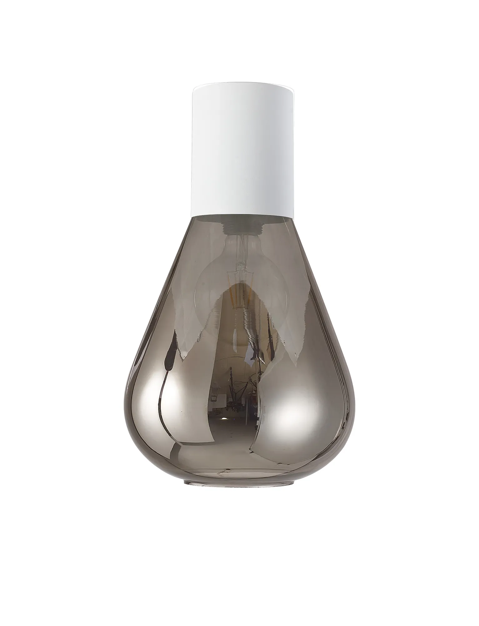 Clyde Pendant With Narrow Glass, 1 x E27, Satin White/Smoke/Clear Twisted Cable