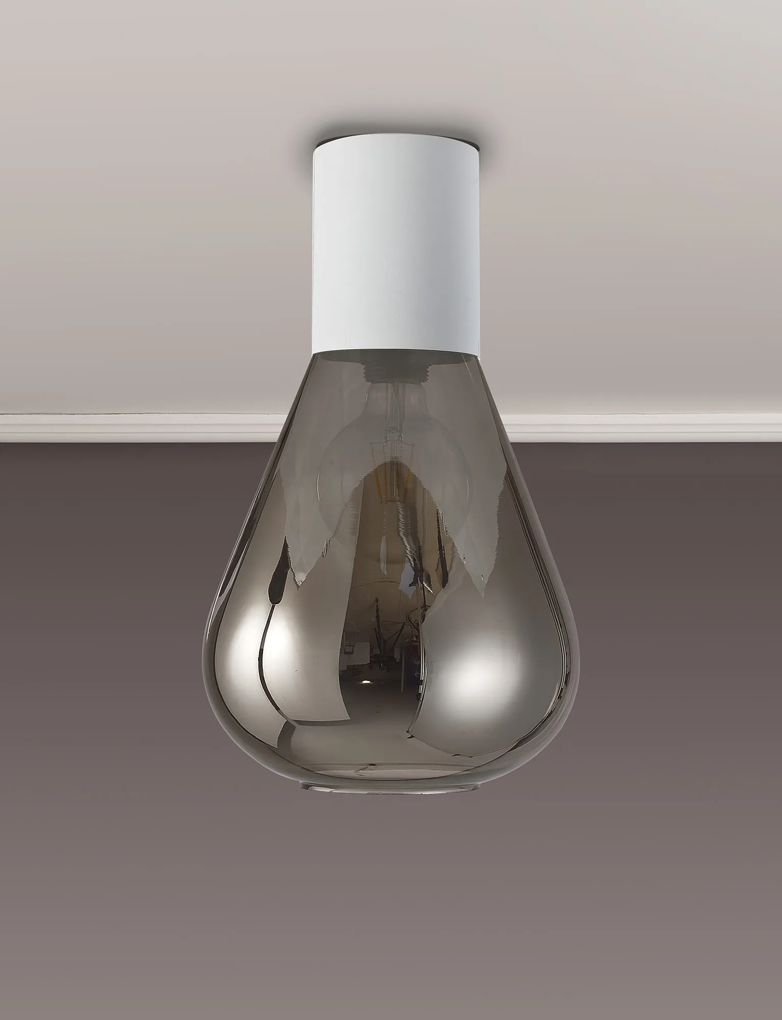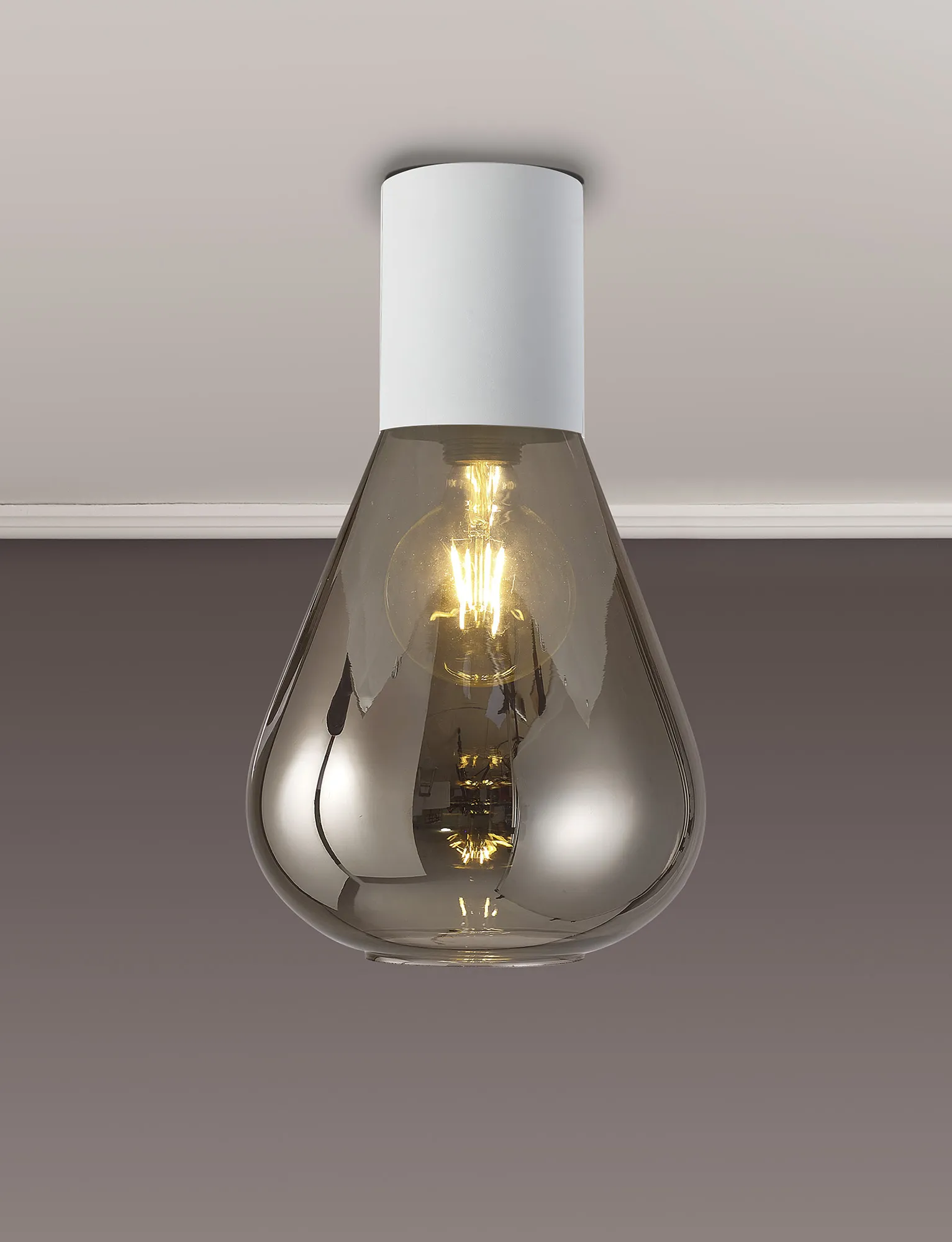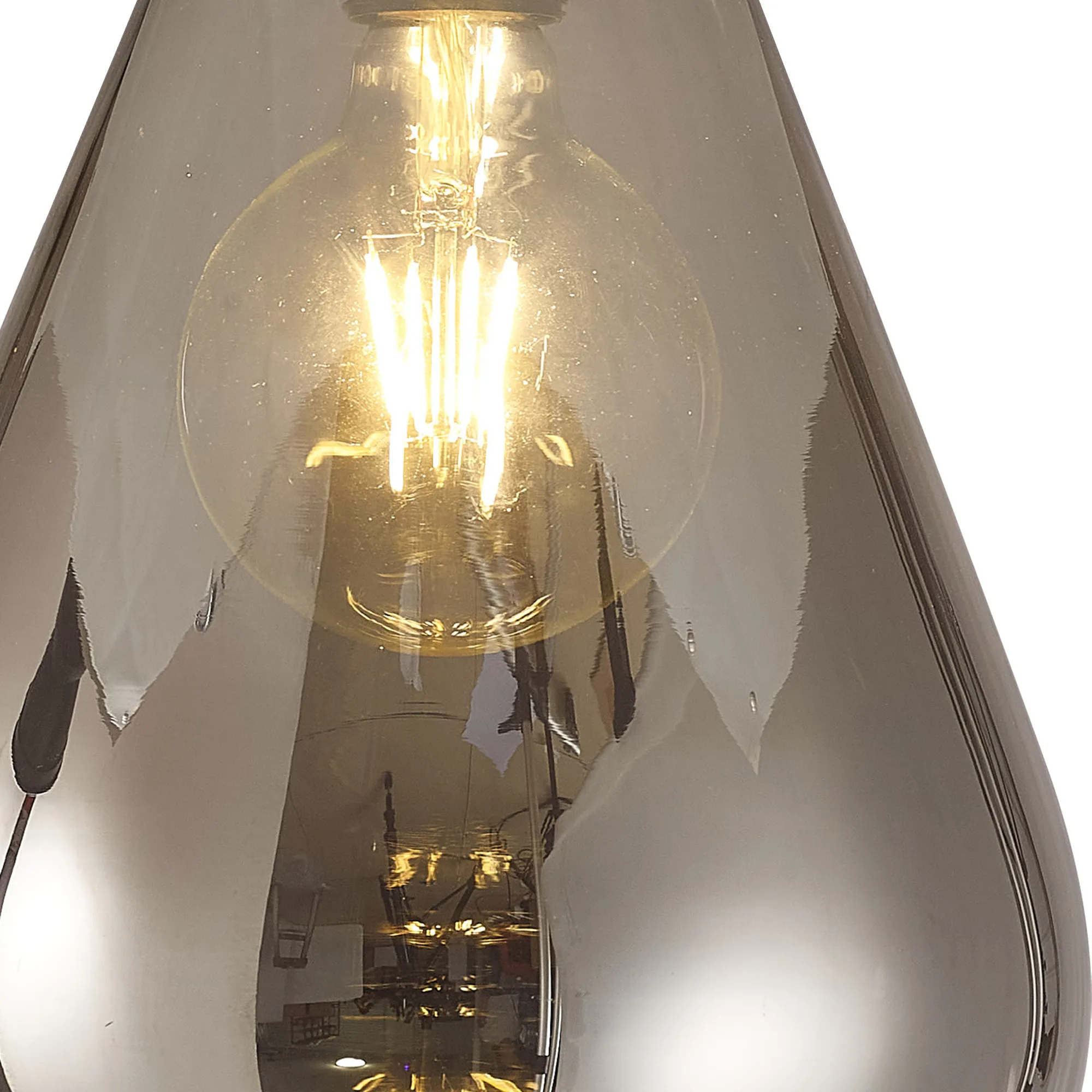 Clyde Pendant With Narrow Glass, 1 x E27, Satin White/Smoke/Clear Twisted Cable