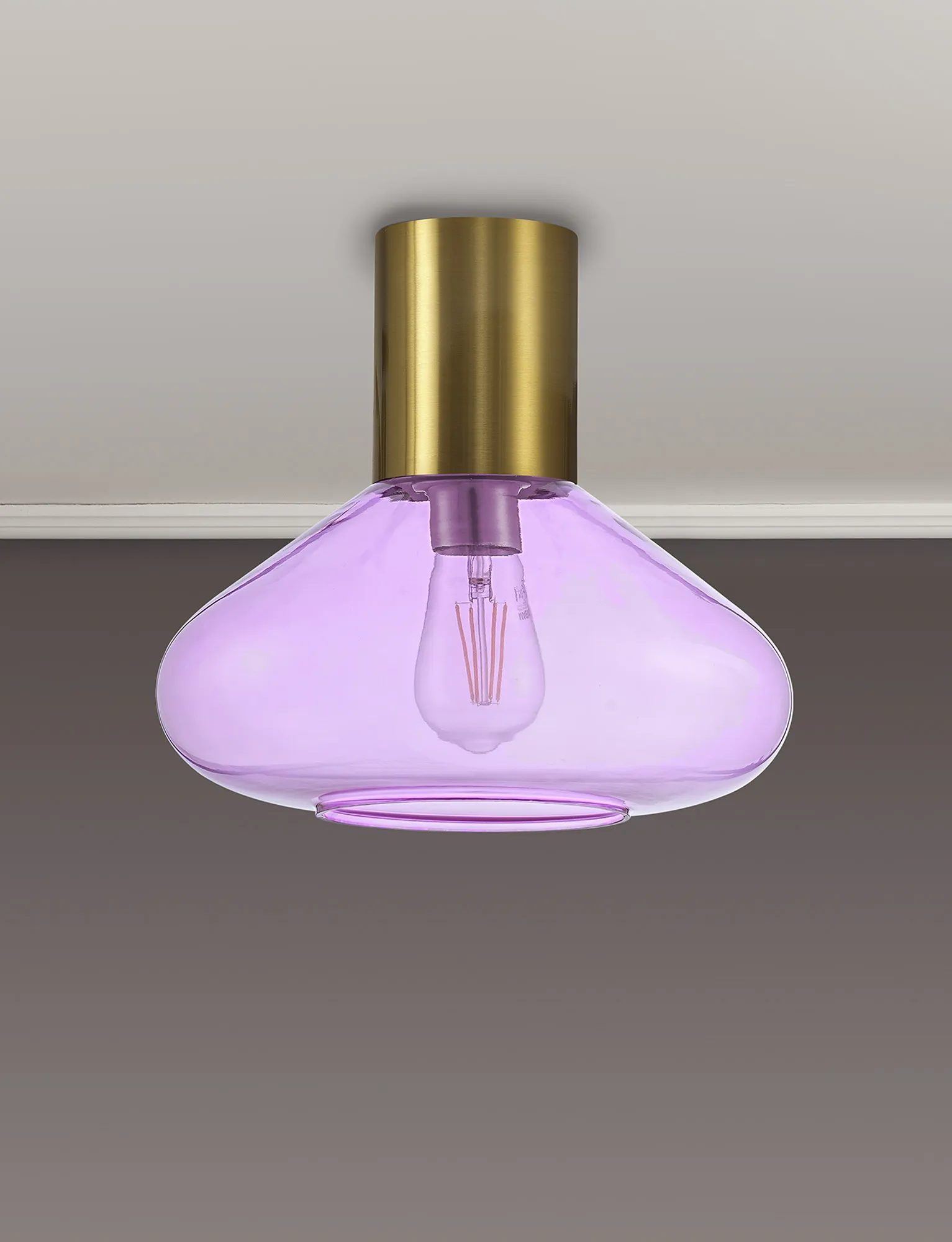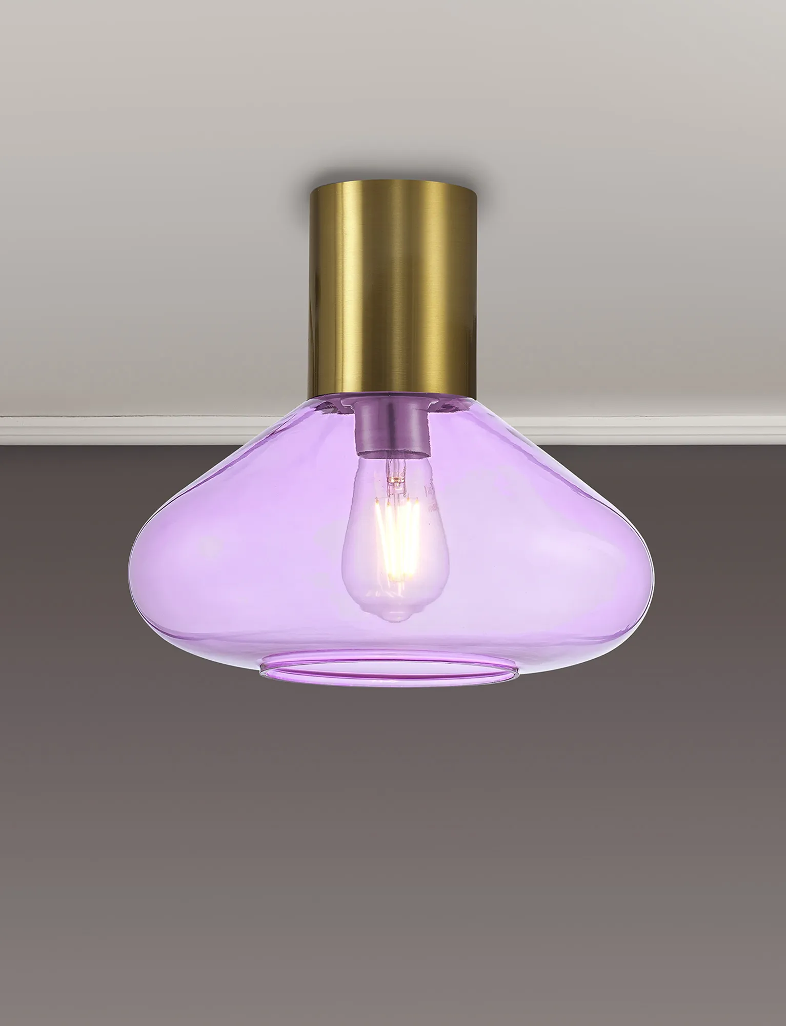 Clyde 23cm Ceiling Light With Narrow Glass, 1 x E27, Aged Brass/Lilac