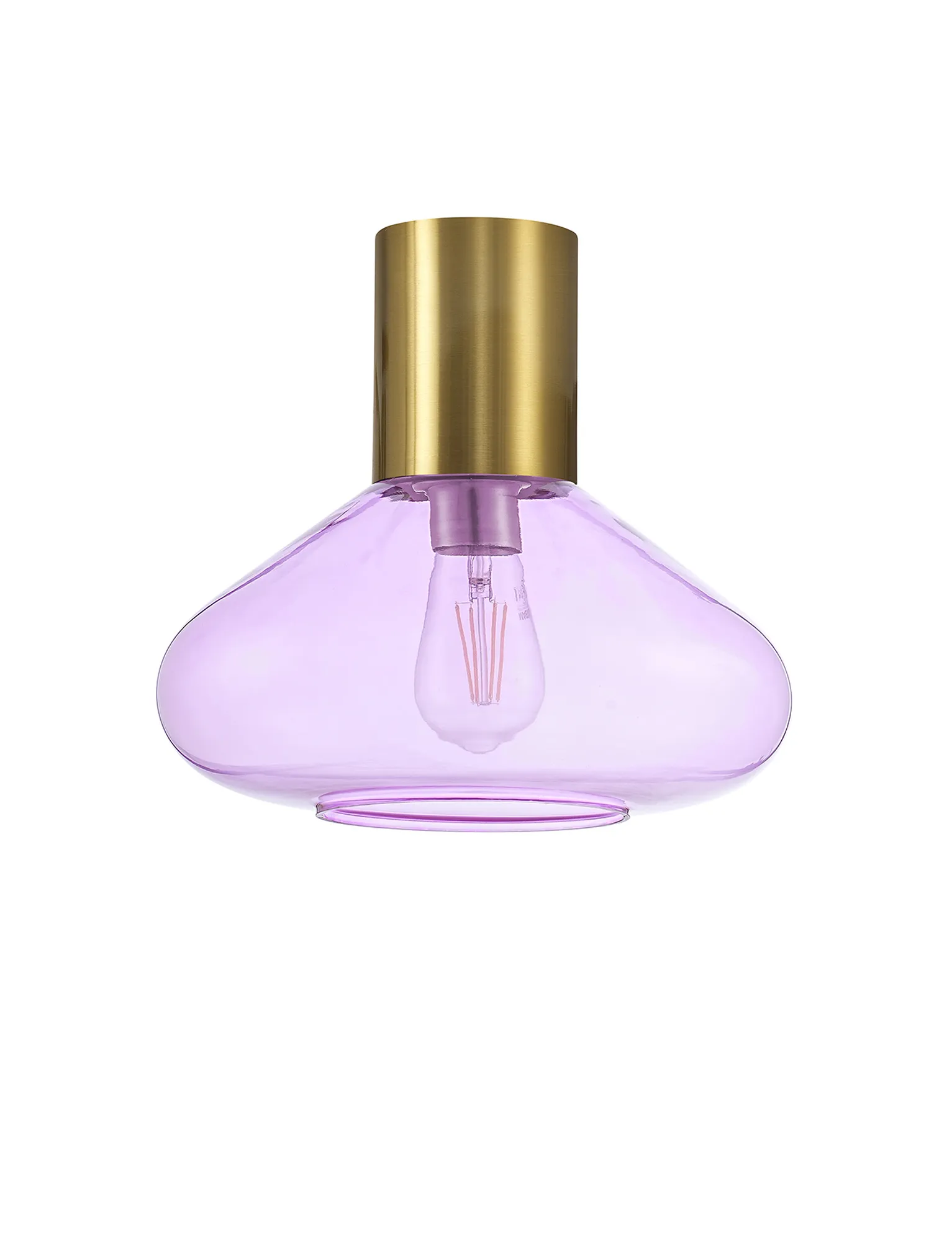 Clyde Ceiling Light With Narrow Glass, 1 x E27, Aged Brass/Lilac
