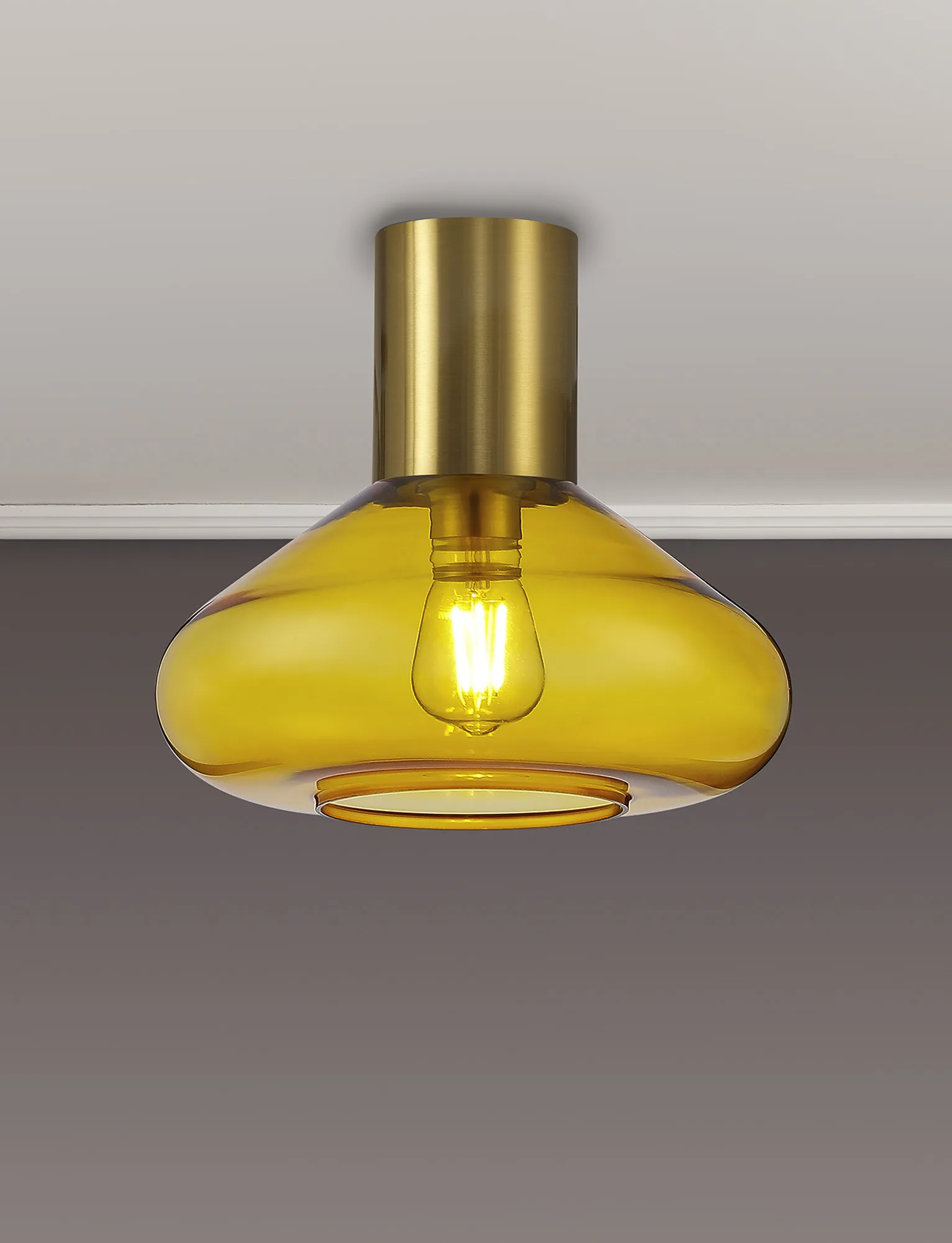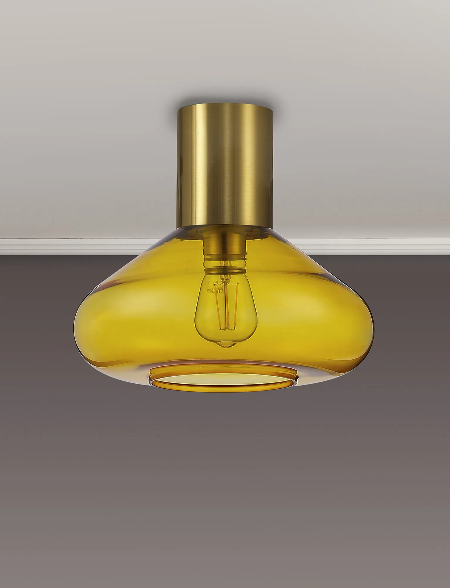 Clyde 23cm Ceiling Light With Narrow Glass, 1 x E27, Aged Brass/Yellow