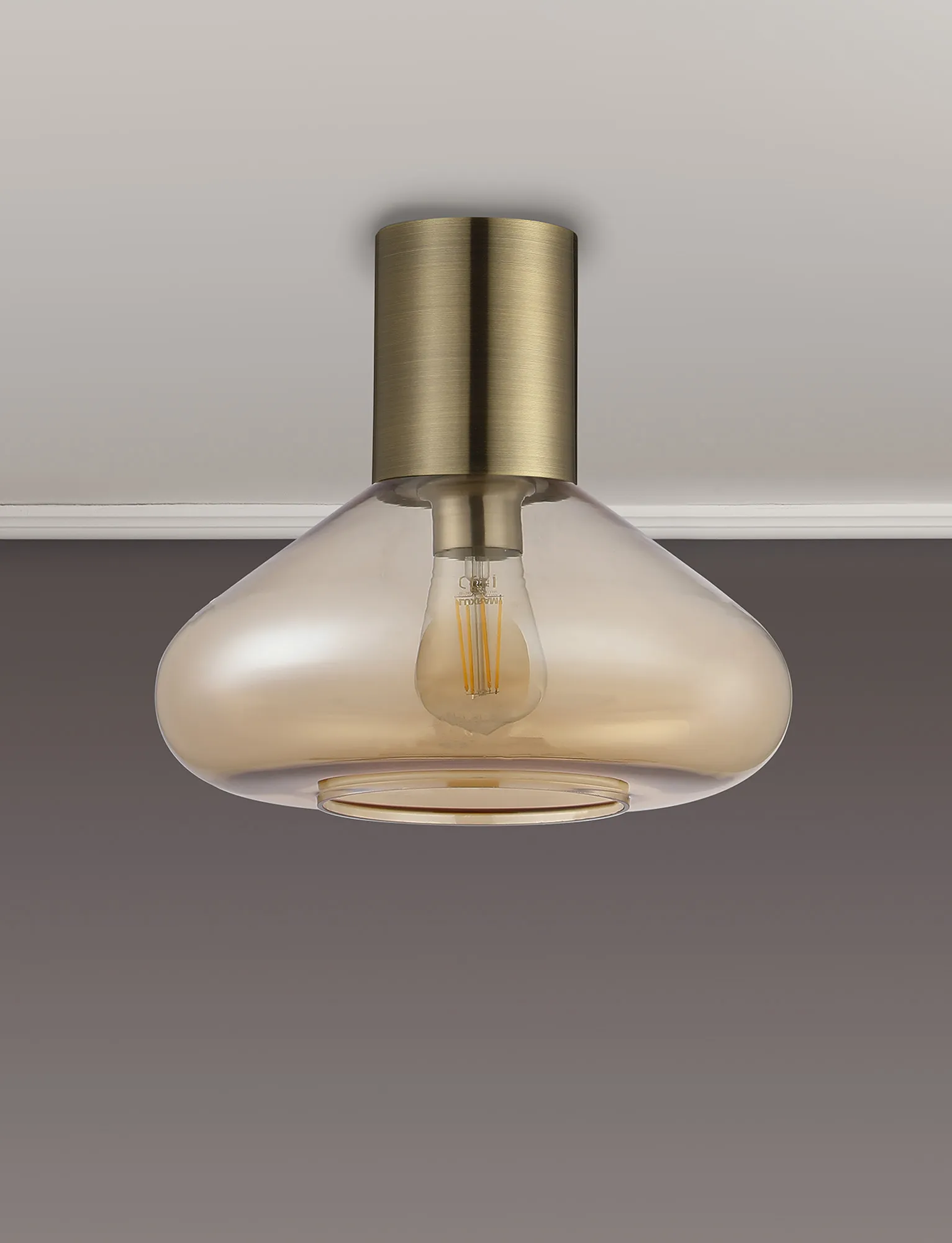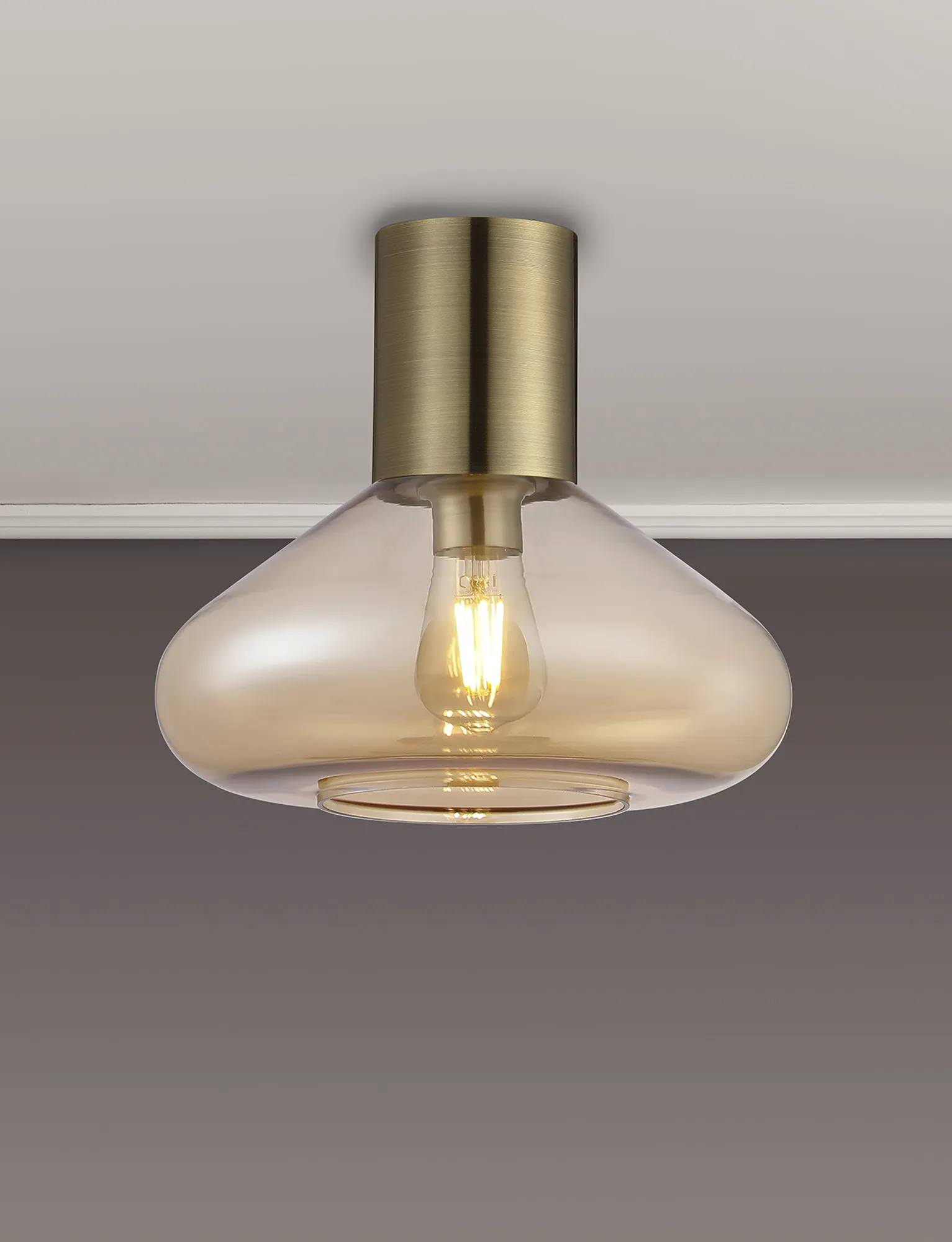 OTHER Clyde Ceiling Light With Wide Glass, 1 x E27, Antique Brass/Amber
