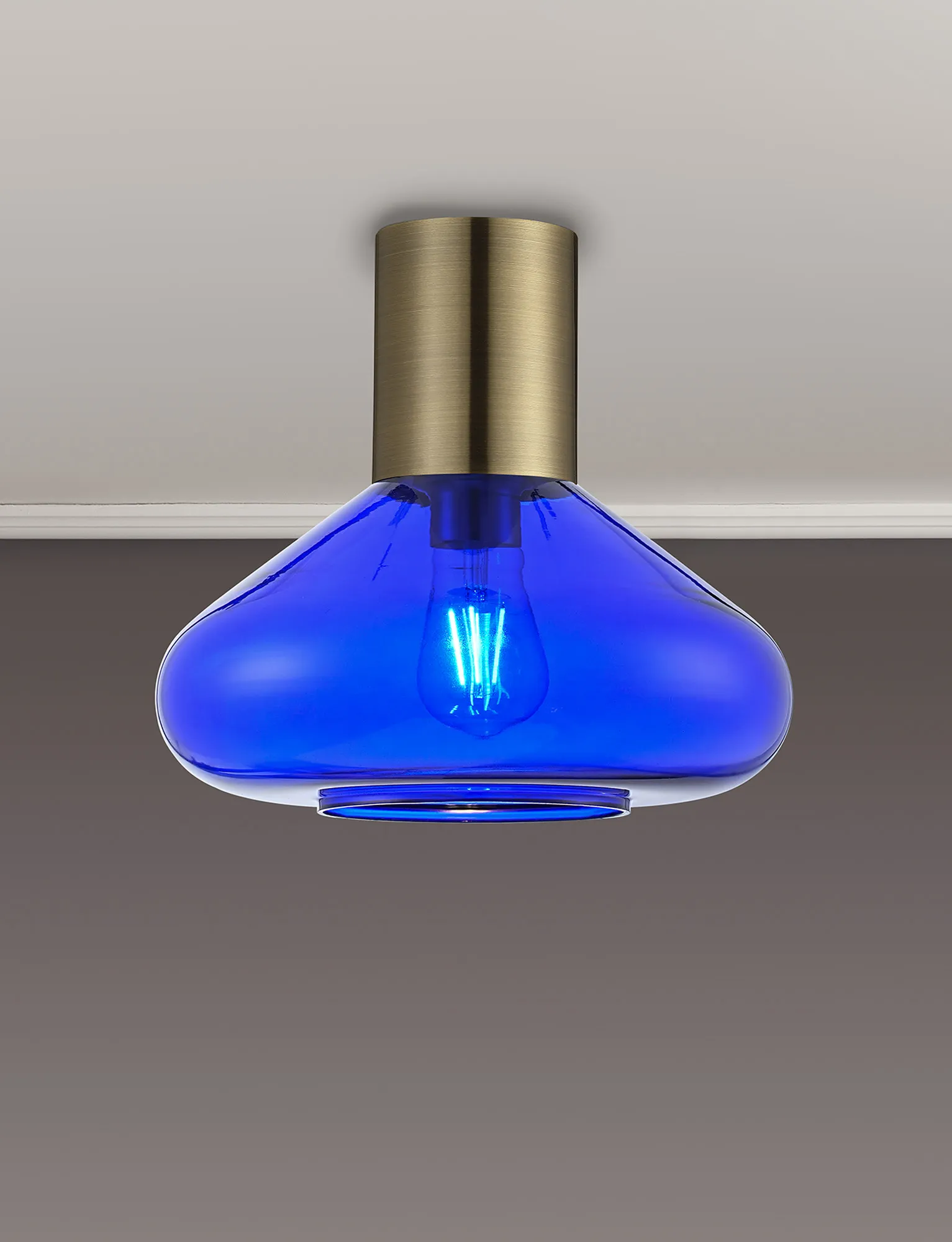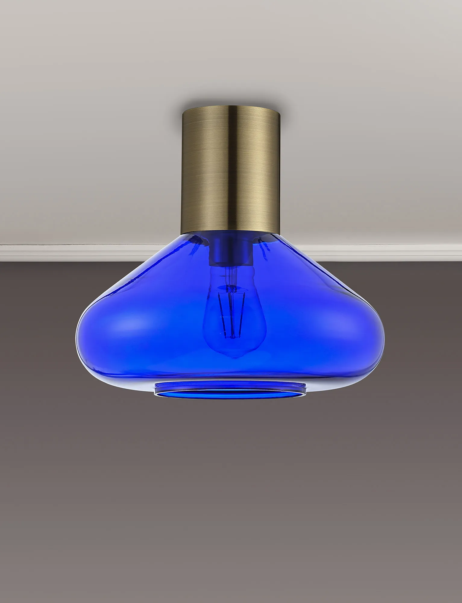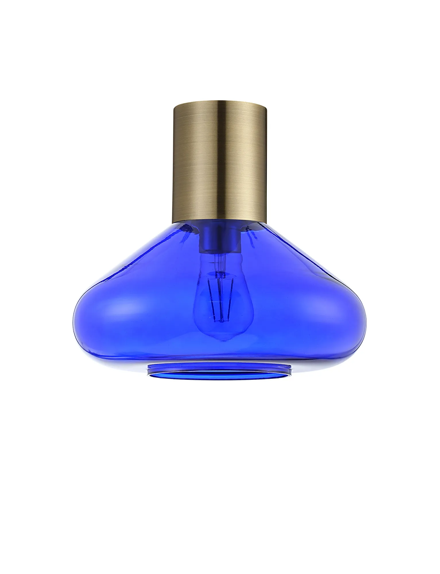 Clyde 23cm Ceiling Light With Narrow Glass, 1 x E27, Antique Brass/Blue Ink