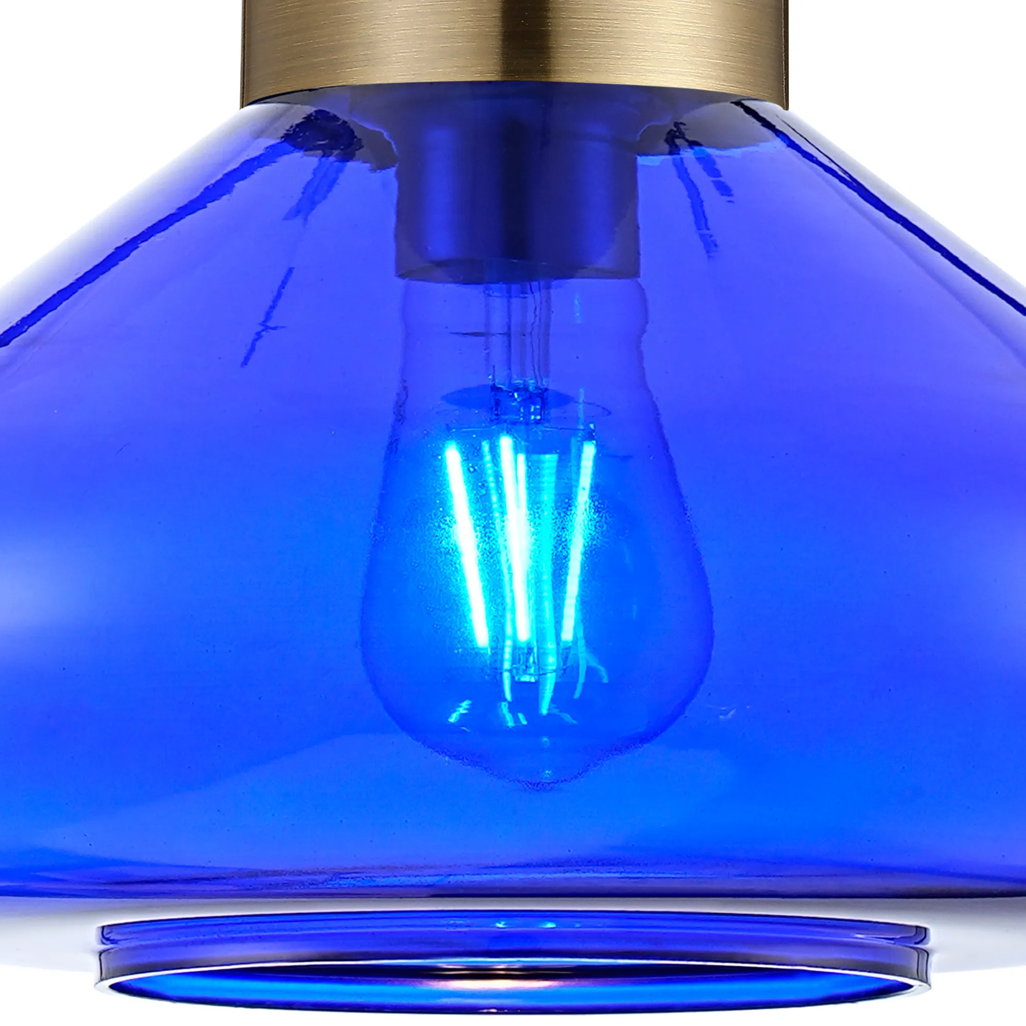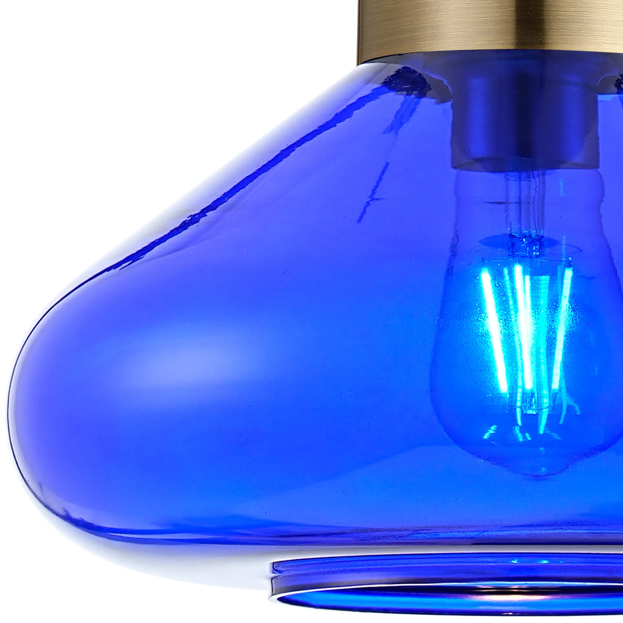 Clyde Ceiling Light With Narrow Glass, 1 x E27, Antique Brass/Blue Ink