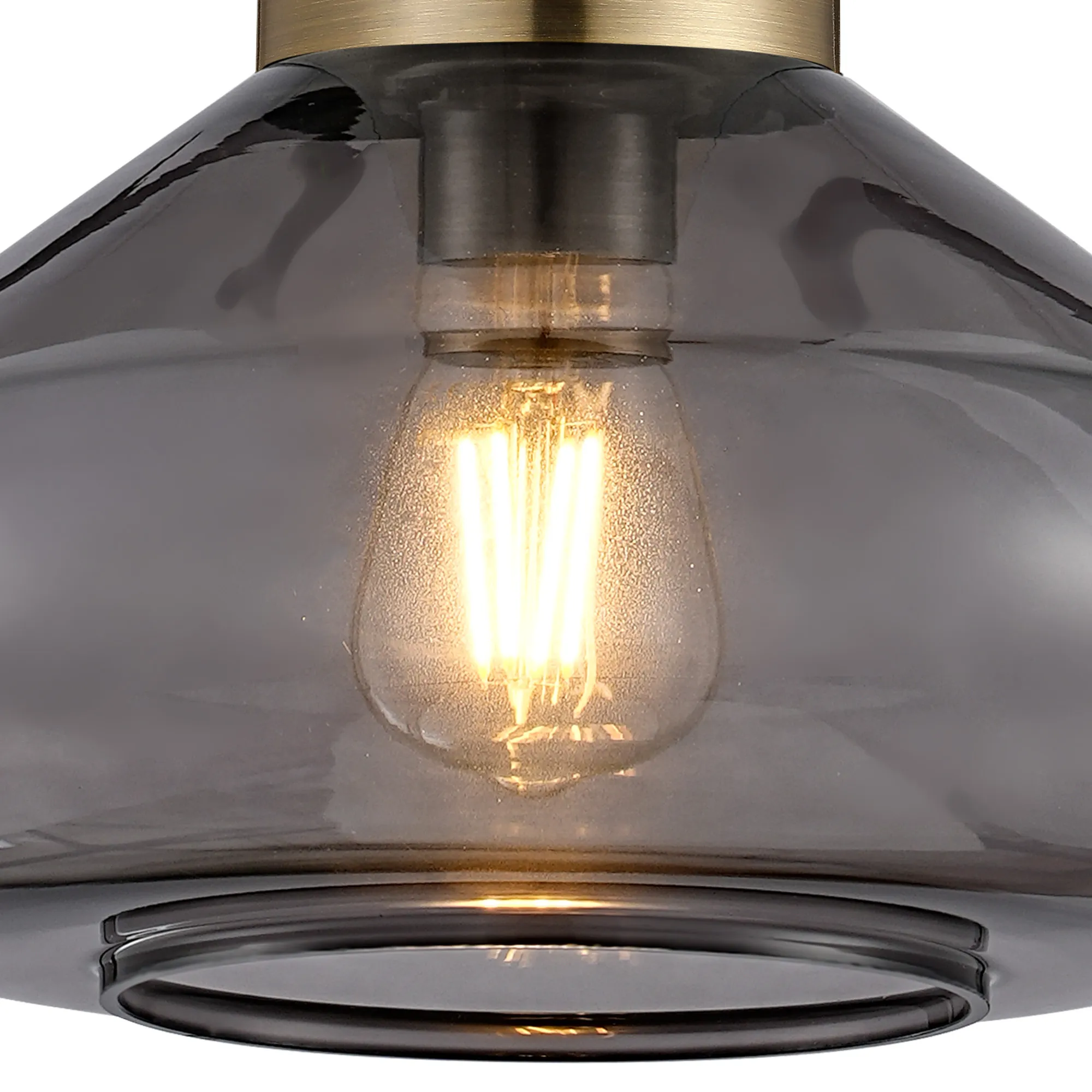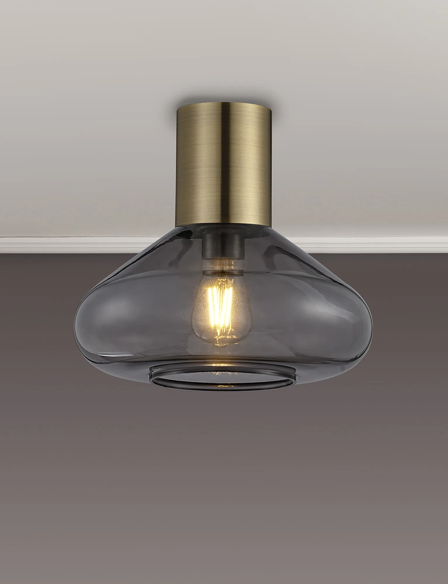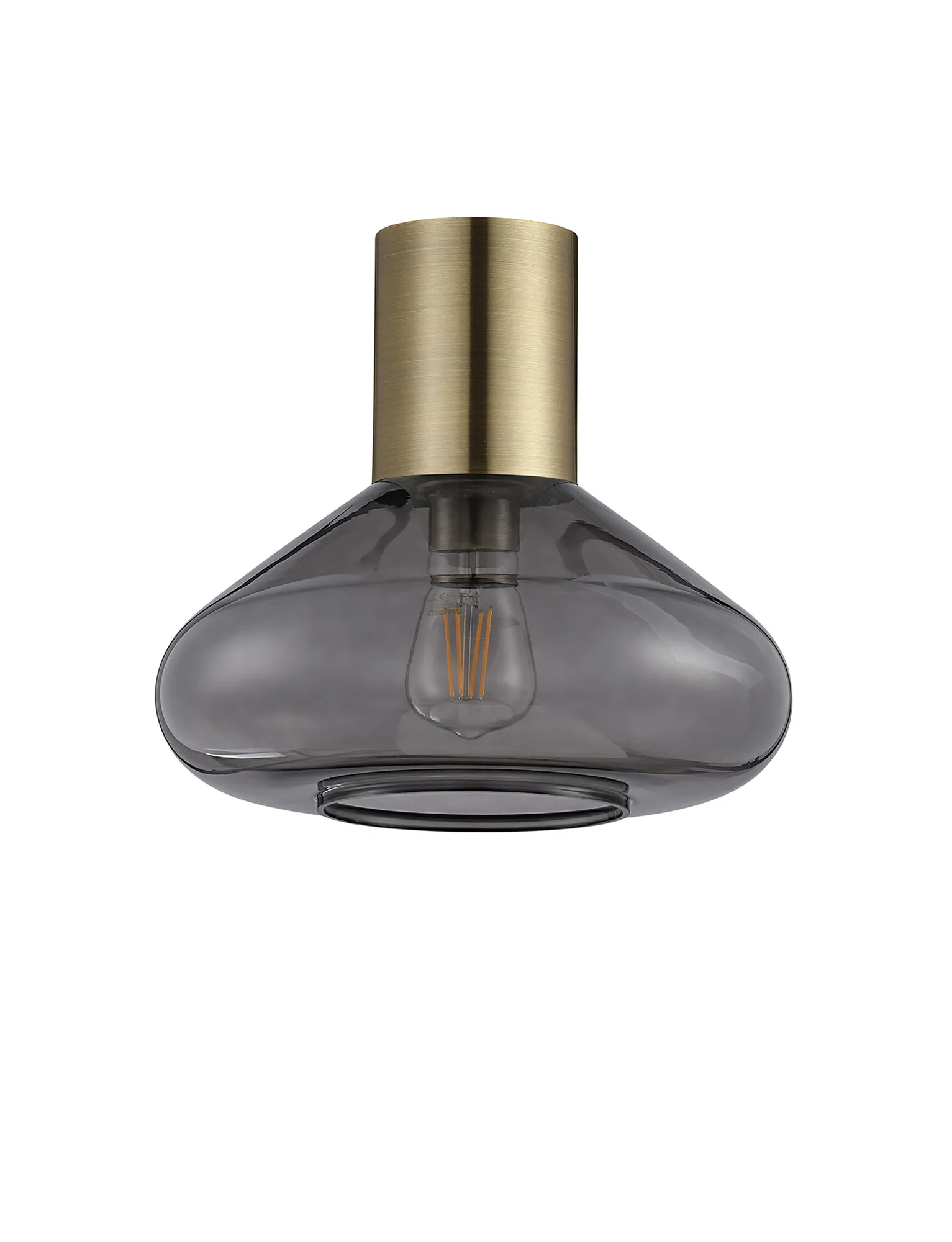Clyde 23cm Ceiling Light With Narrow Glass, 1 x E27, Antique Brass/Inky Black