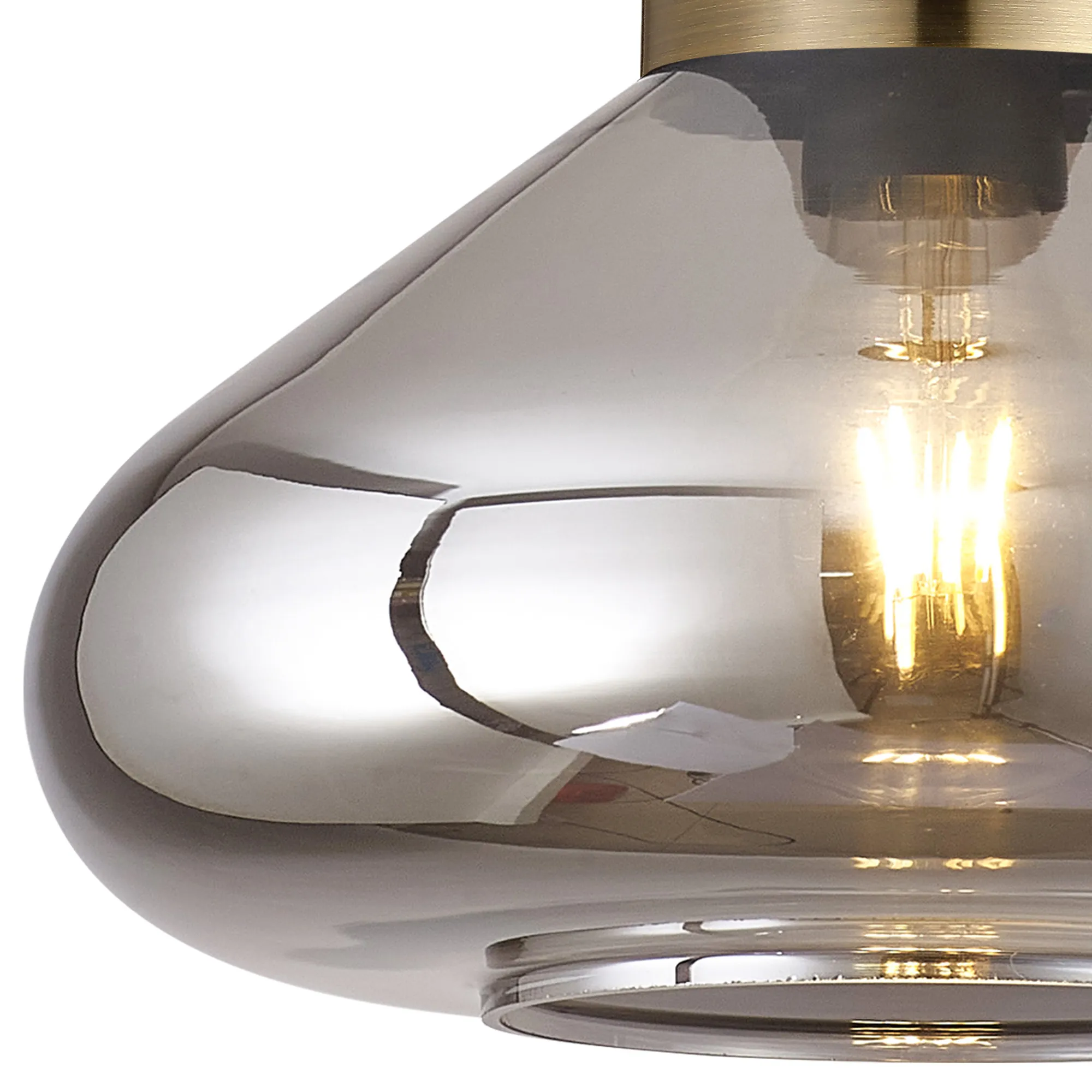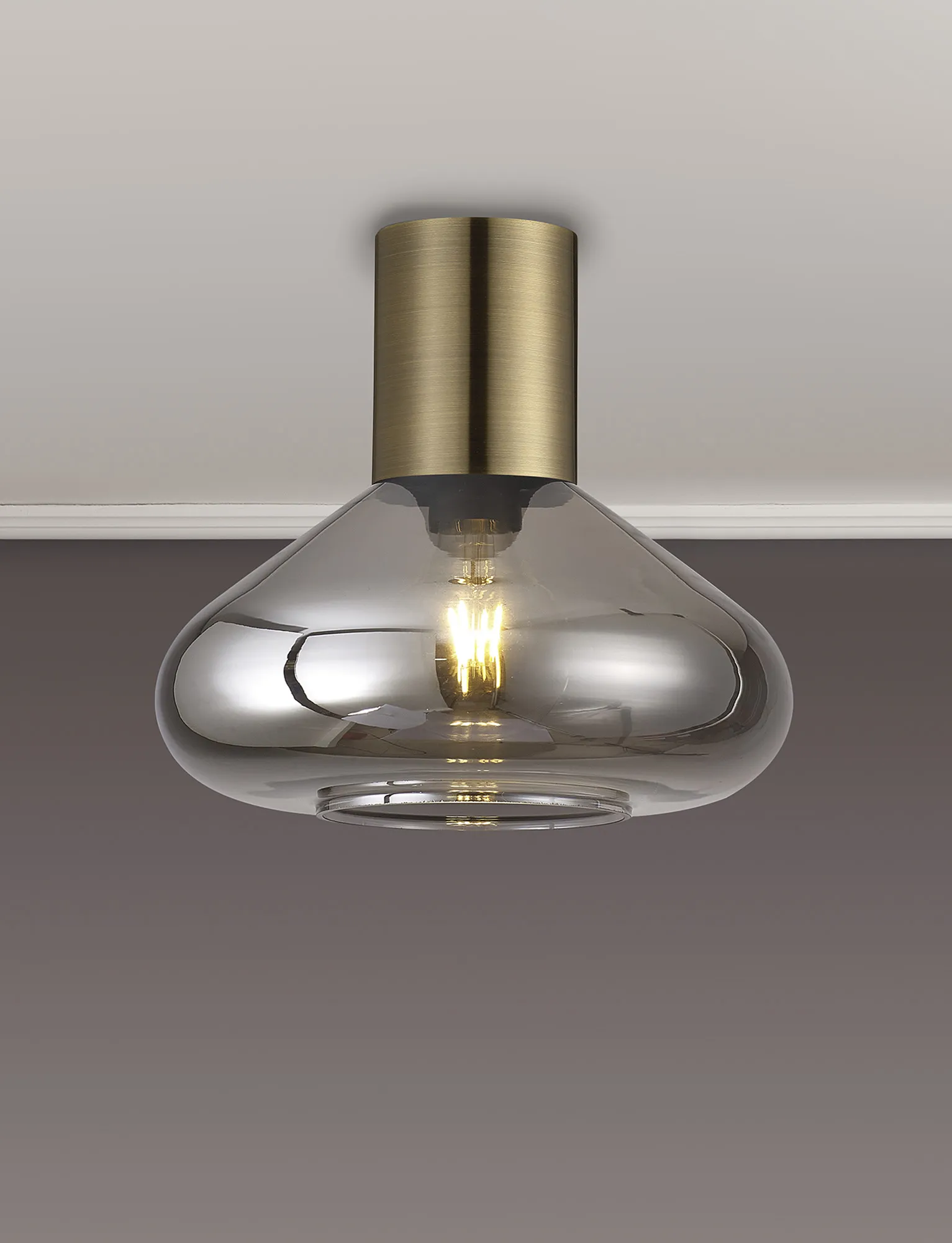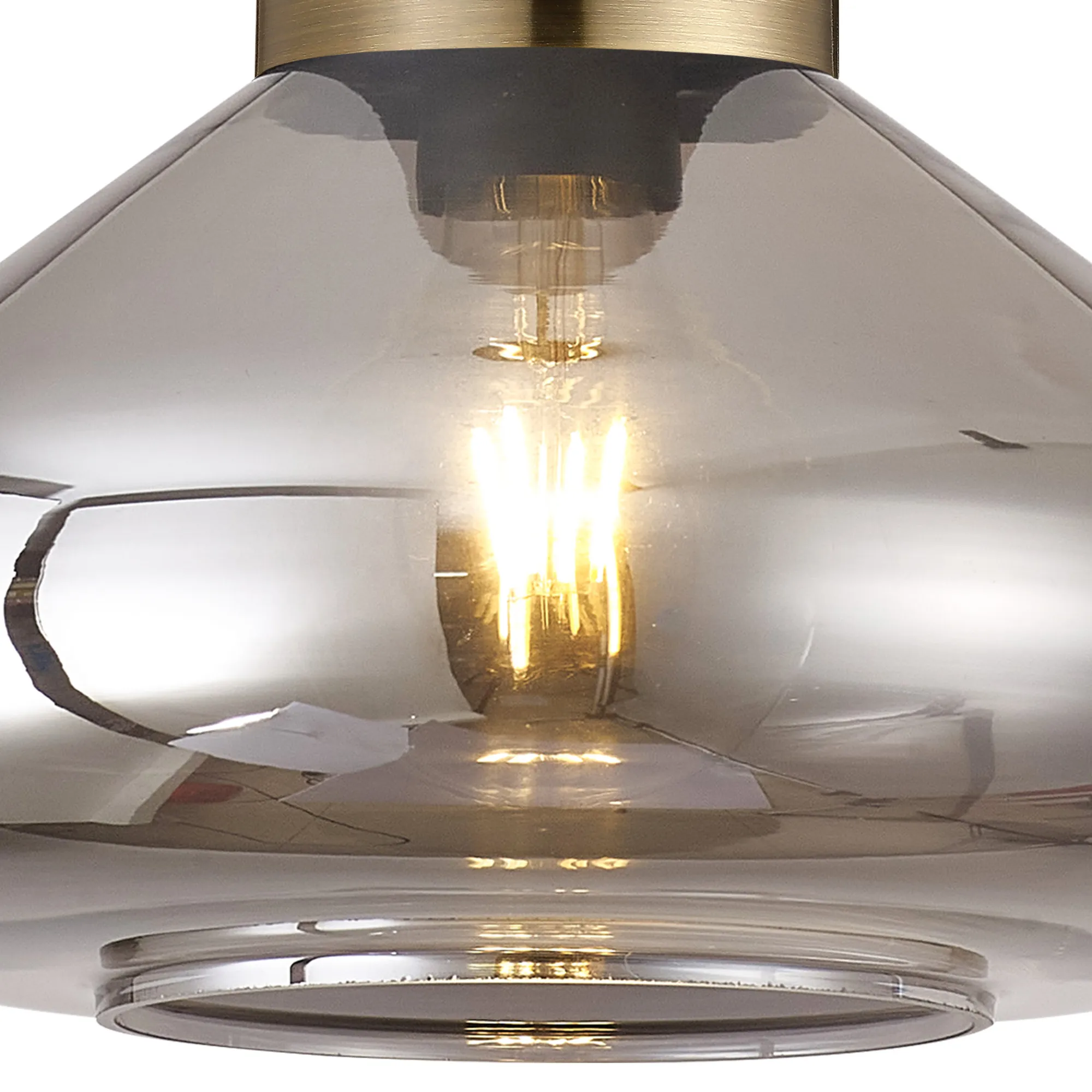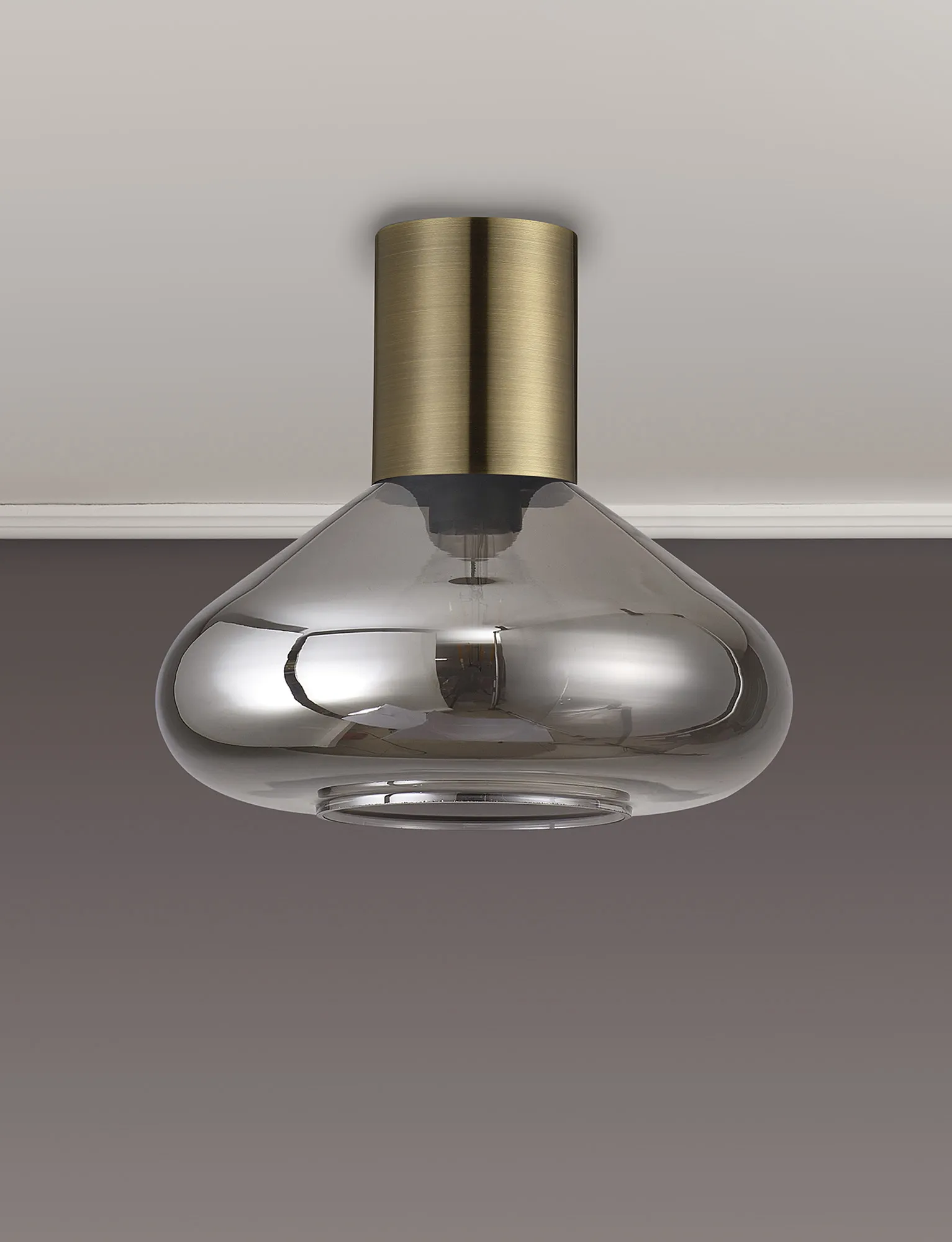 Clyde Ceiling Light With Narrow Glass, 1 x E27, Antique Brass/Smoke